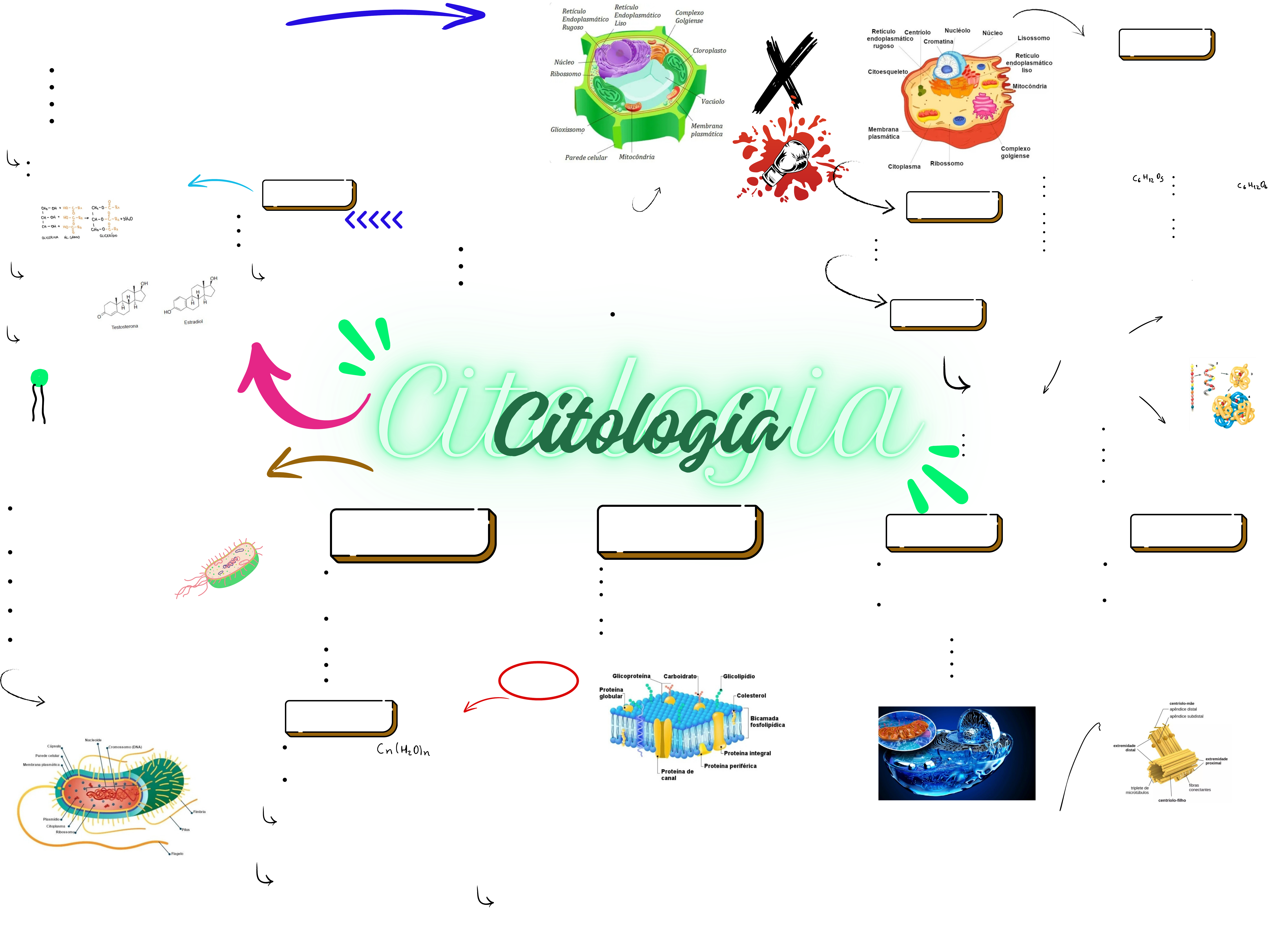 Participa da produção de lipídios por meio de um sistema de tubos "Gordura" Insolúveis em água Importante reserva energética GLICERÍDEO Fita simples Ácido ribonucléico Serve para expressar informações genéticas produzindo proteinas Citosina Guanina Adenina Fórmula geral: Principal fonte de energia Proteínas Ácido Desoxirribonucleico Realiza duplicação Responsável pelo armazenamento de informação genética Dupla fita helicoidal Citosina Guanina Adelina Timina Organismos unicelulares pertencentes aos domínios Bactéria e Archaea. Ausência de membrana nuclear Apresenta DNA circular Não possuem organelas membranosas O plasmídeo (pequenos segmentos de DNA circular), é um dos fatores que favorecem a resistência a antibióticos nas bactérias Procarionte Localizada externamente à membrana plasmática Garante a forma do célula Evita a plasmoptise Proteção celular Constituída por microfibrilas de CELULOSE PAREDE CELULAR Carboidrato CLASSIFICAÇÃO MONOSSACARÍDEO Não podem ser hidrolizados em compostos mais simples ex: Glicose, frutose, ribose e galactose DISSACARÍDEO Composto por dois monossacarídeos Ex: maltose (glicose+glicose), sacarose(glicose+frutose)e lactose (glicose+ galactose ) POLISSACARÍDEO Polímeros compostos por centenas a milhares de monossacarídeos Ex: amido, glicogênio e celulose Eucarionte São as mais complexas Apresenta envoltório nuclear Possui diversas organelas membranosas Divididas em animal e vegetal LIPÍDIOS RETICULOS ENDOPLASMATICO LISO RETICULOS ENDOPLASMATICO RUGOSO Segregação de proteinas Participação no processo de produção de fosfolipídios Glicosilação Fonte de energia Precursores de metabólicas intermediários essenciais Produção de hormônios ESTERÍDEO FOSFOLIPÍDIO Parte POLAR Parte APOLAR CAROTENOIDES Produzidos pelas plantas NÚCLEO Centro de controle da célula Contém DNA . O nucleolo é formado principalmente por RNA ribossamal e proteínas DNA X RNA VACÚOLO Manter o valor osmótico da célula MEMBRANA PLASMÁTICA Permeabilidade seletiva Permeabilidade seletiva Mosaico flúido Transporte de substâncias(soluto e solventes Exocitose e endocitose Formada por uma bicamada lipídica , na qual estão inseridos proteinas MITOCÔNDRIA Possui seu próprio DNA (DNA mitocondrial) Respiração celular Produção de ATP RIBOSSOMO Produção de proteinas Realiza a fotossíntese CLOROPLASTO DESNATURAÇÃO Temperatura Alteração do pH ESTRUTURA Primária (Linear) Secundária (alfa-hélice; arranjo espacial) Terciária (tridimensional) Quaternária(união de cadeias peptídicas) Importantes na estrutura das membranas celulares CITOPLASMA Local inicial da síntese de proteinas FUNÇÃO Funcionam como catalisadores Atuam na defesa (anticorpos) Atuam na comunicação celular Espaço intracelular, entre membrana e envoltório nuclear Meio gelatinoso semi fluído, que constitui o citoplasma Formado por: Água Proteínas Enzimas Moléculas e íons CENTRÍOLO Formados por microtúbulos (proteinas globulares alfa e beta ) Função: Formação de sílios e flagelos - mecanismos de locomoção Constituição do fuso aromático. durante o mecanismo de divisão celular: Mitose e Meiose * CONTINUA COMPLEXO DE GOLGI Função: Recebe proteinas sintetizadas no reticulo endoplasmático rugoso (RER). Modifica as proteinas através da adição ou remoção de grupos funcionais. Glicosilação, fosforilação e sulfatação são processos comuns realizados no Complexo de Golgi. O Complexo de Golgi pode formar vesiculas para transporte de proteínas modificadas. Essas vesiculas são enviadas para diferentes partes da célula ou para a secreção extracelular. O Complexo de Golgi também está envolvido na sintese de carboidratos complexos. Inclui glicosaminoglicanos, proteoglicanos e glicoproteinas. PROCESSAMENTO E MODIFICAÇÃO PROTEÍNAS FORMAÇÃO DE VESICULAS SÍNTESE DE CARBOIDRATOS VITAMINAS -micronutrientes essenciais para o funcionamento do corpo: crescimento e manutenção da saúde. -São cofatores. -Substâncias que não são produzidas pelo corpo- fontes exógenas. Alteram-se por mudanças de PH, temperatura e armazenamento. Classificadas em 2 grupos: Hidrossolúveis- dissolvidas em água. Não são armazenadas pelo corpo. •vitaminas do complexo b e vitamina c. Lipossoluveis- dissolvem em gorduras e são armazenadas pelo corpo. •incluem- vit A, D, E,K * CONTINUACÃO