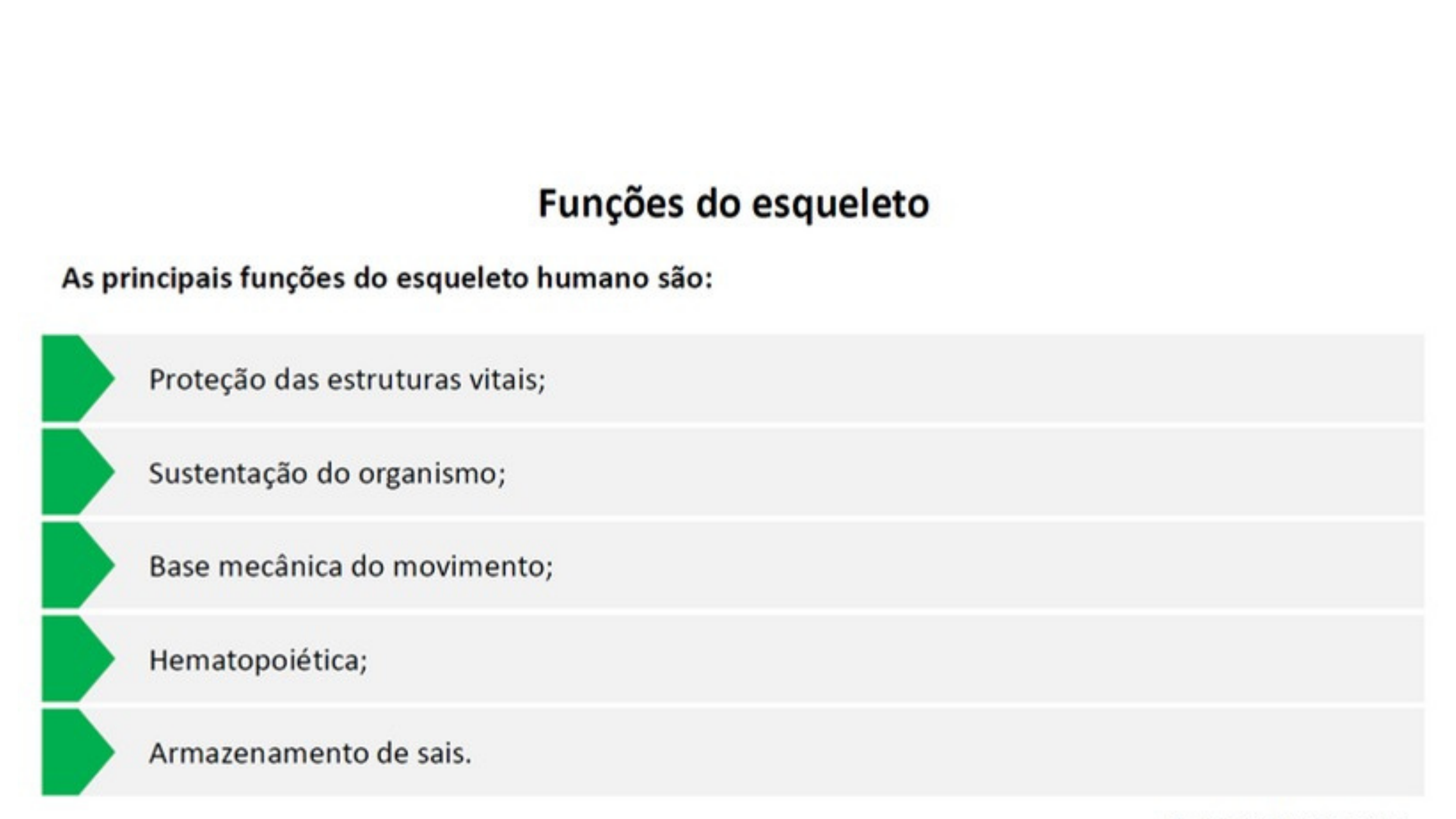 - Divisão do Esqueleto: - Esqueleto Axial: 80 ossos (cabeça, pescoço e tronco). - Esqueleto Apendicular: 126 ossos (membros superiores e inferiores). - Cinturas: Escapular (ombros) e pélvica (quadril). - Ossos do Crânio: - Frontal (1): Localizado na parte anterior do crânio, forma a testa e parte das órbitas oculares. - Parietal (2): Dois ossos que formam a parte superior e lateral do crânio. - Temporal (2): Localizados nas laterais do crânio, próximos às orelhas. Abrigam os ossículos da audição. - Occipital (1): Localizado na parte posterior e inferior do crânio, contém o forame magno, por onde passa a medula espinhal. Ossos do Crânio: Esfenoide (1): Osso complexo localizado na base do crânio, em forma de "asa de morcego". Possui várias cavidades (seios) e se articula com quase todos os ossos do crânio. Etmoide (1): Localizado entre as órbitas oculares, forma parte da cavidade nasal e do septo nasal. Contém os seios etmoidais. Ossos da Face: Nasal (2): Dois ossos pequenos que formam a ponte do nariz. Lacrimal (2): Dois ossos pequenos localizados na parte interna das órbitas oculares, próximos ao canal lacrimal. Zigomático (2): Popularmente conhecidos como "maçãs do rosto", formam as proeminências das bochechas e se articulam com o maxilar e o temporal. Maxila (2): Dois ossos que formam a parte superior da boca, o palato duro e parte das órbitas oculares. Abrigam os dentes superiores. Concha Nasal Inferior (2): Dois ossos localizados nas laterais da cavidade nasal, responsáveis por aumentar a superfície de contato do ar durante a respiração. Palatino (2): Dois ossos que formam a parte posterior do palato duro e parte da cavidade nasal. Vômer (1): Osso ímpar que forma a parte inferior do septo nasal, separando as duas cavidades nasais. Mandíbula (1): Único osso móvel do crânio, responsável pela mastigação. Articula-se com o osso temporal na articulação temporomandibular (ATM). Osso Hioide: Localização: Localizado na parte anterior do pescoço, abaixo da mandíbula e acima da laringe. Função: Sustenta a língua e a musculatura da base da língua. Não se articula diretamente com outros ossos, sendo mantido no lugar por músculos e ligamentos. Estrutura: Formado por um corpo central e dois pares de cornos (maiores e menores). Coluna Vertebral: Conecta-se ao crânio através do occipital (forame magno). Vértebras Cervicais: A primeira vértebra cervical, o Atlas (C1), suporta o crânio e permite movimentos de "sim" (flexão e extensão da cabeça). Áxis (C2): A segunda vértebra cervical permite movimentos de "não" (rotação da cabeça). Vértebras (cervicais, torácicas, lombares, sacro e cóccix). Regiões da Coluna: Cervical (7 vértebras): C1 a C7./ C1 = Atlas, C2 = Áxis. Torácica (12 vértebras): T1 a T12. Lombar (5 vértebras): L1 a L5. Sacro (5 vértebras fundidas)Forma o sacro. Cóccix (4 vértebras fundidas): Forma o cóccix. Lordose: Curvaturas para dentro (cervical e lombar). Cifose: Curvaturas para fora (torácica e sacral). ANOTE PARA MEMORIZAÇÃOPERGUNTAS E RESPOSTAS: 1. Quantas vértebras cervicais existem? - R: 7 vértebras cervicais (C1 a C7). --- 2. Qual é o nome da primeira vértebra cervical? - R: Atlas (C1). --- 3. Qual é a função da vértebra Atlas (C1)? - R: Suportar o crânio e permitir movimentos de "sim" (flexão e extensão da cabeça). - 4. Qual vértebra cervical é conhecida como Áxis (C2)? - R: A segunda vértebra cervical, que permite movimentos de "não" (rotação da cabeça). --- 5. Qual vértebra cervical é chamada de "proeminente"? - R: C7, pois seu processo espinhoso é mais visível e palpável na base do pescoço. ANOTE PARA MEMORIZAÇÃO Costelas verdadeiras Costelas Falsas Costelas flutuantes Esterno . Quantos ossos formam o tórax?** R 25 ossos (12 pares de costelas e 1 esterno). 2. Quantos pares de costelas verdadeiras existem? R: 7 pares de costelas verdadeiras (ligam-se diretamente ao esterno). 3. Qual a função do esterno? Proteger o coração e os pulmões, além de servir como ponto de fixação para as costelas. 4. Quais são as partes do esterno? R: Manúbrio (parte superior), corpo (parte central) e processo xifoide (parte inferior). 5. Quantos pares de costelas flutuantes existem? R: 2 pares de costelas flutuantes (não se ligam ao esterno). Ossos do Tórax: 1.Costelas (24 no total): Costelas Verdadeiras (7 pares): Ligam-se diretamente ao esterno. Costelas Falsas (3 pares): Ligam-se ao esterno indiretamente. Costelas Flutuantes (2 pares): Não se ligam ao esterno. 2. Esterno: Parte central do tórax. Manúbrio (superior). Corpo (maior parte). Processo Xifoide (inferior, pequeno e cartilaginoso). 3.Vértebras Torácicas (12): Articulam-se com as costelas. Formam a parte posterior da caixa torácica. ANOTE PARA MEMORIZAÇÃO PERGUNTAS E RESPOSTAS: ANOTE PARA MEMORIZAÇÃO Clavícula Localização: Está na parte superior do tórax, ligando o braço ao tronco. Escápula (ou omoplata) Localização: Está na parte posterior do tórax, atrás das costelas, de cada lado do corpo. Úmero Localização: É o osso do braço, entre o ombro e o cotovelo. Rádio Localização: Está no antebraço, no lado do polegar (lateral). Ulna Localização: Também no antebraço, mas no lado do dedo mínimo (medial). 1. Qual osso forma o braço? -R: O úmero. --- 2. Quais ossos formam o antebraço? - R: Rádio (lateral) e ulna (medial). --- 3. Qual osso do antebraço se articula com o úmero? - R: A ulna (na articulação do cotovelo) --- 4. Quantos ossos formam a mão? - R: 27 ossos (carpo: 8, metacarpo: 5, falanges: 14). --- 5. Quais ossos formam o carpo? - R: Escafoide, semilunar, piramidal, pisiforme, trapézio, trapezóide, capitato e hamato. 1. Escafoide: alguns médicos se referem a este osso como navicular (“pequeno barco”) 2. Trapézio 3. Trapezoide 4. Semilunar 5. Piramidal 6. Pisiforme 7. Hamato 8. Capitato 9. Metacarpais 10. Falanges de cada dedo 11. Ossos sesamoides (dois na extremida