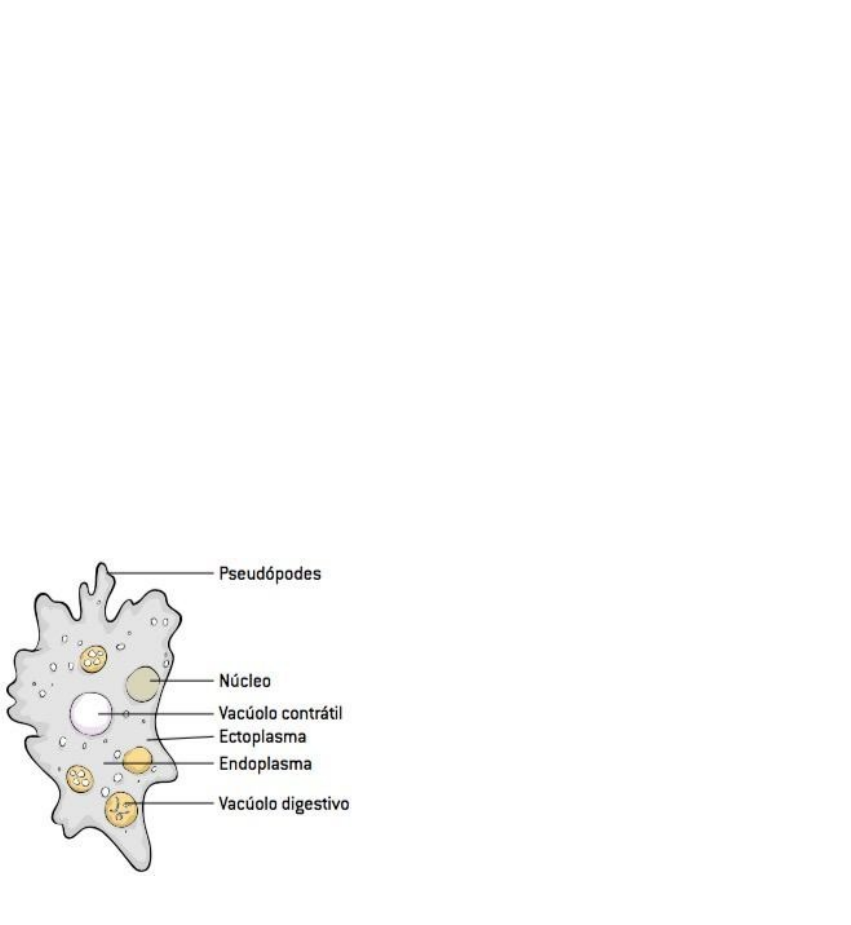 Protozoários Características gerais Os protozoários são organismos unicelulares e eucariontes. A sua célula pode ser comparada com cada uma das células de um animal pluricelular. O citoplasma possui duas camadas: o ectoplasma, que é mais externo e gelatinoso, e o endoplasma, que é mais fluido e mais interno. As alterações na viscosidade do citoplasma possibilitam as alterações contínuas na forma do animal, ligadas ao seu movimento e ao acolhimento de partículas alimentares. O núcleo é o núcleo responsável pelo controle do metabolismo celular e pela definição de suas características herdadas. Em determinadas espécies, como o paramécio, existem dois núcleos de dimensões distintas: o macronúcleo e o micronúcleo. O macronúcleo regula todas as funções celulares, enquanto o micronúcleo é encarregado da reprodução sexuada (troca de genes). Esquema representativo de uma ameba de água doce. Visto que são seres unicelulares, a troca de gases respiratórios ocorre por difusão simples, através da membrana plasmática. Também é dessa maneira que os protozoários descartam resíduos provenientes do seu metabolismo para o meio ambiente. Os protozoários marinhos possuem isotopia em relação ao meio ambiente em que habitam. Assim, a quantidade de água que entra e sai através de sua membrana plasmática é a mesma. Por outro lado, os protozoários dulcícolas (de água doce) possuem hipertônicos em relação ao meio ambiente, absorvendo água através da osmose. A célula evita a lise (quebra) devido à existência do vacúolo contrátil, que impulsiona o excesso de água para fora da célula. Organização celular de um paramécio, um protozoário ciliado. Classificação Os protozoários são divididos, de acordo com a sua forma de locomoção, em quatro grupos principais: flagelados, ciliados, sarcodinos e esporozoários. Flagelados Os flagelados, também chamados de mastigóforos, são aqueles que se locomovem graças ao batimento dos seus flagelos. Os flagelos podem ser únicos, como no Trypanosoma cruzi, ou múltiplos, como na Giardia lamblia. Rizópodes Os rizópodes, ou sarcodinos, representados pelas amebas, são os protozoários que se locomovem pela emissão de pseudópodes. Possuem morfologia variável, ou seja, a sua forma não é constante, pela contínua mudança na viscosidade do seu citoplasma. Há sarcodinos marinhos, de água doce, e outros parasitas. Ciliados Os ciliados são protozoários que se locomovem por meio de cílios. A sua superfície celular é recoberta por centenas ou milhares de cílios, que são projeções citoplasmáticas curtas e muito mais numerosas que os flagelos. A maioria é de vida livre, sendo raros os ciliados parasitas. O ciliado mais conhecido é o paramécio. Esporozoários Os esporozoários são protozoários desprovidos de qualquer estrutura locomotora. Todos os representantes desse grupo são parasitas, alguns do homem, como o Toxoplasma gondii (causador da toxoplasmose) e os representantes do gênero Plasmodium (causadores da malária). Esses protozoários alimentam-se por meio da superfície celular, absorvendo substâncias diretamente dos tecidos do hospedeiro. Importância Embora os protozoários sejam organismos unicelulares, sua relevância para humanos e outros animais é significativa. Existem milhões deles nos oceanos e mares, servindo como alimento para animais marinhos. Ademais, certos protozoários estabelecem relações com outros seres vivos, obtendo benefícios para ambos. Esta conexão é conhecida como mutualismo. Certos protozoários, como os que possuem carapaças minerais, ao morrerem, acumulam-se no fundo dos oceanos e mares, auxiliando na formação das rochas sedimentares. Portanto, os geólogos que investigam a formação do petróleo examinam os foraminíferos coletados durante perfurações de poços com a finalidade de identificar camadas de petróleo. Reprodução Os protozoários exibem métodos de reprodução assexuada, tais como a divisão binária, e métodos de reprodução sexuada, como a conjugação. Na divisão binária, a célula expande-se e se divide, dando origem a dois novos seres geneticamente idênticos. Este procedimento é crucial para ampliar a quantidade de seres vivos na população. Na conjugação, realizada pelo paramécio, dois indivíduos trocam micronúcleos previamente duplicados. Em cada organismo, o micronúcleo original une-se com o micronúcleo recebido e ocorre a mistura dos genes. No final da conjugação, cada organismo origina quatro novos indivíduos, totalizando, ao todo, oito novos paramécios. representação simplificada da conjugação em paramécio Protozoários: características e classificação - Cola da Web image1.jpg image2.jpg image3.jpg