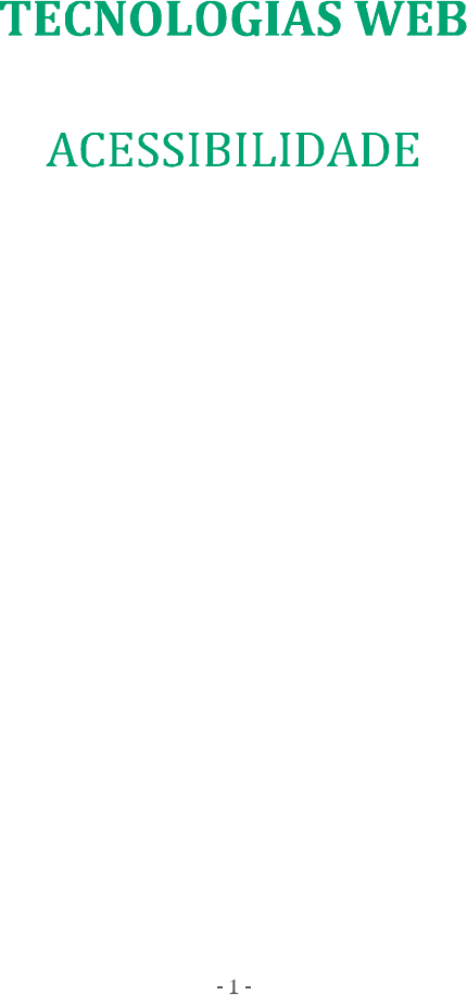 TECNOLOGIAS WEB ACESSIBILIDADEOlá! Nesta aula, iremos aprender como construir e utilizar os conceitos e tags XIITML com foco na acessibilidade, garantindo uma universalização do acesso às páginas que se venha a construir. Veremos, ainda, como aperfeiçoar nosso código para uma maior flexibilidade dos conteúdos on-line utilizando esses recursos. Ao final desta aula, você será capaz de: - Apresentar os principais problemas de Aula 08: Acessibilidade na Internet - Apresentar as principais deficiências e as tecnologias de apoio - Apresentar as diretrizes do W3C para a Aula 08: Acessibilidade - Compreender as principais de soluções em HTML para transformar seu site - Listar os principais aplicativos utilizados neste segmento 1 que é acessibilidade Falar sobre a acessibilidade, principalmente na Internet, é falar em romper barreiras para acesso às Todos têm direito de ver, de ouvir e de sentir que está acontecendo ao redor de si mesmo. A preocupação em garantir o total acesso às informações deveria ser meta tanto nas empresas quanto em todas as esferas governamentais. Entretanto, que se observa é que existem portais com ações de cidadania que nem ao menos são 0 cliente mais engajado com esses princípios observa que as ações sociais mantidas pela empresa não estão preocupadas com o básico, ou seja, a acessibilidade. No mundo, isso está mudando, pois cada empresa está sendo "avaliada pelo mercado" pelo conjunto social de sua obra e não somente por alguma ação com retorno De acordo com a Lei 5296 de dezembro/2004 "Condição para utilização, com segurança e autonomia, total ou assistida, dos espaços, mobiliários e equipamentos urbanos, das edificações, dos serviços de transporte e dos dispositivos, sistemas e meios de comunicação e informação, por pessoa portadora de deficiência ou com mobilidade reduzida."Saiba mais Para mais informações, leia, agora, os seguintes textos: Estatísticas: /aula08_estatisticas.pdf Tipos de Deficiências & Soluções Tecnológicas: http://estaciodocente. Legislação: /aula08_legislacao.pdf 2 Acessibilidade e a Internet Ao longo dos anos, tanto W3C (Consórcio Mundial de Internet) quanto WAI (Projeto de Acessibilidade na Internet) não só têm apontado os problemas quanto a esse tema mas também têm feito sugestões de modificações nos portais e nos conteúdos para a Internet a fim de garantir que problemas como os descritos abaixo não mais existam, Problemas apontados pelo W3C e WAI: 2.1 Problema 1 Na Internet, é real a dificuldade que () deficiente visual tem em ler os textos devido às características dos mesmos. Existem os textos criados a partir de imagens, existem os textos cuja formatação impede o acesso de pessoas com diversos tipos de problemas visuais (baixa visão, cegueira ou problemas com contrastes) como, por exemplo, a sintaxe matemática C, também, existem os textos gerados dinamicamente por recursos que dependem de sistemas instalados na máquina do usuário (Javascript), impedindo o acesso, a qualquer tempo, por quem quer que seja. Além disso, existem os textos sem representação fonética, o que causa dificuldade de entendimento dos mesmos para aqueles que nunca ouviram a nossa língua, como é caso dos surdos. Exemplo 1: Suponha que X seja maior ou igual a Escrevendo com a simbologia matemática usual, teremos: Se pensássemos na acessibilidade, reescrever de maneira semelhante, porém universal:Dessa forma, todo navegador poderia apresentar esse conteúdo sem a necessidade de se instalar fontes e outros recursos. Exemplo 2: Outro exemplo mais complexo, porém adaptável, é o uso de matrizes que apresentariam como na figura. na forma acessível, ter mesmo conteúdo utilizando a seguinte sintaxe: [(L1C1, L1C2),(L2C1, L2C2)] L1C2 L2C1 L2C2 Exemplo 3: Utilizando a sintaxe do MATHML, definida pelo W3C, poderíamos, ao invés da função descrita de forma gráfica como na figura, ter, na forma a mesma função, só que utilizando o formato textual: se se x=1) } 2 2.2 Problema 2 Existem dificuldades em se interpretar as informações seja pela barreira da língua, seja pela forma de exposição ou pela busca de informações cujas indicações, muitas vezes, não são dadas ou não estão claras por acreditar ser óbvio que se quer dizer. Nesse caso, é óbvio para quem fez ou para todos os internautas? É fundamental que os especialistas no assunto não validem que foi construído a fim de garantir perfeito entendimento e acesso de todos. 2.3 Problema 3 Existem pessoas que, por razões diversas, não podem utilizar mouse. Muitos portais somente permitem interação do usuário via mouse, solicitando-lhe "clicar para pular a introdução". Se ele não pode utilizar () mouse, ele nunca poderá interagir.Outro problema, ainda, são os teclados virtuais que, embora disponibilizados por medida de segurança, não fornecem alternativas que não podem utilizar mouse. Nesse caso, estamos falando de impossibilidades cuja complexidade varia como, por exemplo, um simples cabo de mouse partido, pessoas portadoras de LER (Lesão por Esforço Repetitivo) C pessoas com 2.4 Problema 4 Existem portais que foram projetados para garantir a atenção dos usuários C, no caso de tarefas cm que isto não é possível, não apresentam outras Imagine-se sendo capaz de ler as informações de um portal enquanto dirige um carro. Nada feito. Mas, se o portal disponibilizasse alguma alternativa que tornasse isso possível, ou se dispositivo de conexão web solucionasse esse problema, mesmo dirigindo, poder-se-ia buscar, na internet, informações através de comandos de VOZ, e a resposta de tal busca chegaria, também, através de um conteúdo falado. Para isso, tanto os portais quanto os dispositivos móveis deveriam prever esse tipo de solução. 2.5 Problema 5 Necessidade de frequente atualização de recursos na máquina do usuário. Sabemos que as inovações tecnológicas são importantes, mas, em muitos caso