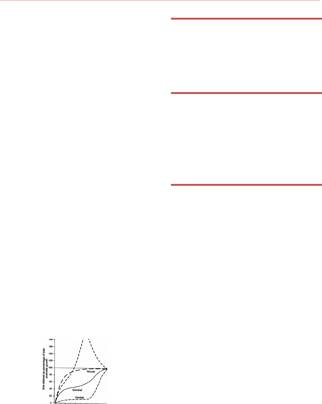 Ortodontia I Crescimento e desenvolvimento craniofacial pós natal Crescimento ↓ Corporal X craniofacial · primeiro sempre cresce a maxila e depois a mandíbula alcança; se tiver algum crescimento que não ocorra normal, o ortodontista precisa verificar Proporção da cabeça e face · Ao nascimento, a face é completamente subdesenvolvida em relação ao adulto · Em 2 meses de VIU a cabeça do feto corresponde a 50% total do corpo · Ao nascimento a cabeça corresponde menos de 25% total do corpo · Crescimento total do corpo, ocorre de forma diferente do crescimento da face e crânio · Crânio é bem maior que a face na VIU · Em uma determinada fase da vida tem uma maxila mais desenvolvida do que a mandíbula e depois a mandíbula acaba alcançando na puberdade · A mandíbula, que esta mais distante do cérebro, tendera a crescer mais e mais tarde do que a maxila que esta próxima · Se a mandíbula esta muito grande em uma determinada idade, na maioria das vezes vai ser caso cirúrgico; paciente classe III (mandíbula muito a frente da maxila · Curva de scammon (ocorre entre 10 e 15 anos de idade o maior crescimento, devido ao período de puberdade/ menarca) · As primeiros 5 anos de vida, é muito importante a alimentação da criança pois é quando o sistema neurológico esta terminando de se formar Crescimento · Matéria viva torna-se maior · Mudança em quantidade · Quantitativo · Divisão celular · Atividade biológica Desenvolvimento · Alcance de estágios mais complexos, mais avançados em direção a maturação · Mudança em qualidade · Organização · Complexidade · Especialização Variáveis que alteram o desenvolvimento 1- Hereditariedade Controle genético; Padrão de referencia (pais- avós) para analisarmos as característica do paciente 2- Nutrição Desnutrição leve, retarda o crescimento; enquanto a desnutrição extrema altera o crescimento 3- Enfermidade/doenças Doenças hormonais influencia na qualidade do crescimento pois são os hormônios que administra a qualidade de crescimento (hormônio do crescimento, se você tem deficiência dele, vai acarretar o crescimento); somente sistêmicas graves (ex: distúrbios endócrinos) 4- Raças Diferenças na época e qualidade da maturidade esquelética *mistura racial entre pais, pode influenciar 5- Clima e efeito sazonal (efeitos das estações do ano) Tem pouco efeito direto sobre a qualidade do crescimento 6- Sócio econômico Esta ligada a nutrição; a qualidade de alimentação 7- Exercício Não influencia no crescimento; o que influencia é a característica genética 8- Tamanho e ordem familiar Os primogênitos alcançam menor estatura (não é comprovado) 9- Tendências seculares Diferenças seculares/média de menarca esta caindo e media de estatura tem aumentado 10- Perturbações psicológicas Situações estafantes, inibem o hormônio do crescimento *hormônio do crescimento é produzido a noite, nas primeiras horas de sono; por isso a criança precisa dormir bem Métodos de estudo do crescimento 1- Antropológico físico Craniometria (medições do crânio, de acordo com a evolução do homem); 2- Histológicos-radioisótopos e químicos Corantes vitais (alizarina e tetraciclina); substancias que reagem fortemente ao calcio, nos locais de crescimento; faixa escura é o crescimento que ocorreu onde foi injetado o corante 3- Implante metálico- estudos de bjork Colocou pinos metálicos para avaliar crescimento Pinos de tântalo/ metal; marcas de referencia; cefalometrias seriadas 4- Cefalometria radiográfica Estudo de crescimento craniofacial; diagnostico; avaliação do espaço nasofaringeano; avaliação dos resultados pós tratamento 5- Radiografia carpal Idade esquelética Osteogênese · Formação óssea: · O osso se forma de dois modos básicos: endocondral – cartilagem · Intramembranosa Ossificação Endocondral: o osso é formado diretamente de cartilagem. Ele a invade, tomando o seu lugar (cartilagem serve de suporte para o osso invadir e se calcificar) -osso da base craniana- sincondroses (são semelhantes a suturas, mas são feitas de cartilagem) -côndilos mandibulares -septo nasal cartilaginoso Ossificação intramembranosa: células mesenquimáticas indiferenciadas do tecido conjuntivo se transformam em osteoblastos e elaboram matriz ostéoide -suturas -osso da abobada craniana -ossos da face Teoria do crescimento 1- Hunter (1771)- reabsorção e aposição Região anterior: reabsorção e região posterior aposição 2- Sicher (1947)- dominância sutural Entre as suturas dos ossos da face existe muito crescimento ligando crânio e face, sendo elas: A- fronto maxilar; B- zigomático maxilar; C- zigomático temporal ; D- pterigo-palatina 3- Scott (1953)- septo nasal Que existe um crescimento de face no sentido vertical, antero posterior e transversal) *por isso fica uma face mais achatada 4- Moss (1962)- matriz funcional Todo região que tem crescimento, tem uma matriz funcional estimulando; se o cérebro (é a matriz funcional da calota craniana) cresce- a calota craniana também cresce; o dente é matriz funcional do osso alveolar; a língua é uma matriz funcional dentro da cavidade bucal (PROVA) *a língua ta no palato enquanto você esta com a boca fechada, ela estimula o crescimento transversal da maxila e antero posterior, se ele é respirador bucal a língua fica no assoalho e a maxila não esta sendo estimulada para crescimento transversal e ela estaciona; então por isso precisa descruzar a mordida posterior, porque a língua que e a matriz funcional da cavidade bucal não estimula o aumento transversal da maxila (largura) PROVA *posição da língua vai estimular ou não um crescimento maior em largura da maxila PROVA 5- Enlow (1965)- crescimento em V 6- Petrovic (1981)- servossistema Relação entre bases ósseas (uma estimula outra); é a intervenção de mecanismo de fedback entre regiões craniofaciais que determinam o crescimento desses ossos; direç
