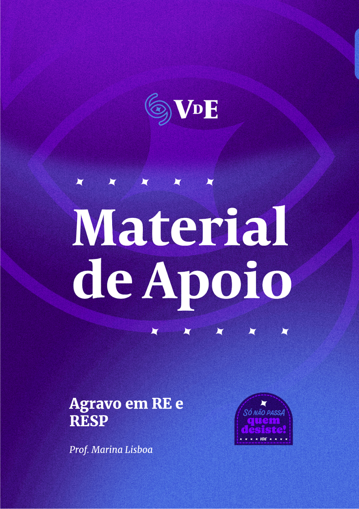 Sumário 1. CABIMENTO 3 1.1 Fundamento legal 3 1.2 Prazo 4 1.3 Procedimento 4 2. ESTRUTURA BÁSICA 6 3. CHECKLIST DOS ARTIGOS 9 1. CABIMENTO Como já visto em aulas anteriores, o RE e RESP serão interpostos perante o presidente ou o vice-presidente do tribunal a quo , e, após a verificação dos pressupostos de admissibilidade, sendo positivo, serão remetidos, respectivamente, ao Supremo Tribunal Federal e ao Superior Tribunal de Justiça. Contudo, se o Recurso Extraordinário ou Especial não for admitido pelo Presidente ou Vice-Presidente do tribunal recorrido, caberá agravo em recurso extraordinário ou especial para o STF ou para o STJ, respectivamente. É realizado um juízo de admissibilidade que denega o seguimento processual (ou seja, o recurso fica “trancado”). Assim, o Agravo em RE e RESP é o recurso capaz de combater decisões proferidas por presidente ou vice-presidente (juízo a quo ) que inadmitem RE ou RESP, levando o caso ao STF ou STJ. 1.1 Fundamento legal: O Agravo em Recurso Extraordinário e Especial têm como fundamento legal o artigo 1.042 do CPC: DE OLHO NO ARTIGO Art. 1.042, CPC. Cabe agravo contra decisão do presidente ou do vice-presidente do tribunal recorrido que inadmitir recurso extraordinário ou recurso especial, salvo quando fundada na aplicação de entendimento firmado em regime de repercussão geral ou em julgamento de recursos repetitivos. ATENÇÃO : Nos termos do caput do art. 1.042 do CPC, não cabe Agravo em Recurso Extraordinário ou em Recurso Especial quando a decisão que nega seguimento ao RE e ao RESP estiver fundada na aplicação de entendimento firmado: Em regime de repercussão geral ou; Em julgamento de recursos repetitivos. 3 1.2 Prazo: Esse recurso deverá ser manejado em até 15 dias, nos termos do art. 1.003, § 5o, do CPC. DE OLHO NO ARTIGO Art. 1.003. §5° Excetuados os embargos de declaração, o prazo para interpor os recursos e para responder-lhes é de 15 (quinze) dias. 1.3 Procedimento: O procedimento será conforme o art. 1042, §2º, §3º, §4º, §5º, §6º, §7º e §8º do CPC. a) Dispensa de Preparo: nos termos do §2° do art. 1.042 do CPC, o agravo em recurso especial ou extraordinário não se sujeita a preparo, uma vez que se trata de recurso interposto nos próprios autos. Art. 1.042, §2º. A petição de agravo será dirigida ao presidente ou ao vice-presidente do tribunal de origem e independe do pagamento de custas e despesas postais, aplicando-se a ela o regime de repercussão geral e de recursos repetitivos, inclusive quanto à possibilidade de sobrestamento e do juízo de retratação. b) Endereçamento, Juízo de Retratação e Remessa à Corte Superior: o agravo será interposto por petição escrita dirigida ao presidente ou vice-presidente do tribunal que negou seguimento ao Recurso Extraordinário e/ou ao Recurso Especial. Art. 1.042, §2º. A petição de agravo será dirigida ao presidente ou ao vice-presidente do tribunal de origem e independe do pagamento de custas e despesas postais, aplicando-se a ela o regime de repercussão geral e de recursos repetitivos, inclusive quanto à possibilidade de sobrestamento e do juízo de retratação. Interposto o agravo, o recorrido será intimado para apresentar suas contrarrazões no prazo de 15 dias. Art. 1.042, §3º. O agravado será intimado, de imediato, para oferecer resposta no prazo de 15 (quinze) dias. 4 Interposto o agravo em recurso especial ou extraordinário, o presidente ou vice-presidente do ribunal de origem irá apreciá-lo para exercer ou não a retratação. Não havendo retratação, os autos devem ser encaminhados ao STJ ou ao STF, conforme o caso. Art. 1.042, §4º. Após o prazo de resposta, não havendo retratação, o agravo será remetido ao tribunal superior competente. c) Interposição conjunta de agravo em recurso extraordinário e especial: Havendo interposição conjunta de recursos extraordinário e especial, se ambos os recursos forem inadmitidos, caberão dois agravos: um contra a inadmissão do recurso especial e outro contra a inadmissão do recurso extraordinário. Nesse caso, os autos seguem para o STJ, a fim de julgar o agravo em recurso especial. Concluído o julgamento do agravo pelo STJ e, se for o caso, do recurso especial, os autos serão, independentemente de pedido, remetidos ao STF para apreciação do agravo a ele dirigido, salvo se estiver prejudicado. Art. 1.042 (...) §5º - O agravo poderá ser julgado, conforme o caso, conjuntamente com o recurso especial ou extraordinário, assegurada, neste caso, sustentação oral, observando-se, ainda, o disposto no regimento interno do respectivo tribunal. §6º - Na hipótese de interposição conjunta de recursos extraordinário e especial, o agravante deverá interpor um agravo para cada recurso não admitido. §7º - Havendo apenas um agravo, o recurso será remetido ao tribunal competente, e, havendo interposição conjunta, os autos serão remetidos ao Superior Tribunal de Justiça. §8º - Concluído o julgamento do agravo pelo Superior Tribunal de Justiça e, se for o caso, do recurso especial, independentemente de pedido, os autos serão remetidos ao Supremo Tribunal Federal para apreciação do agravo a ele dirigido, salvo se estiver prejudicado. d) Aspecto Formal: como o agravo em RE e RESP é interposto no tribunal a quo e julgado pelo STJ ou STF, deve ser elaborado com peça dupla, ou seja, peça de interposição e razões de recurso: (I) Peça de interposição: ao juízo a quo (juízo que negou seguimento ao RE ou RESP: presidente ou do vice-presidente do tribunal recorrido); 5 (II) Razões de Recurso: É a peça do recurso em si, que vem logo após a peça de interposição . Endereçada ao STJ ou STF, que irá analisar o mérito do recurso. 2. ESTRUTURA BÁSICA PEÇA DE INTERPOSIÇÃO: FOLHA DE ROSTO 1º) Endereçamento e Nº do Processo: art. 319, I, CPC: ao juízo a quo (presidente ou vice-presidente do TJ ou TRF); 2º) Qualificação 
