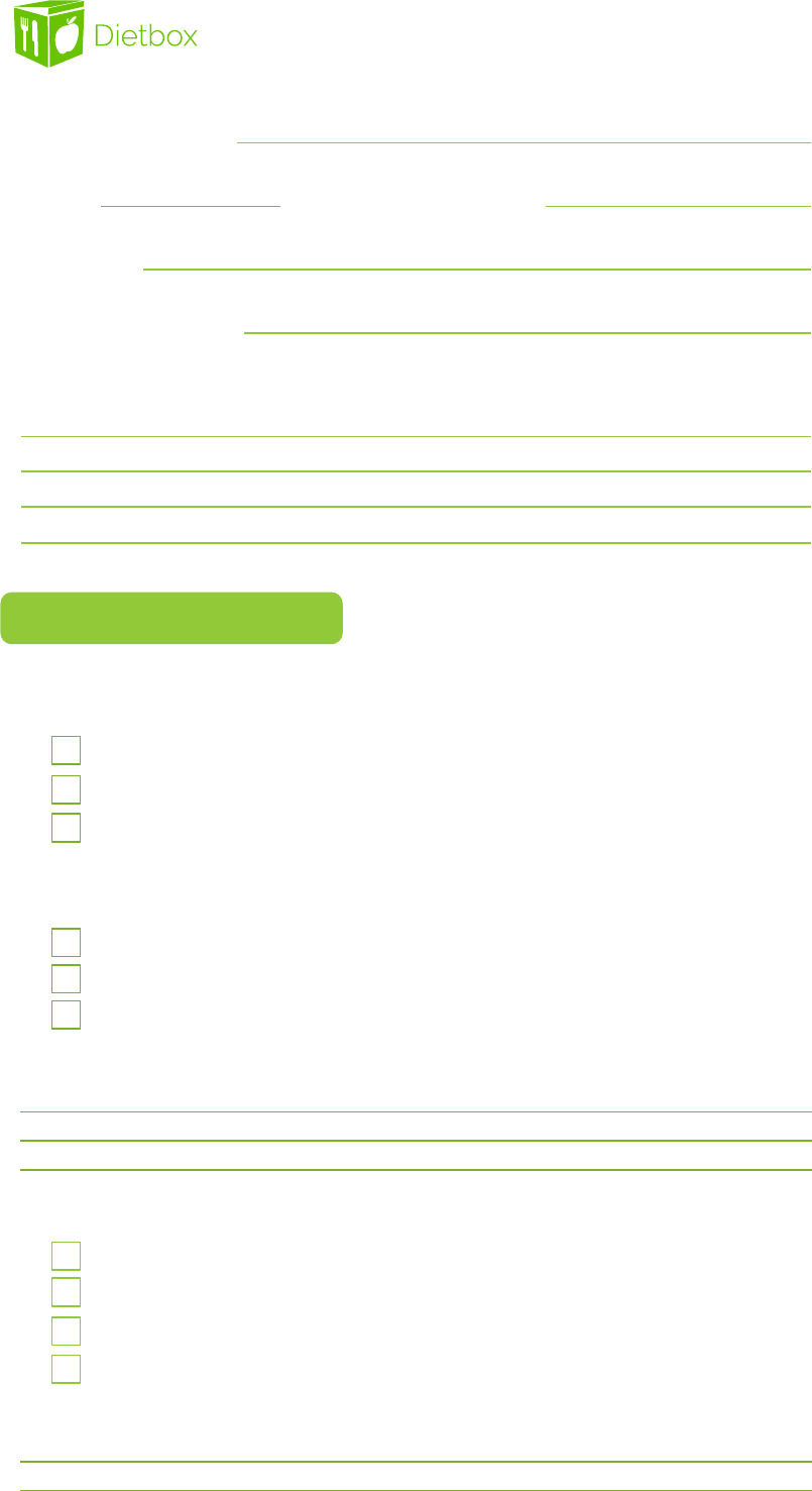 Possui alguma restrição alimentar? Não Vegetariano Vegano Ingere Bebidas alcoólicas? Não Todos os dias Socialmente Qual e quantas vezes na semana? É fumante? Não Todos os dias Finais de semana Socialmente Qual e quantas vezes na semana? Ficha de anamnese nutricional HÁBITOS DE VIDA Nome completo: Idade: Data de nascimento: Profissão: Data da consulta: Caso clínico (motivo do paciente, observações gerais, objetivos) Refeições fora de casa ou pedido por delivey Quais? Quantas vezes na semana? Hábitos de compra Mora com quantas pessoas? (família? Amigos?) Quem realiza as compras de casa? Onde realiza as compras? Quantas vezes por mês? Quantos litros de óleo são utilizados por mês? Quantos Kg de sal são utilizados por mês? HISTÓRICO Já realizou estratégias para perda de peso anteriormente? Se sim, foi com acompanhmento de um profissional? Como se sentiu durante esse processo? Houve perda de peso? Quanto? Por quanto tempo? Dorme bem Dorme mal Quantas horas? Que horas costuma ir dormir? Observações do sono Faz atividade física? Se sim, qual tipo, frequência, em que dias? Observações Quais? Histórico familiar Exames Medicamentos Observações Qual foi seu peso máximo e mínimo? Vida adulta: Adolescência: HÁBITOS DE SONO ATIVIDADE FÍSICA PATOLOGIAS Apetite Cor das fezes: Frequência de evacuação Hábito urinário FORMATO DAS FEZES (ESCALA DE BRISTOL) Pequenos fragmentos duros semelhantes a nozes Em forma de salsicha, mas com grumos Em forma de salsicha com fissuras à superfície Em forma de salsicha ou cobra (mais finas), mas suaves e macias Fezes fragmentadas, mas em pedaços com contornos bem definidos e macias Em pedaços esfarrapados TIPO 1 TIPO 2 TIPO 3 TIPO 4 TIPO 5 TIPO 6 Normal Aumentado Diminuído Mastigação Faz uso de laxante Marrom Amarelo Verde Avermelhado Escura Clara Normal Rápida Lenta Hábito intestinal Normal Constipante Diarréico Variado Ingestão hídrica: quantos copos de água consome por dia? AVALIAÇÃO CLÍNICA Hidratação da urinária HIDRATADO DESIDRATADO MUITO DESIDRATADO Observações: HÁBITOS ALIMENTARES Suplementos alimentares Alergia alimentar Intolerâncias alimentares Aversão alimentares Observações