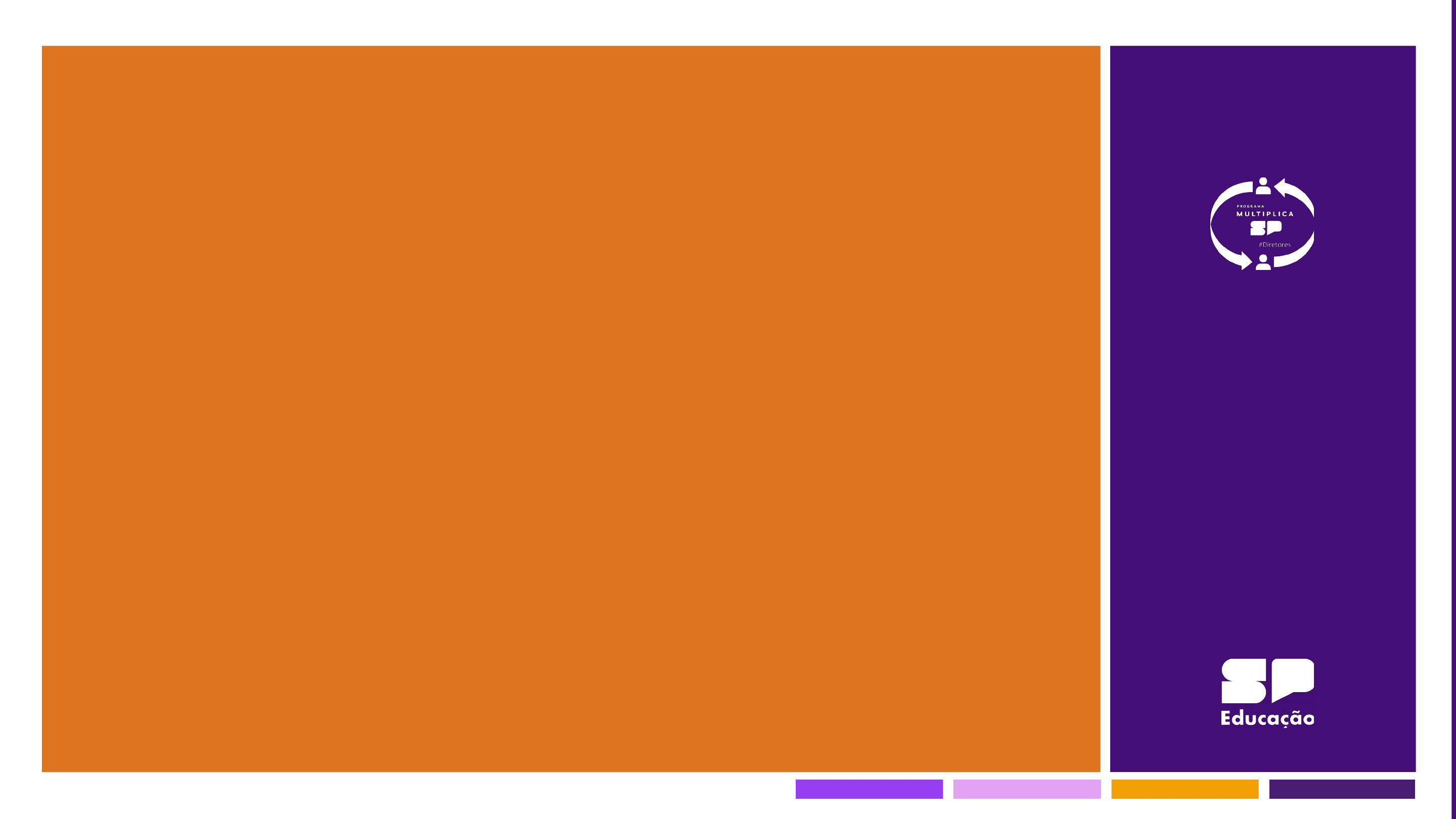 Pauta 6 Interação com os Estudantes Programa Multiplica SP Pautas Formativas #Diretores De 14 a 17/05 Formador(a): Este é o slide(capa) que apresenta o tema da Pauta Formativa 6 – Interação com os estudantes. Neste momento, os cursistas já estarão na sala virtual, e você já vai iniciar a formação, por isso, é imprescindível que inicie a gravação da aula. Lembre-se de que agora ao clicar em "iniciar a gravação", o processo ocorre automaticamente. Já com a aula iniciada (gravando), dê as boas-vindas aos cursistas. Reforce o seu contentamento por estarem juntos em mais um encontro. Agradeça-os, e deseje uma ótima formação. Item: o período em que a pauta 6 roda com os cursistas é de 14 a 17/05. Chamamos de período, porque cada Diretor Multiplicador tem o dia específico de formação com a sua turma de cursista. 1 Programa Multiplica SP #Diretores Dialogar sobre a interação do Diretor com os estudantes, tendo em vista a melhoria dos processos de ensino e de aprendizagem. OBJETIVOS Apresentar formas de interação social e sua relação com o aperfeiçoamento dos processos de ensino e de aprendizagem. Para começar... (2 minutos) Formador(a): Neste momento, leia o slide que apresenta os objetivos da pauta formativa 2. Glossário: 1. Interação social: é o processo pelo qual agimos e reagimos em relação àqueles que estão ao nosso redor (GIDDENS, 2005, p. 82). 2. Interação: a) influência mútua de órgãos ou organismos inter-relacionados; b) ação recíproca de dois ou mais corpos; c) atividade ou trabalho compartilhado em que existem trocas e influências recíprocas; d) comunicação entre pessoas que convivem, diálogo, trato, contrato [...] - (HOUAISS, 2001). 3. Acolhimento – ação pedagógica realizada por intermédio de um conjunto de práticas que visa criar um ambiente seguro, acolhedor e inclusivo para alunos, professores, funcionários e familiares. Esse processo pode ocorrer em diferentes momentos, desde a chegada do aluno na instituição até em desafios ao longo dos anos letivos, entre elas, ações de integração de novos estudantes no início ou durante o ano letivo, observadas as especificidades de cada um, e de respeito à diversidade durante o ano letivo (ESCOLA MAIS, 2024; SÃO PAULO – SEDUC, 2017). 4. Escuta ativa - a escuta ativa envolve interesse pelo que está sendo dito, a aproximação corporal e o uso de expressões de encorajamento à continuidade da fala no intuito de identificar as necessidades e situação da pessoa. Desse modo, a escuta ativa pode ser desenvolvida da seguinte forma: Exercer a empatia, colocando-se no lugar do outro; • Deixar o(a) tutorado(a) falar sem interrompê-lo(a); • Atentar-se à comunicação verbal e não-verbal; • Focar no que é falado pelo(a) tutorado(a); • Evitar juízos de valor, críticas e domínio da conversa, numa perspectiva imparcial; • Adotar uma posição afirmativa, mostrando respeito pelo(a) tutorado(a); • Acolher e buscar compreender; • Mostrar real interesse pelo que é expressado pelo(a) tutorado(a); • Incentivar, no(a) tutorado(a), uma curiosidade crítica e uma prática reflexiva sobre suas próprias opiniões a partir de outra perspectiva (SÃO PAULO – SEDUC, 2024, p. 11). 5. Empatia - a) capacidade de se identificar com outra pessoa, de sentir o que ela sente, de querer o que ela quer, de apreender do modo como ela apreende etc; b) psic. processo de identificação em que o indivíduo se coloca no lugar do outro e, com base em suas próprias suposições ou impressões, tenta compreender o comportamento do outro; c) soc. forma de cognição do eu social mediante três aptidões: para se ver do ponto de vista de outrem; para ver os outros do ponto de vista de outrem; ou para ver outros pontos de vista deles mesmos [...] - (HOUAISS, 2001). 2 Programa Multiplica SP #Diretores Observe a imagem com atenção! Para começar... Como você procederia a partir das informações coletadas nesta interação? Fonte: Porvir - https://porvir.org/especial/participacao/ (adaptado) (10 minutos) Formador(a): Esta seção tem como objetivo iniciar o processo reflexivo sobre o tema da pauta formativa, que será fomentado ao longo da aula. Nesta pauta, as primeiras reflexões acerca do Interação com os estudantes– tema da aula- terá como "start" a leitura da imagem e as possíveis reflexões suscitadas. Leia a imagem e, em seguida a pergunta norteadora que consiste em solicitar ao cursista a refletir e compartilhar como procederia em relação ao contexto apresentado. Estabeleça um tempo de 3 minutos para que os cursistas façam suas anotações. Em seguida, inicie a mediação das falas. Ao final da socialização, faça uma breve sistematização das falas, ressaltando a situação apresentada na imagem revela a importância da escuta ativa e empática. Imagem: PORVIR. Participação. Disponível em: https://porvir.org/especial/participacao/ . Acesso em: 08 de abril de 2024. 3 Programa Multiplica SP #Diretores Pensando na interação com os estudantes: Como você realiza essa interação? Quais tempos e espaços, você disponibiliza para a interação? Como você utiliza as informações derivadas da interação para a melhoria dos processos de ensino e de aprendizagem em sala de aula? De Diretor para Diretor (30 minutos, sendo 2 minutos para cada diretor) Formador(a): este é o momento de socialização da atividade que os cursistas acabaram de fazer. Leia o slide, enfatizando a comanda, e em seguida, estabeleça um combinado com os cursistas, de modo que cada um tenha assegurado o seu momento de fala, por isso, é imprescindível que você informe e reforce o tempo de fala de cada um. Uma sugestão, por exemplo, é você combinar que vai chamá-los nominalmente, seguindo a ordem dos nomes que aparecem no "ícone participantes" (aquele desenho que aparece a figura de duas pessoas, lembra?). Uma outra possibilidade é solicitar que os cursistas coloquem no chat emoj