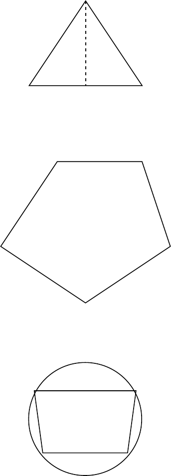 Universidade Federal do Pará - Universidade Aberta do Brasil Faculdade de Matemática - Curso de Licenciatura em Matemática Disciplina: Geometria I Professor: João Rodrigues dos Santos Júnior Lista de Exerćıcios 1. (Aula 1 - Conceitos Básicos) Seja um triângulo ABC com AB = AC. Mostre que os ângulos na base são congruentes. 2. (Aula 2 - Congruência de Triângulos) No triângulo ABC, tem-se que AB = AC. Seja D o ponto médio de BC. Mostre que os triângulos ABD e ACD são congruentes e que ∠ADB = ∠ADC. B C A D 3. (Aula 3 - Poĺıgonos Convexos) Prove que a soma dos ângulos internos de um poĺıgono convexo de n lados é dada por (n− 2)× 180◦. 4. (Aula 4 - Ângulos na Circunferência) No quadrilátero ćıclico ABCD, sabe-se que ∠ABC = 70◦ e ∠ADC = 110◦. Determine os ângulos restantes. A B CD 5. (Aula 5 - Quadriláteros Notáveis) Em um paralelogramo ABCD, mostre que as diagonais se cortam ao meio. 1 6. (Aula 6 - Pontos Notáveis de um Triângulo) Seja um triângulo ABC. Prove que as três medianas se encontram em um ponto, chamado baricentro. 7. (Aula 7 - Complementos) Demonstre que a soma das medidas das três medianas de um triângulo é menor que seu peŕımetro. 8. (Aula 8 - Segmentos Proporcionais) No triângulo ABC, a bissetriz interna relativa ao lado BC divide BC em dois segmentos proporcionais aos lados AB e AC. Demonstre. 9. (Aula 9 - Triângulos Semelhantes) Se △ABC ∼ △DEF , então seus lados corre- spondentes são proporcionais. Prove essa afirmação. 10. (Aula 10 - Triângulo Retângulo) Num triângulo retângulo ABC com hipotenusa c, demonstre o Teorema de Pitágoras: a2 + b2 = c2. 11. (Aula 11 - Circunferência e Potência de um Ponto) Um ponto P exterior a uma circunferência tem distâncias PA e PB até dois pontos de tangência. Prove que PA2 = PB2. 12. (Aula 12 - Áreas de Superf́ıcies Planas) Prove que a área de um triângulo de base b e altura h é dada por A = bh 2 . 2