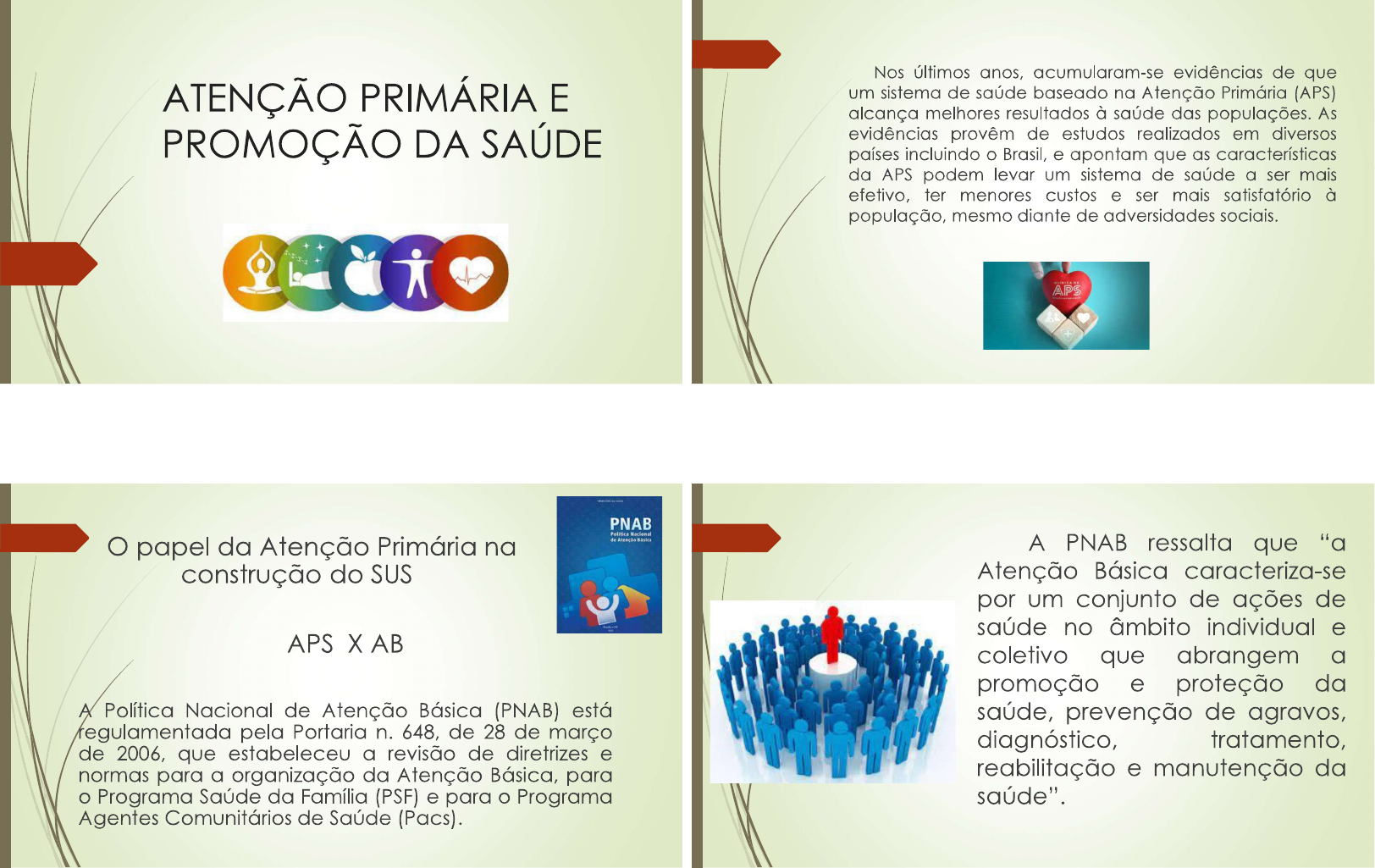 Nos últimos anos, acumularam-se evidências de que ATENÇÃO PRIMÁRIA E um sistema de saúde baseado na Atenção Primária (APS) alcança melhores resultados à saúde das populações. As PROMOÇÃO DA SAÚDE evidências provêm de estudos realizados em diversos países incluindo Brasil, e apontam que as características da APS podem levar um sistema de saúde a ser mais efetivo, ter menores custos e ser mais satisfatório à população, mesmo diante de adversidades sociais. PNAB papel da Atenção Primária na A PNAB ressalta que "a construção do SUS Atenção Básica caracteriza-se por um conjunto de ações de saúde no âmbito individual e APS X AB coletivo que abrangem a promoção e proteção da A Política Nacional de Atenção Básica (PNAB) está saúde, prevenção de agravos, regulamentada pela Portaria n. 648, de 28 de março diagnóstico, tratamento, de 2006, que estabeleceu a revisão de diretrizes e normas para a organização da Atenção Básica, para reabilitação e manutenção da Programa Saúde da Família (PSF) e para Programa saúde". Agentes Comunitários de Saúde (Pacs).É desenvolvida por meio do exercício de A Atenção Primária à Saúde (APS) práticas gerenciais e sanitárias democráticas considera sujeito em sua singularidade, complexidade, e participativas, sob forma de trabalho em integralidade e inserção sociocultural equipe, dirigidas a populações de territórios e busca a promoção de sua saúde, a bem delimitados, pelas quais assume a prevenção e tratamento de doenças responsabilidade sanitária, considerando a e a redução de danos ou de dinamicidade existente no território em que sofrimentos que possam comprometer vivem essas populações. Utiliza tecnologias suas possibilidades de viver de modo de elevada complexidade e baixa saudável. densidade, que devem resolver os problemas de saúde de maior frequência e relevância em seu território. Assim, em 1993, MS cria a ESF com a proposta de atender e a família de forma integral e contínua, a partir de ações de promoção, proteção e recuperação da saúde. Tal estratégia tem como objetivo reorganizar a prática assistencial centrada no hospital, passando a atuar frente a família em seu ambiente físico e social A ESF pode ser definida como "um modelo de atenção que pressupõe o Saúde da Família reconhecimento de saúde como um direito de cidadania expressa na melhoria das condições de vida, no que toca a Nesse contexto, surge a Estratégia Saúde da Família área de saúde. Essa melhoria deve ser traduzida em serviços (ESF) com propostas para mudar toda a antiga mais resolutivos, integrais e principalmente humanizados". concepção de atuação dos profissionais de saúde, saindo da medicina curativa e passando a atuar na integralidade da assistência, considerando usuário como integrante de uma comunidade com características socioeconômicas e culturais.A atenção primária tem aspectos únicos, próprios dela, que a caracterizam e diferenciam dos demais níveis de atenção. Para realmente se Reorganização da entender que é a APS, deve-se conhecer os atenção básica no País elementos que a constituem (quadro 1) e como Estratégia se articulam. Saúde da + Família (ESF) SUS Preceitos do Sistema Único de Saúde Quadro 1 PRINCÍPIOS F ELEMENTOS DE UM MODELO DE SAÚDE BASEADO NA APS F DO MODELO DE SAÚDE ADOTADO PELO BRASIL MODIFICADO DO QUADRO DA Quadro 2 AS DIFERENTES INTERPRETAÇÕES DA ATENÇÃO PRIMÁRIA À SAÚDE sus BRASIL A SAÚDE DA INTERPRETAÇÕES DE APS DEFINIÇÃO ou CONCEITO DE APS Universidade VALORES APS seletiva A APS constitui-se em um conjunto de atividades servições de alto Equidade Expressam os valores dominantes em uma São a Um conjunto específico de atividades e servições de impacto para enfrentar alguns dos desafios de saúde mais prevalentes nos Integralidade âncora moral para as políticas e programas de interesse público saúde voltados população pobre países em desenvolvimetno (Gofin; Gofin, Participação controle social APS refere-se ao ponto de entrada no sistema de saúde quando se Territorialização Um nível de Atenção apresenta um problema de assim como o local de cuidados Intersetorialidade em um sistema de serviços de contínuos da para a maioria das pessoas. Esta concepção mais PRINCÍPIOS Carater substitutivo (baseado na pessoa e não na doença) comum da APS na Europa e em outros países industrializados. Provêm as bases para a os critérios para a Equipes multiprofissionais Para que a APS possa ser entendida como uma estratégia para organizar critérios para alocação de recursos. Baseado nas necessidades expectativas das populações o sistema de saúde. este sistema deve estar baseado em alguns princípios Uma estratégia para organizar os sistemas de estratégicos simples: funcionalmente integrados baseados Voltado para qualidade de vida atenção saúde na participação da e caracterizados por colaboração ÚNICOS DA APS: Primeiro contato Um país só pode proclamar que tem um sistema de saúde baseado na integralidade no sentido mais profundo da expressão, quando seu sistema de longitudinalidade saúde se caracteriza por: justiça social coordenação solidariedade internacional e aceitação de um conceito amplo de Derivados dos anteriores Enfatiza compreensão da saúde como um direito humano e a ATRIBUTOS necessidade de abordar os determinantes sociais políticos mais amplos ELEMENTOS ou CARACTERÍSTICAS DA Enfoque na pessoa (não na doença) e na família da saúde (Ministério da 2006). São base estrutural e funcional do sistema de Permitem Valorização dos aspectos culturais Uma concepção de sistema de uma "filosofia" operacionalizar as políticas, os programas os serviçoes Orientado para comunidade que permeia todo o sistema de Não diferente nos princípios de Alma-Ata mas sim na ênfase sobre as Não únicos da mas essenciais: implicações sociais políticas na Defende