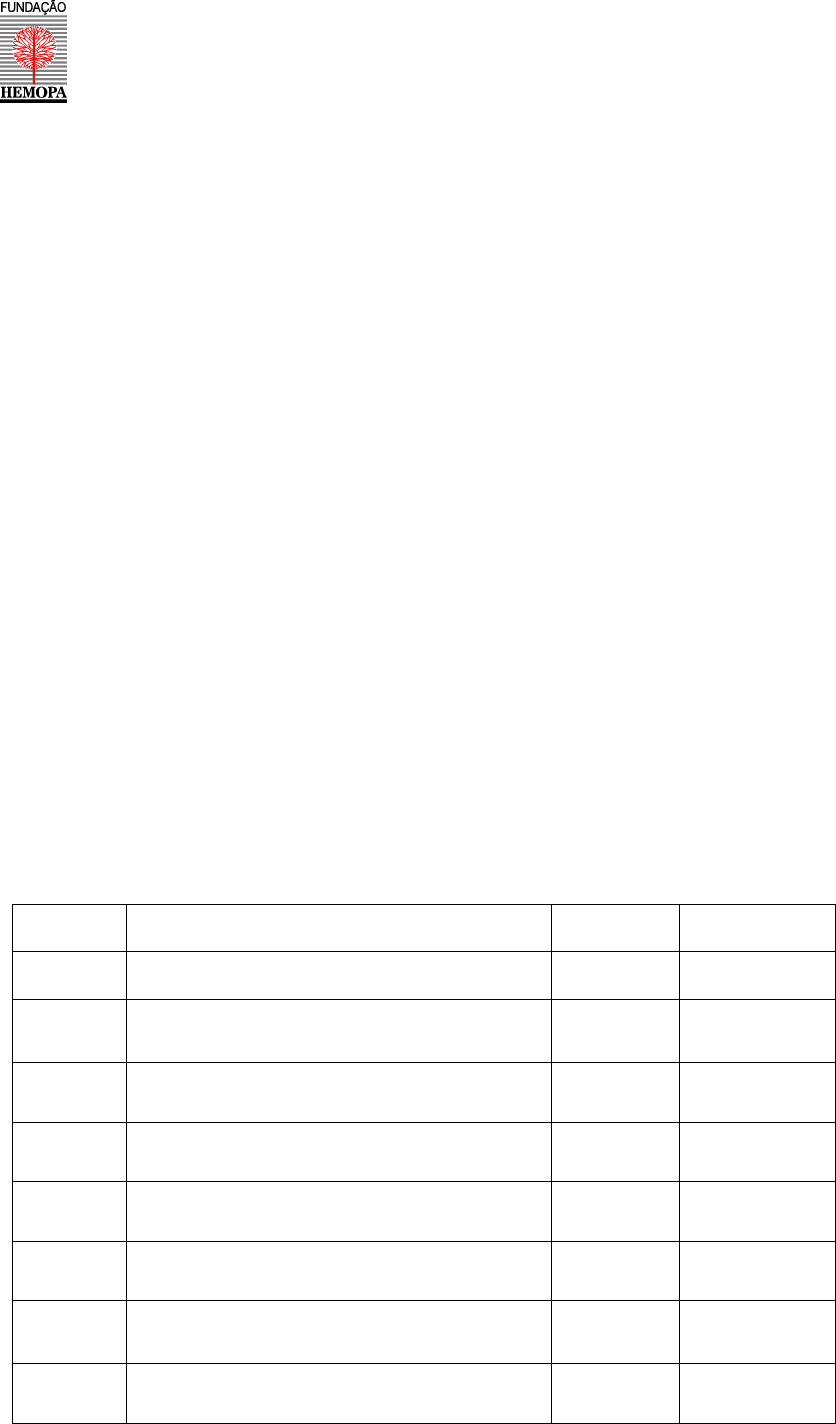 GOVERNO DO ESTADO DO PARÁ SECRETARIA DE ESTADO DE SAÚDE PÚBLICA FUNDAÇÃO CENTRO DE HEMOTERAPIA E HEMATOLOGIA DO PARÁ TERMO DE REFERÊNCIA Pág. 1 de 8 1. OBJETO O presente Termo de Referência tem por objeto a aquisição AQUISIÇÃO DE REAGENTES PARA REALIZAÇÃO DE EXAMES PARA DETECÇÃO DE DEFICIÊNCIA DE G6PD EM PACIENTES NA FUNDAÇÃO HEMOPA, pelo período de 12 (doze) Meses. 2. DA JUSTIFICATIVA 2.1. Justifica-se a presente aquisição em função da necessidade dos referidos insumos para uso nos testes de triagem e confirmação dos pacientes com suspeita de deficiência de G6PD, no diagnóstico diferencial das anemias hemolíticas, principalmente em crianças, atendidos no ambulatório da Fundação HEMOPA. 2.2. O processo de aquisição ocorrerá no tipo MENOR PREÇO POR ÍTEM. 2.3. Tal aquisição está fundamentada RDC 302/205, 13 de outubro de 2005, Ministério da Saúde. 3.ESPECIFICAÇÃO TÉCNICA 3.1.Apresentação e quantidade dos produtos, conforme abaixo: ITEM ESPECIFICAÇÃO TÉCNICA UNID QUANT 01 Cloreto de magnésio ( MgCl2) , hexahidratado.Frasco com 100 gramas FRASCO 01 02 Β- nicotinamida adenina dinucleotideo fosfato sal de sódio hidratado (C21H27N7NaO17P3 · xH2O). Frasco com 1grama. FRASCO 01 03 Glucose D( + ) Anidra, PA ( DEXTROSE ) O6H12O6 . Frasco com 500gr FRASCO 01 04 Corante azul de metileno solução. (C16H18N3SCl ). Frasco com 1 litro FRASCO 01 05 MTT ( Thiazolyl Blue Tetrazolium bromide , 98% ) C18H16BrN5S. Frasco com 1 grama FRASCO 01 06 Metilsulfato fenazine ( C13H11N2.CH3SO4). Frasco com 1 grama. FRASCO 01 07 G6P (Alfa D glucose 6- fosfato dissódio sal hidratado ) C6H11NA2O9P.xH2O . Frasco com 1 grama FRASCO 01 08 TRIS Hidroximetil amino metano (TRIS BASE ) NH2C(CH2OH)3. Frasco com 500 gramas FRASCO 01 GOVERNO DO ESTADO DO PARÁ SECRETARIA DE ESTADO DE SAÚDE PÚBLICA FUNDAÇÃO CENTRO DE HEMOTERAPIA E HEMATOLOGIA DO PARÁ TERMO DE REFERÊNCIA Pág. 2 de 8 09 Agarose, baixa eletroendosmose (EEO) 3,6 – Anhydro- α- Lgalacto- β , galactan; para biologia molecular. Frasco com 25 gramas. FRASCO 01 3.2.Os produtos deverão apresentar prazo de VALIDADE não inferior a 12 (doze) Meses , a contar da efetiva entrega dos mesmos à Fundação HEMOPA. 3.3. Os reagentes deverão ter registro no Ministério da Saúde, exceto os que forem isentos de inscrição. 3.4. Os fornecedores deverão fornecer FISQP dos reagentes. 4. CONDIÇÕES DE HABILITAÇÃO DA EMPRESA A habilitação do licitante vencedor far-se-á com a verificação de que o licitante está em situação regular perante a Fazenda Nacional, a Seguridade Social, CND Trabalhista e o Fundo de Garantia do Tempo de Serviço - FGTS, e as Fazendas Estaduais e Municipais, quando for o caso, com a comprovação de que atende às exigências do edital quanto à habilitação jurídica e qualificações técnica e econômico-financeira; 4.1. QUALIFICAÇÃO TÉCNICA 4.1.1. A empresa deverá apresentar Atestado de Capacidade Técnica, fornecido por pessoa jurídica de direito público ou privado, comprovando a aptidão da empresa quanto ao fornecimento dos produtos e serviços similares em quantidades e características com o objeto deste Termo de Referência; 4.1.2. Os atestados de capacidade técnica deverão estar emitidos em nome e com CNPJ/ MF da matriz e/ ou da(s) filial(ais) da licitante; 4.1.3. Comprovar através de cópia autenticada a regularidade no Ministério da Saúde (cadastramento, Notificação, Isenção ou Registro), ou publicação no Diário da União DOU, que comprove o número de registro e data de vencimento, ou ainda pedido de revalidação, protocolado no prazo legal. A comprovação poderá ser feita através de consulta no site da ANVISA, desde que contenha os dados do produto. 4.1.4. Apresentar a FISPQ (Ficha de Informações de Segurança de Produtos Químicos) devem acompanhar todos os kits e disponíveis em meio digitalizado. GOVERNO DO ESTADO DO PARÁ SECRETARIA DE ESTADO DE SAÚDE PÚBLICA FUNDAÇÃO CENTRO DE HEMOTERAPIA E HEMATOLOGIA DO PARÁ TERMO DE REFERÊNCIA Pág. 3 de 8 5. DA AMOSTRA (NÃO SERÁ NECESSÁRIO AMOSTRA) 6. PROPOSTA DE PREÇOS 6.1. O preço proposto deverá computar todos os custos necessários ao fornecimento do objeto, bem como todos os impostos, fretes, seguros, encargos trabalhistas, previdenciários, fiscais, comerciais, taxas, e quaisquer outras despesas que incidam ou venham a incidir sobre o objeto deste Temo de Referência; 6.2. A proposta de preço e documentação deverá ser redigida de forma clara e detalhada, citando especificação, fabricante ou marca, país de procedência e outras características que permitam identificá-los, sem referência às expressões “similar”, de acordo com os requisitos indicados na especificação técnica do objeto; 6.3. A proposta de preço deverá ser apresentada em papel timbrado da empresa, identificada com a razão social, CNPJ, endereço completo, telefone fixo, email, informações bancárias e assinada pelo representante legal da empresa. 6.4. A licitante deverá declarar na proposta que entregará os produtos com prazo de validade não inferior a 12 (doze) meses. 6.5. Toda proposta apresentada será considerada com prazo de validade de 120 (cento e vinte) dias, a contar da data de sua apresentação, salvo se da mesma constar prazo superior, quando então prevalecerá este prazo; 7. DAS CONDIÇÕES DE RECEBIMENTO DO OBJETO, PRAZO E LOCAL DE ENTREGA 7.1. O ítem será recebido de acordo com artigo 73 – II, “a” e “b” e parágrafos da Lei nº 8.666/93. 7.2. O ítem deverá ser entregue NO ALMOXARIFADO DA FUNDAÇÃO HEMOPA, SITUADO À RUA FERNANDO GUILHON Nº 1500, BAIRRO: JURUNAS, CEP: 66.025-008- BELÉM/PA. TELEFONE: (091) 3259-4131, de segunda à sexta-feira, NO HORÁRIO DE 08:00 ÀS 12:00 7.3. O item deverá ser entregue em REMESSA ÚNICA, no prazo máximo de 20 (vinte) dias, após a assinatura do instrumento contratual, salvo nos casos em que por lei, for dispensada a formalização