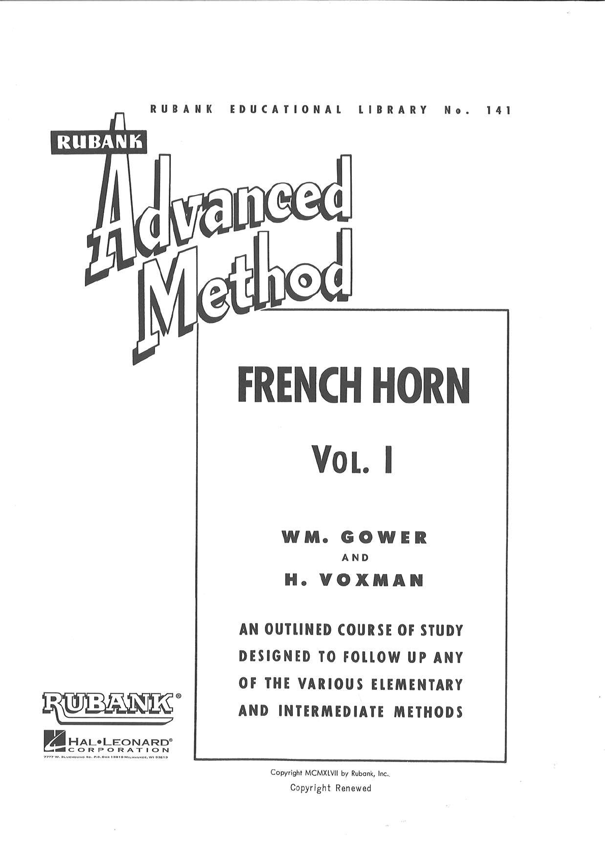 RUBANK EDUCATIONAL LIBRARY No. 141 RUBANK FRENCH HORN VOL. I WM. GOWER AND H. VOXMAN AN OUTLINED COURSE OF STUDY DESIGNED TO FOLLOW UP ANY OF THE VARIOUS ELEMENTARY UBANK AND INTERMEDIATE METHODS COR PORATIO N 7777 W. BLUEMOUND 13819 WI 53213 Copyright MCMXLVII by Rubank, Inc. Copyright RenewedNOTE THE RUBANK ADVANCED METHOD for French Horn is published in two volumes, the course of study being divided in the following manner: Vol. I Keys of C, F, G, Bb, and D Major. Keys of A, D, E, G, and B Minor. Keys of Eb, A, Ab, E, Db, and B Major. Vol. II Keys of C, F#, F, and C# Minor. PREFACE THIS METHOD is designed to follow any of the various Elementary and Intermediate instruction series, or Elementary instruction series comprising two or more volumes, depend- ing upon the previous development of the student. The authors have found it necessary in their teaching experience to draw from many sources in order to provide a progressive course of study. The present publication assembles in two volumes the material essential to a well-rounded musical development. THE OUTLINES, one of which is included in each of the respective volumes, tend to afford an objective picture of the student's progress. They will facilitate the ranking of members in a large ensemble or they may serve as a basis for awards of merit. In addition, a one- sided development along strictly technical or strictly melodic lines is avoided. The use of these outlines, however, is not imperative and they may be discarded at the discretion of the teacher. NOTATION: Music for the French Horn is written in both the treble and bass clefs. In the bass clef two manners of notation are employed, the old and the new: OLD N E W Written Played Written Played = = In this method the new notation is used throughout. Wm. Gower - H. VoxmanTable of Harmonics for French Horn The seventh harmonic is too flat and the eleventh harmonic is too sharp to be used satisfactorily. 13 14 15 16 10 11 12 Harmonic Series: 1 4 5 6 7 8 9 be 2 3 be Open be 2nd Valve be be 1st Valve 1st & O #0 2nd Valves to be 2nd & be 3rd Valves be 1st & #0 3rd e Valves 1st, 2nd to be & 3rd Valves Chromatic Fingering Chart Regular fingerings are for the F Horn; parenthetical fingerings are for the Horn. The Third Valve may be used as an alternate fingering for the First and Second Valves on either the F Horn or the Bb Horn. 1 2 (1) 2 3 1 2 1 (1) o (0) 2 1 2 (2) 2 (1) (2) 1 (0) 0 (1) or or or 2 1 (1) 3 2(2) 2 (2) 2(3) 2(1) 0 (0) 0(2) 1(0) be be (0) bo OF OF 1 2 3 (2) 2 1 2 1 2 (2) 3 (1) 3 (3) 3 (0) 2 (2) 1 (1) 2 2 1 (0) be or or or or # F Horn only 1 Bb Horn only 2 1 2 1 2 0 (1) 2 1 2 3 3 3 (0) (2) (1) (1) 2 (1) or to D- *On some Horns the Third Valve is preferred to the First and Second Valves for this note. or4 The Double Horn The many advantages of the Double Horn have gradually caused it to supercede the Single F Horn and the Single Bb Horn. The modern Double Horn has an effective over-all length of approxi- mately twelve feet when played in F. When played in Bb, the length is approximately nine The primary of the Bb Horn is the greater certainty of striking the correct tone in the upper register. Performers and teachers differ as to the note in the scale where the changeover from F to Bb should be made. Without altering the fingering, it is possible to press the thumb valve on any tone between G# and C inclusive; e. g., "A" (second space) may be fingered 1st and 2nd valves either with or without the thumb valve. The authors recommend that the change, in most cases, be made at C# thereby insuring the most uniform tone quality. Major Scale Chromatic Scale 2 2 0 1 1 2 0 2 0 2 2 With thumb valve With thumb valve For acoustical reasons certain tones of the lower register are produced more easily on the Bb Horn. 2 With thumb valve Transposition A thorough knowledge of transposition is indispensable to the serious student of the French Horn. Although most recent publications provide parts for the Horn in F, the student will frequently be obliged to execute Horn parts in Eb (in the band) and in high Bb, A, Ab, G, F#, F, E, Eb, D, Db, C, B and low Bb (in the orchestra). Transposition can be accomplished with either the aid of the clefs or according to the intervals. In this country the most frequently used method is that of the intervals. Thus, Horn parts are played one whole step (a major second) lower than they are written: Horn in Eb Played on F Horn (transposed a major second downward) Copyright Renewed Copyright MCMXLVII by Rubank, Inc.5 AMERICA Horn in Eb Played on F Horn. (transposed a major second downward) Muting Muting is done by placing the right hand inside the bell of the French Horn so as to all but close the bell. The hand is inserted far enough to raise the pitch exactly one half-step. This raising of the pitch obliges the player to transpose the muted note one half-step lower. Written for muted French Horn. Play with bell stopped. Various words and signs are used to indicate the use of the muted or stopped horn. The German terms gestopft or the French bouché, the Italian con sordino, all mean to mute the horn. In ad- dition to these terms the symbol + is frequently used. To indicate the open horn after a muted pass- age, the words open or natural, (German), ouvert (French), and senza sordino (Italian), are used. The symbol is also common. Some players prefer to use brass mutes instead of the hand. These mutes are of two types, a transposing and a non-transposing variety.6 Transposition Studies Horn in high Bb (Bb Alto) Played on F Horn (transposed a perfect fourth upward) Horn in A Played on F Horn (transposed a major third upward) Horn in Ab Played on F Horn (transposed a minor third upward) (b) Horn in G Played on F Horn (transposed a major second upward) Horn in F# (Gb) Played on F Horn (transposed an augmented prime upward) Horn in E Played on F Horn (transposed a minor second downward)7 Horn in Eb Played on F Horn (transposed a major second downward) (b) Horn in D