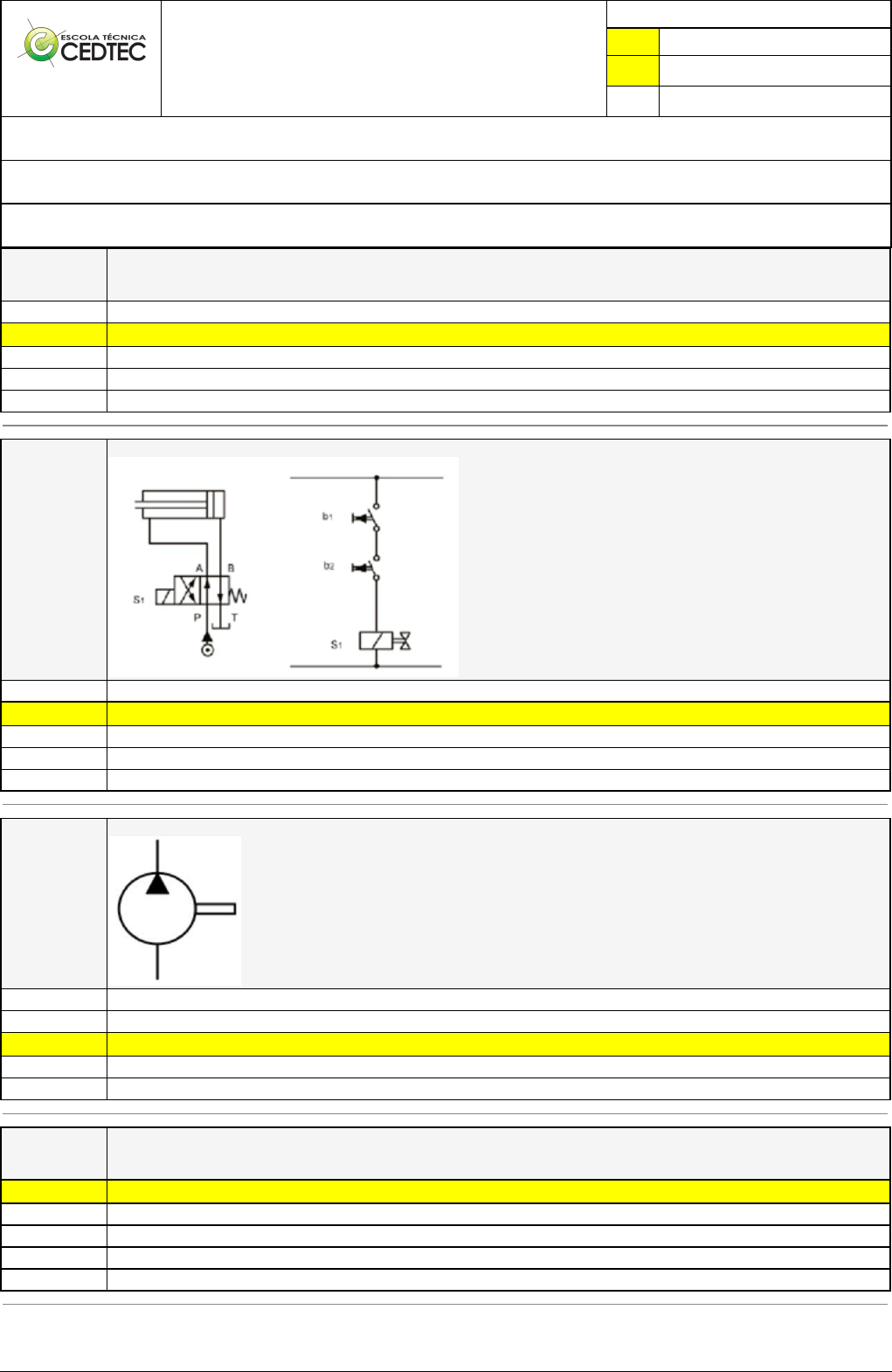 Pincel Atômico - 07/04/2025 13:25:28 1/1 HESHILEY LIMA CALIXTO Exercício Caminho do Conhecimento - Etapa 8 (22608) Atividade finalizada em 02/04/2025 16:13:26 (3761847 / 1) LEGENDA Resposta correta na questão # Resposta correta - Questão Anulada X Resposta selecionada pelo Aluno Disciplina: HIDRÁULICA E PNEUMÁTICA [1122112] - Avaliação com 4 questões, com o peso total de 13,33 pontos [capítulos - 112] Turma: Curso Técnico: Mecânica - Grupo: MAIO/24 PRES - N.MEC.Mai.24 [125264] Aluno(a): 91619109 - HESHILEY LIMA CALIXTO - Respondeu 4 questões corretas, obtendo um total de 13,33 pontos como nota [350035_144799] Questão 001 Com relação ao cilindro hidráulico utilizado na pratica numero 1, e correto afirmar? E utilizado um motor hidráulico X E utilizado um cilindro de dupla ação e simples haste E utilizado um cilindro de simples ação e retorno por mola E utilizado um cilindro de simples ação e simples haste E utilizado um cilindro de dupla ação e dupla haste [350033_144820] Questão 002 Qual o funcionamento do circuito eletrohidráulico abaixo? Ao acionar qualquer botão o cilindro avança X Ao acionar os dois botes o cilindro avança O circuito não funciona Ao acionar qualquer botão o cilindro recua Ao acionar os dois botes o cilindro recua [350034_144812] Questão 003 O símbolo abaixo representa qual componente hidráulico? Cilindro hidráulico Válvula limitadora de pressão X Bomba hidráulica Válvula direcional Balança hidráulica [350033_144804] Questão 004 Qual a função da válvula controlador de fluxo com by-pass? X Controla a vazão de óleo em um sentido e permitir a passagem livre no sentido contrario Direcionar o óleo para os atuadores Permitir a passagem libre do óleo em ambos os sentidos Controlar a vazão do óleo em ambos os sentidos Controlar a pressão do sistema