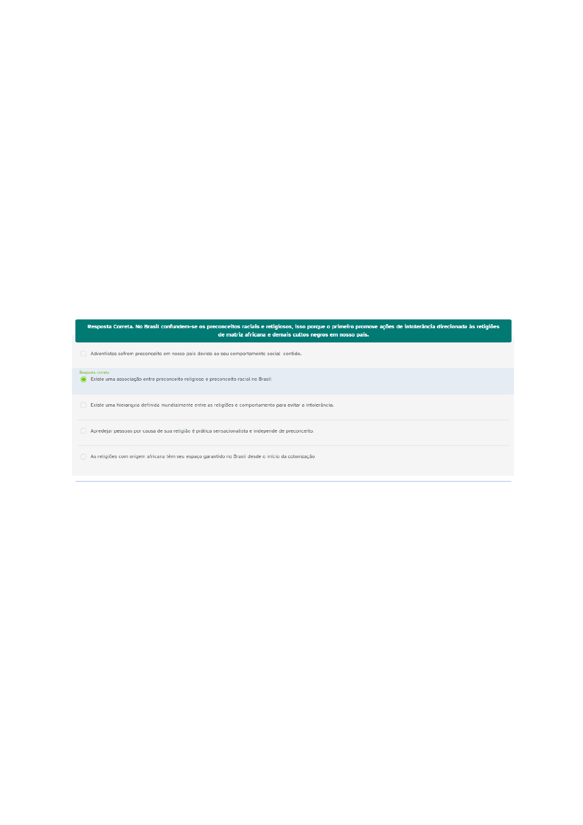 Atualmente, podemos afirmar que o Brasil não é o mais preconceituoso em termos religiosos, mas seria de ingenuidade e cegueira gigantes se afirmássemos que esse mal não existe mais no nosso país. Infelizmente, ainda vemos relatos de crianças sendo apedrejadas por serem do candomblé e de ateus sendo responsabilizados pela autoria de crimes bárbaros na TV sensacionalista. Não só isso. Também vemos casos de ridicularização quanto ao comportamento dos adventistas, por guardarem o sábado, ou dos evangélicos, pelo modo contido de se comportar… E quanto aos muçulmanos? Quantas vezes eles foram obrigados a escutar que eram terroristas no nosso país? Enfim, são diversos exemplos que poderíamos dar, mas esse texto jamais chegaria ao seu fim. [...] Como é o preconceito religioso em outros países? BRISIGHELLO, Priscila. Preconceito Religioso: Como evitar e como é nos outros países. Freesider, 2017. Disponível em: . Acesso em: 28 de jun. de 2019. Considere o texto, seus conhecimentos e assinale a alternativa correta: https://freesider.com.br/liberdade/preconceito-religioso-como-evitar-e-como-e-nos-outros-paises/ https://freesider.com.br/liberdade/preconceito-religioso-como-evitar-e-como-e-nos-outros-paises/