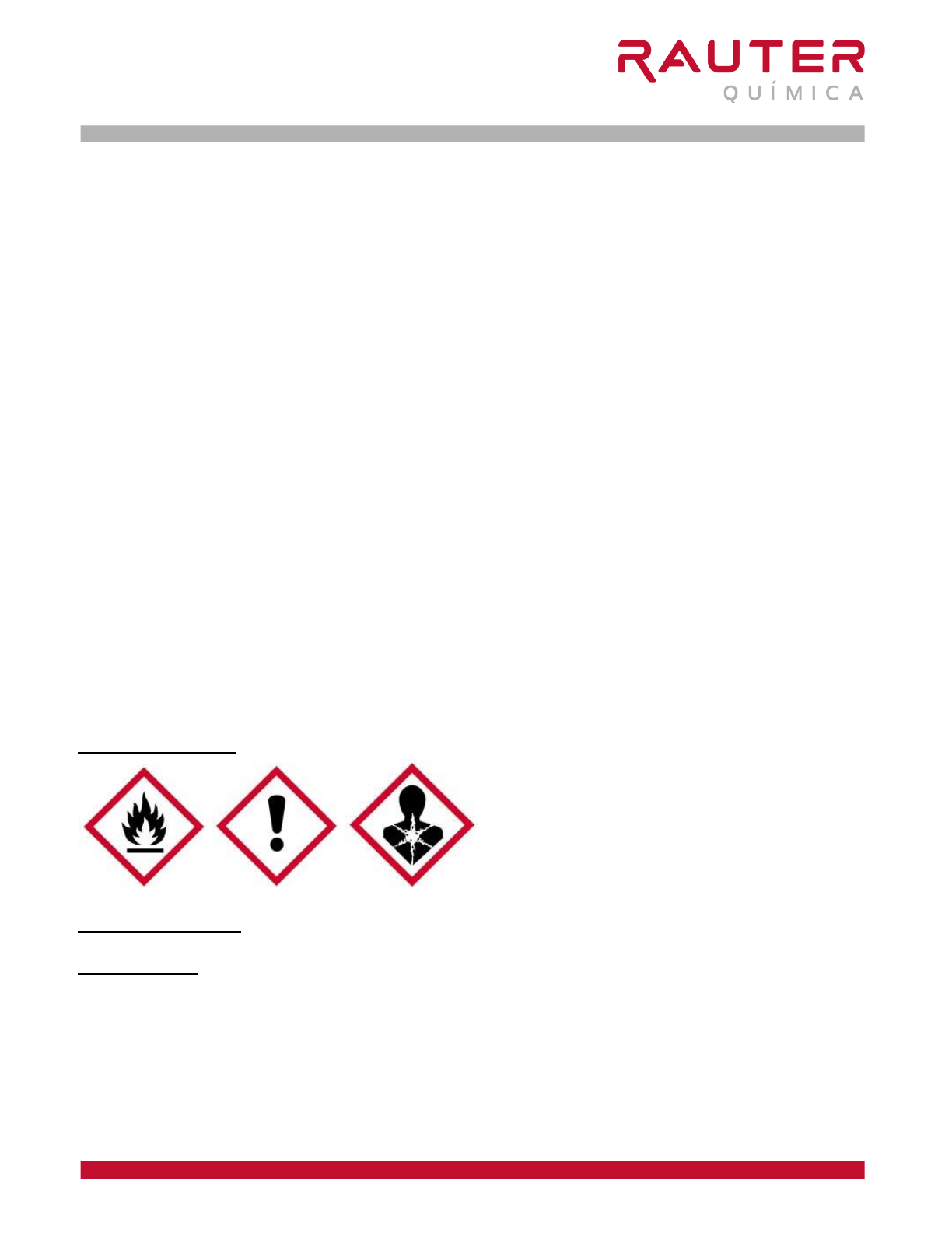 FISPQ 214 THINNER SUL REV 01 – 11/2019 1. IDENTIFICAÇÃO DO PRODUTO E DA EMPRESA Nome do Produto: THINNER SUL Principais usos recomendados para a substância ou mistura: Utilizado na diluição de tintas epóxi e limpeza. Empresa: Rauter Química Ltda. Endereço: Rua Paul Zivi, 1136 – Distrito Industrial – Gravataí – RS. Fone: (0xx51) 3393-1566 Fax: (0xx51) 3393-1555 E-mail: rauter@rauter.com.br Contato de emergência: GEO EMERGÊNCIA AMBIENTAL – Fone: (51) 3011-9000. 2. IDENTIFICAÇÃO DE PERIGOS Classificação da substância ou mistura: Líquidos inflamáveis: Categoria 2. Toxicidade aguda – Oral: Categoria 5 Toxicidade aguda – Dérmica: Categoria 4 Toxicidade aguda – Inalação: Categoria 4 Corrosão/irritação à pele: Categoria 2. Lesões oculares graves/irritação ocular: Categoria 2A. Toxicidade à reprodução: Categoria 2. Toxicidade sistêmica para certos órgãos-alvo – Exposição única: Categoria 3. Toxicidade sistêmica para certos órgãos-alvo – Exposição repetida: Categoria 2. Perigo por aspiração: Categoria 1. Perigoso ao ambiente aquático – Agudo: Categoria 2. Elementos apropriados da rotulagem Pictogramas de perigo: Palavra de advertência: PERIGO Frases de perigo: H225 – Líquidos e vapores altamente inflamáveis. H303 – Pode ser nocivo se ingerido. H304 – Pode ser fatal se ingerido e penetrar nas vias respiratórias. H312 – Nocivo em contato com a pele. H315 – Provoca irritação à pele. H319 – Provoca irritação ocular grave. H332 – Nocivo se inalado. H335 – Pode provocar irritação das vias respiratórias. Rua Paul Zivi, 1136 – Distrito industrial – Caixa Postal 141 – Cep: 94010-970 – Gravataí/RS 1/11 FISPQ 214 THINNER SUL REV 01 – 11/2019 H336 – Pode provocar sonolência ou vertigem. H361 – Suspeita-se que prejudique a fertilidade ou o feto. H373 – Pode provocar danos aos órgãos por exposição repetida ou prolongada. H401 – Tóxico para os organismos aquáticos. Frases de precaução: Prevenção: P201 – Obtenha instruções específicas antes da utilização. P202 – Não manuseie o produto antes de ter lido e compreendido todas as precauções de segurança. P210 – Mantenha afastado do calor, faísca, chama aberta e superfícies quentes – Não fume! P233 – Mantenha o recipiente hermeticamente fechado. P240 – Aterre o vaso contentor e o receptor do produto durante transferências. P241 – Utilize equipamento elétrico, de ventilação e de iluminação à prova de explosão. P242 – Utilize apenas ferramentas antifaiscantes. P243 – Evite o acúmulo de cargas estáticas. P260 – Não inale os fumos, gases, névoas, vapores e aerossóis. P264 – Lave cuidadosamente após o manuseio. P270 – Não coma, beba ou fume durante a utilização deste produto. P271 – Utilize apenas ao ar livre ou em locais bem ventilados. P273 – Evite a liberação para o meio ambiente. P280 – Use luvas de proteção, roupa de proteção, proteção ocular e proteção facial. Resposta à Emergência: P301 + P310 – EM CASO DE INGESTÃO: Contate imediatamente um CENTRO DE INFORMAÇÃO TOXICOLÓGICA ou um médico. P302 + P352 – EM CASO DE CONTATO COM A PELE: Lave com água e sabão em abundância. P303 + P361 + P353 – EM CASO DE CONTATO COM A PELE (ou com o cabelo) Retire imediatamente toda a roupa contaminada. Enxague a pele com água / tome uma ducha. P304 + P340 – EM CASO DE INALAÇÃO: Remova a pessoa para local ventilado e a mantenha em repouso numa posição que não dificulte a respiração. P305 + P351 + P338 – EM CASO DE CONTATO COM OS OLHOS: Enxágue cuidadosamente com água durante vários minutos. No caso de uso de lentes de contato, remova-as, se for fácil. Continue enxaguando. P308 + P313 – EM CASO de exposição ou suspeita de exposição: Consulte um médico. P312 – Em caso de indisposição: Contate um CENTRO DE INFORMAÇÃO TOXICOLOGICA ou um médico. P331 – NÃO provoque vômito. P332 + P313 – Em caso de irritação cutânea: Consulte um médico. P337 + P313 – Caso irritação ocular persista: Consulte um médico. P362 + P364 – Retire toda a roupa contaminada e lave-a antes de usá-la novamente. P370 + P378 – Em caso de incêndio: Para a extinção utilize pó químico seco, espuma para hidrocarbonetos, dióxido de carbono (CO2) e neblina de água. Armazenamento: P403 + P233 – Armazene em local bem ventilado. Mantenho o recipiente hermeticamente fechado. P403 + P235 – Armazene em local bem ventilado. Mantenha em local fresco. P405 – Armazene em local fechado à chave. Disposição: Rua Paul Zivi, 1136 – Distrito industrial – Caixa Postal 141 – Cep: 94010-970 – Gravataí/RS 2/11 FISPQ 214 THINNER SUL REV 01 – 11/2019 P501 – Descarte o produto em local devidamente regulamentado e licenciado de acordo com as legislações Municipais, Estaduais e Federais. 3. COMPOSIÇÃO E INFORMAÇÕES SOBRE OS INGREDIENTES Esta substância é uma MISTURA. Nome químico comum ou genérico: THINNER SUL INGREDIENTES N° CAS CONCENTRAÇÃO (%) ACETONA 67-64-1 47 – 50 SOLVENTE XILENO 1330-20-7 37 – 40 SOLVENTE TOLUENO 108-88-3 7 – 10 4. MEDIDAS DE PRIMEIROS-SOCORROS Descrição das medidas de primeiros socorros: Medidas de primeiros-socorros após inalação: Remova a vítima para local ventilado e a mantenha em repouso numa posição que não dificulte a respiração. Caso sinta indisposição, contate um CENTRO DE INFORMAÇÃO TOXICOLÓGICA ou um médico. Leve esta FISPQ. Medidas de primeiros-socorros após contato com a pele: Lave a pele exposta com quantidade suficiente de água e sabão para remoção do material. Em caso de irritação cutânea: Consulte um médico. Leve esta FISPQ. Medidas de primeiros-socorros após contato com os olhos: Enxágue cuidadosamente com água durante vários minutos. No caso de uso de lentes de contato, remova-as, se for fácil. Continue enxaguando. Caso a irritação ocular persista: consulte um médico. Leve esta