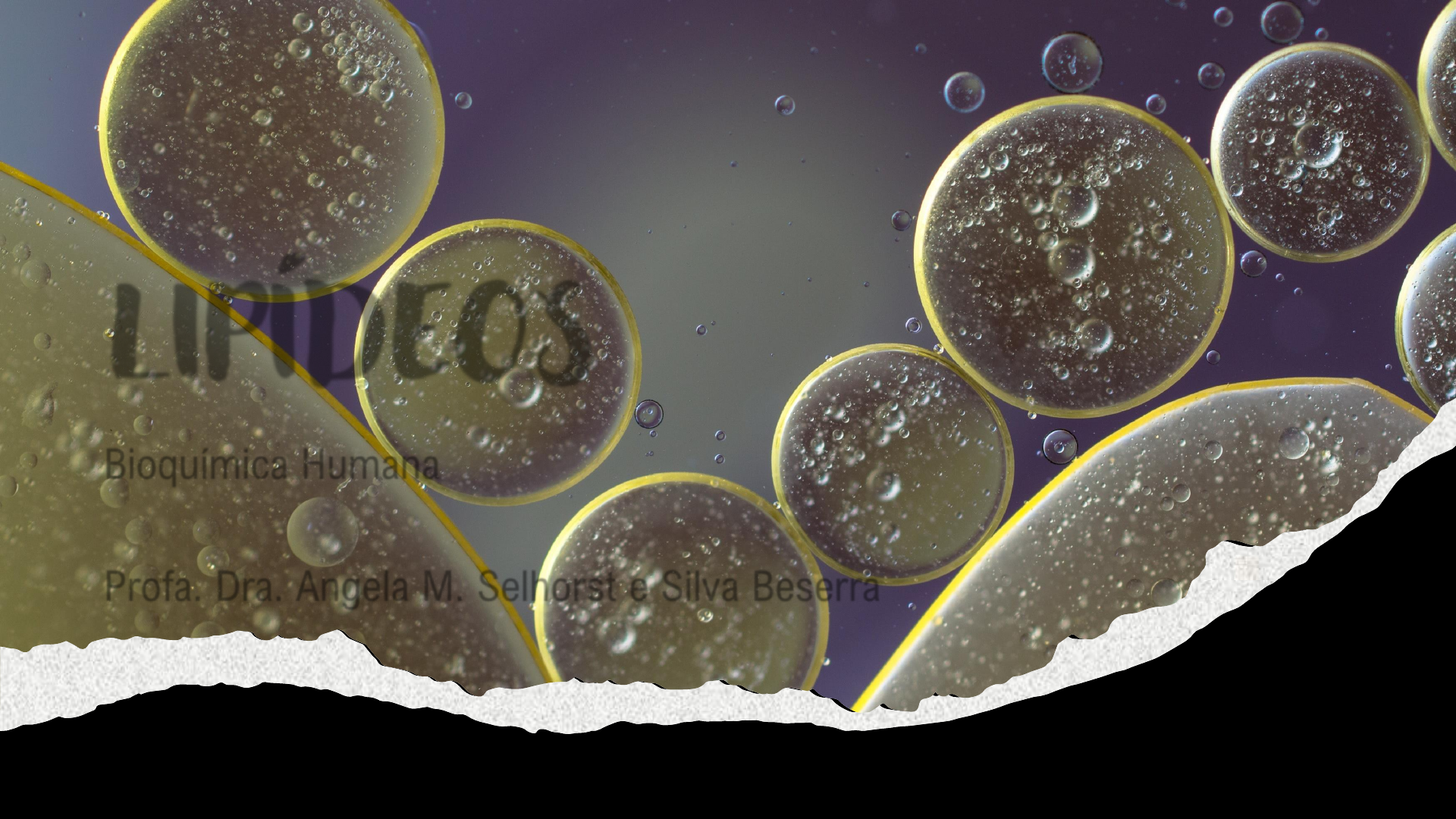LIPÍDEOS Bioquímica Humana Profa. Dra. Angela M. Selhorst e Silva Beserra Lipídeos Definição • São moléculas orgânicas ANFIFÍLICAS ou HIDROFÓBICAS com grande variabilidade de grupos funcionais e de conformações químicas • Incluem esteróis, ácidos graxos, mono-di e triglicerídeos e fosfolipídeos. • Características em comum: (1) relativamente insolúveis em água e (2) solúveis em solventes apolares, como o éter e o clorofórmio. Esteróis: hormônios e sinalização intracelular AG e triglicerídeos: estoque de energia (armazenamento); isolante térmico Fosfolipídeos: componentes estruturais de membranas biológicas Colesterol C ab e ça h id ro fí lic a C au d a h id ro fó b ic a Fosfato Glicerol Ác. Graxo saturado Ác. Graxo insaturado Importância Constituintes importantes da dieta (AG essenciais, AG 3, vitaminas lipossolúveis etc); Fonte de energia Formação de membranas celulares Isolantes térmicos (tecido adiposo); Lipoproteínas (transporte de lipídeos); Patologias: diabetes, obesidade, aterosclerose. Lipídeos Classificação • Lipídeos simples • Óleos e gorduras: ésteres de AG + glicerol • Ceras: ésteres de AG + álcoóis monoídricos de alto peso molecular • Lipídeos complexos • Fosfolipídeos: AG + álcool + resíduo de ácido fosfórico • Glicolipídeos: AG + esfingosina + carboidrato. • Outros lipídeos complexos: como p.ex. as lipoproteínas *AG = ácidos graxos Lipídeos Classificação • Lipídeos precursores e derivados • incluem AG, glicerol, esteroides, outros alcoóis, aldeídos graxos, corpos cetônicos, hidrocarbonetos, vitaminas lipossolúveis e hormônios. • Lipídeos saponificáveis e não-saponificáveis • Saponificáveis - quando aquecidos em presença de base forte (NaOH ou KOH) sofrem hidrólise produzindo sais de sódio ou potássio de ácidos graxos (sabões). Ácidos graxos (AG) • Grande parte dos lipídios de interesse na saúde possuem ácidos graxos (AG) em sua estrutura química. • AG são ácidos carboxílicos com elevado número de carbonos (de 4 até mais de 20 carbonos) • AG conferem aos lipídios suas principais propriedades físico- químicas. Classificação dos AG Quanto à necessidade na dieta: • AG essenciais: constituídos por AG não sintetizados pelo organismo humano (devem ser adquiridos através da alimentação) • Precursores das famílias omega-3 e omega-6, o ácido α-linolênico e o ácido linoleico. • AG não-essenciais: AG sintetizados endogenamente (pelo organismo humano). • Ex.: ácido graxo araquidônico Classificação dos AG Quanto ao número de carbonos na cadeia lateral • AG de Cadeia Curta: 2 a 4 átomos de carbono; • AG de Cadeia Média: 6 a 10 átomos de carbono; • AG de Cadeia Longa: cadeia carbônica com mais de 12 carbonos – MAIS ABUNDANTES Classificação dos AG Quanto à saturação na cadeia lateral: • Saturados: entre seus átomos de carbono há somente ligações simples • Insaturados: entre seus átomos de carbono surgem duplas ligações (conferem mudanças físico-químicas no AG como ponto de fusão e ebulição) • Monoinsaturados: uma dupla ligação • Poliinsaturados: duas ou mais duplas ligações AG saturados AG saturados • Estão presentes em maior quantidade em lipídios de origem animal • Ex.: banha de porco • Possuem ponto de fusão mais elevado que os AG insaturados, por isso tendem a ser SÓLIDOS em temperatura ambiente (20ºC) → GORDURAS AG insaturados • Estão presentes em maior quantidade em lipídios de origem vegetal • Ex.: óleo de soja • Possuem ponto de fusão mais baixo que os AG saturados, por isso tendem a ser LÍQUIDOS em temperatura ambiente (20ºC) → ÓLEOS. AG insaturados Monoinsaturado Poliinsaturado Poliinsaturado AG polinsaturados EICOSANOIDES O araquidonato e alguns outros AG C20 poliinsaturados dão origem aos eicosanoides - compostos fisiológica e farmacologicamente ativos, conhecidos como prostaglandinas (PG), tromboxanos (TX), leucotrienos (LT) e lipoxinas (LX) AG insaturados Classificação quanto à conformação em torno da insaturação: • cis: as cadeias carbonadas se dispõem em um mesmo lado em torno da insaturação. • trans: as cadeias carbonadas estão dispostas em lados opostos em relação a insaturação. Conformação TRANS Ocorre após AQUECIMENTO Aumenta o PF e Ebulição em relação à configuração cis, com tendência a serem sólidos à temperatura ambiente; sabe-se que seu consumo está associado ao risco aumentado de doenças cardiovasculares e diabetes. Conformação CIS Ocorrência NATURAL AG insaturados Classificação quanto à posição das insaturações • ω-3: a primeira dupla ligação no terceiro carbono a partir do grupo metila (CH3); • ω-6: a primeira dupla ligação no sexto carbono a partir do grupo metila (CH3); • ω-9: a primeira dupla ligação no nono carbono a partir do grupo metila (CH3); *ω = ômega AG insaturados Mono-Di e Triacilgliceróis • São ésteres de AG e gliceróis • Triacilgliceróis: as três hidroxilas do glicerol estão esterificadas com o AG • São as principais formas de armazenamento dos AGs • Lipídeos de depósito no tecido adiposo e músculo • Mono e Diacilgliceróis: aparecem após digestão e metabolismo dos triacilgliceróis. • Todos são apolares (hidrofóbicos) Glicerofosfolipídios = fosfolipídios • São lipídios complexos obtidos pela esterificação do glicerol com AG + molécula de ácido fosfórico com uma base nitrogenada • Por isso, são anfifílicos • Porção HIDROFÍLICA (polar): base nitrogenada • Porção LIPOFÍLICA (apolar): ácidos graxos Glicerofosfolipídios = fosfolipídios • Essa característica peculiar (anfifílica) confere aos fosfolipídios um poder tensoativo, estabilizando misturas de água/óleo → EMULSÃO • São SAPONIFICÁVEIS • Formação de membranas celulares e componentes do SNC e do sangue. Colesterol (esteróide) • Lipídeo anf