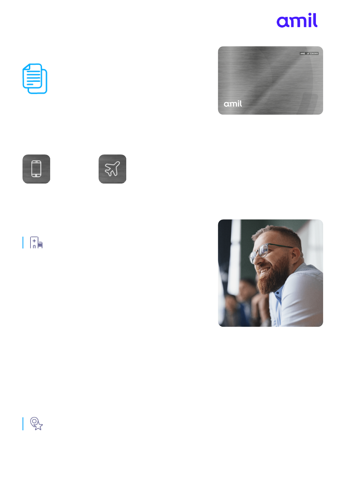 Sempre utilize a versão mais atualizada deste material. Data da impressão: 19/02/2025 Página 1 de 2 Amil Prata Conheça os produtos Amil Prata Abrangência de atendimento: Cobertura Nacional Atendimento Pré- Hospitalar e Orientação Médica por Telefone Seguro e Assistência de Viagem Internacional Disponível para Contratação SP: Hospital Samaritano Paulista, Hospital Paulistano, Hospital Metropolitano, Hospital Vitória e Leforte – Morumbi. RJ: Casa de Saúde Santa Lúcia*, Hospital Pasteur, Hospital Pan-Americano, Hospital de Clinicas Mário Lioni, Hospital Clinicas de Jacarepaguá, Hospital São Vicente de Paulo, Centro Pediátrico da Lagoa e Hospital Icaraí. DF: Hospital Alvorada Brasília e Hospital Daher. MG: Hospital Mater Dei Betim. PR: Hospital Marcelino Champagnat. SC: SOS Cardio. RS: Hospital Mãe de Deus. BA: Hospital Santa Izabel, Hospital Santo Amaro, Hospital da Bahia. CE: Hospital Monte Klinikum, Hospital Cura Dars e Hospital Gênesis. PE: Hospital Santa Joana Recife, Hospital Jayme Da Fonte. *apenas QP *apenas QP Hospitais de destaque no plano: Coberturas Assistenciais: Sempre utilize a versão mais atualizada deste material. Data da impressão: 19/02/2025 Página 2 de 2 Transplantes (extra rol) Amil Espaço Saúde Programa Primeiros Cuidados Telemedicina Amil Diferenciais: