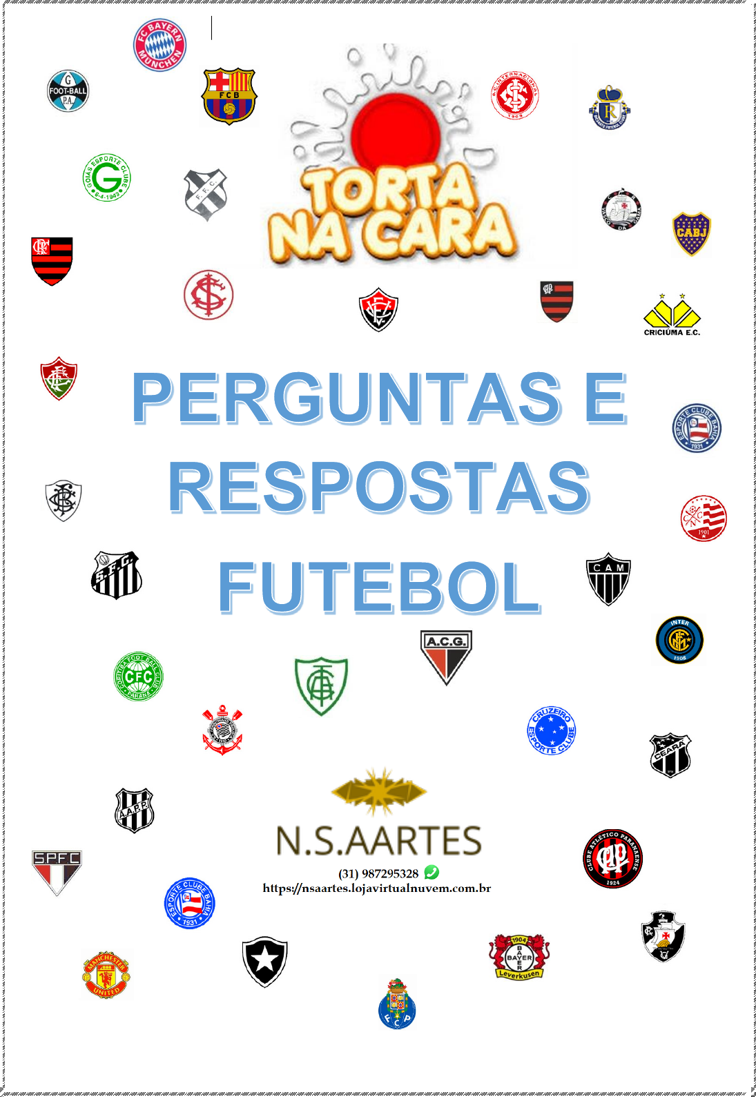 1.SCCP É A SIGLA DE QUAL TIME PAULISTA? CORINTHIANS 2.EM QUE ANO FOI FUNDADO O CORINTHIANS? 1910 3.QUAL O CAMPEÃO DA COPA DO BRASIL DE 1995 ? CORINTHIANS (SP) 4.QUE TIME TEVE A MELHOR MÉDIA DE PÚBLICO NO BRASILEIRÃO 2005? CORINTHIANS 5.QUAL FOI O PLACAR DO 1º CLÁSSICO REALIZADO ENTRE CORINTHIANS E SANTOS, EM 1913? CORINTHIANS 3 X 6 SANTOS 6.QUAL O NÚMERO DA CAMISA QUE RONALDINHO GAÚCHO USOU NA COPA DO MUNDO DE 2002? 11 7.QUAL DESSAS COMPETIÇÕES É A MAIS VELHA ? COPA AMÉRICA 8.QUANTAS BOLAS DE PRATA, PELÉ GANHOU EM SUA CARREIRA? 1 9.EM QUE ANO NASCEU O JOGADOR ROBERTO CARLOS ? 1973 10.ONDE NASCEU O ATACANTE ARISTIZÁBAL? COLOMBIA 11.QUAL O MAIOR VENCEDOR DA RECOPA SUL AMERICANA? BOCA JUNIORS 12.QUAL O CAMPEÃO DA COPA DO BRASIL DE 1994 ? GRÊMIO (RS) 13.QUANTOS GOLS O EX-JOGADOR PUSKAS MARCOU? 766 14.QUE JOGADOR ERA CONHECIDO COMO O CANHOTINHA DE OURO? GERSON 15.QUAL FOI O PÚBLICO DA PARTIDA AMÉRICA-MG 3 X 1 BOTAFOGO PELO CAMPEONATO BRASILEIRO DE 1972? 4.114 16.QUAL O MAIOR VENCEDOR DO CAMPEONATO MINEIRO? ATLÉTICO MINEIRO 17.QUEM FOI O ARTILHEIRO DO CAMPEONATO ITALIANO 2004/2005? LUCARELLI 18.QUEM VENCEU O CAMPEONATO URUGUAIO EM 1990? BELLA VISTA 19.QUAL TIME POSSUI MAIS TÍTULOS DE LIBERTADORES? INDEPENDIENTE 20.QUAL O NÚMERO DA CAMISA QUE O JOGADOR VAMPETA USOU NA COPA DO MUNDO DE 2002? 18 21.QUAL DESTES JOGADORES NÃO ATUOU PELO SANTOS NA FINAL DA TAÇA BRASIL DE 1961? CLODOALDO 22.QUAL O MAIOR ARTILHEIRO DO SÃO PAULO NO BRASILEIRÃO ATÉ 2006? SERGINHO CHULAPA 23.QUAL O MAIOR VENCEDOR DO CAMPEONATO ACREANO? RIO BRANCO 24.TORCIDA OS FANÁTICOS É A PRINCIPAL TORCIDA ORGANIZADA DE QUAL TIME? ATLÉTICO PR 25.QUEM FOI O VENCEDOR DO CAMPEONATO PERUANO DE 1975? ALIANZA LIMA 26.QUAL DESTES CLUBES CATARINENSES ESTÁ EXTINTO? METROPOL 27.QUAL DESTES TIMES NUNCA VENCEU UMA COPA LIBERTADORES DA AMÉRICA? CORINTHIANS (BRA) 28.QUEM FOI O CAMPEÃO MUNDIAL INTERCLUBES DE 1982? PEÑAROL (URU) 29.QUEM FOI O MAIOR ARTILHEIRO DE UM ÚNICO CAMPEONATO GAÚCHO? BALTAZAR (GRÊMIO) 30.QUAL CLUBE POSSUI O MAIOR ESTÁDIO DO SUL DO PAIS? INTERNACIONAL 31.QUAL DESSES TIMES FOI REBAIXADO NO CAMPEONATO MINEIRO DE 2007? AMÉRICA 32.EM QUE TIME SÁVIO SE PROFISSIONALIZOU? FLAMENGO 33.QUAL FOI O RECORDE DE PÚBLICO NO ESTADIO OLIMPICO MONUMENTAL? 98.421 34.A FUSÃO DE QUAIS CLUBES RESULTOU NO PARANÁ? PINHEIROS E COLORADO 35.TEU NOME ECOA NA SERRA, FAZ PARTE DA NOSSA HISTÓRIA, TORCIDA UNIDA É RAÇA TEU LEMA É SEMPRE VITÓRIA., É PARTE DO HINO DE QUAL CLUBE ? VERANÓPOLIS 36.QUANTAS PESSOAS ASSISTIRAM A PARTIDA CHILE X MÉXICO, EM 1930? 500 37.QUAL FOI O CAMPEÃO DA COPA DO BRASIL EM 1990? FLAMENGO 38.QUAL FOI A SELEÇÃO MENOS FALTOSA NA COPA DO MUNDO DE 1990? INGLATERRA 39.MANUEL DE BRITO FILHO, MAIS CONHECIDO COMO: OBINA 40.QUAL FOI A SELEÇÃO MENOS FALTOSA NO ANO DE 2002 NA COPA DO MUNDO ? BÉLGICA 41.QUAL CLUBE FOI CAMPEÃO CATARINENSE DA SÉRIE A-2 EM 2004? LAGES 42.PARA QUE TIME TORCE HUMBERTO GESSINGER? GRÊMIO 43.QUAL O MAIOR VENCEDOR DO CAMPEONATO INGLÊS? LIVERPOOL 44.ALBINO TURBAY É O ESTADIO DE QUAL CLUBE? CIANORTE 45.QUAL FOI A SELEÇÃO MENOS FALTOSA NA COPA DO MUNDO DE 2002? BÉLGICA 46.QUEM FOI O PRIMEIRO CAMPEAO DA COPA DAS NAÇOES AFRICANAS? EGITO 47.QUE SELEÇAO ERA LIDER DO RANKING DA FIFA ATÉ 29/06/2008? ITALIA 48.QUANTO O MANCHESTER PAGOU AO LEEDS UNITED (ING), EM 2002 PELO JOGADOR RIO FERDINAND? 42,8 MILHÕES DE EUROS 49.QUEM TIROU O BRASIL DA COPA DE 1990? ARGENTINA 50.QUEM FOI O CAMPEÃO DA COPA DA ANDALUZIA 1922/1923? SEVILLA 51.QUAL A CAPACIDADE DO ESTÁDIO CENTENÁRIO? 76.609 52.QUAL A MAIOR GOLEADA NO CLÁSSICO ENTRE PALMEIRAS X CORINTHIANS? PALMEIRAS 8X0 CORINTHIANS 53.EM QUE ANO NASCEU O JOGADOR PETKOVIC ? 1972 54.ONDE JOGOU CLAUDIO CANIGGIA NA TEMPORADA 1992-93? ROMA 55.QUEM GANHOU O PRÊMIO DA FIFA DE MELHOR JOGADORA DO MUNDO EM 2006? MARTA 56.QUEM FOI O CRIADOR DA CONMEBOL? HÉCTOR RIVADAVIA GÓMEZ 57.QUEM FOI O ARTILHEIRO DA COPA DO MUNDO DE 1998? DAVOR SUKER 58.QUAL EX-PRSIDENTE DO S.C. INTERNACIONAL DA NOME A UMA RUA DE PORTO ALEGRE? PAULO ROGERIO AMORETTY 59.QUAL O CAMPEÃO DA COPA DO BRASIL DE 1992 ? INTERNACIONAL (RS) 60.QUAL O MASCOTE DO GRÊMIO BAGÉ(RS)? ABELHA 61.O ESTÁDIO ALFREDO SCHÜRING É O: PARQUE SÃO JORGE 62.DE TODOS OS CAMPEONATOS QUE EURICO LARA DEFENDEU O GRÊMIO, QUANTOS CONQUISTOU? 11 63.EM QUE ANO FOI FUNDADO A UEFA ? 1954 64.POR QUAL CLUBE ARGENTINO ATUOU MAURICIO MOLINA? SAN LORENZO 65.TUAS CORES NOS ENCANTAM,EM CADA LANCE A TORCIDA SE LEVANTA,NUM MOVIMENTO DE BANDEIRAS ,EM CORO TE SAÚDA, VIBRA E CANTA, QUAL TIME TEM ESSA PARTE NO HINO ??? SANTO ANDRÉ 66.COMO SE CHAMA O ESTÁDIO DO ITUANO? NOVELLI JUNIOR 67.QUANTOS GOLS PELÉ MARCOU NA SUA CARREIRA? 1284 68.QUANTAS VEZES O CRUZ AZUL VENCEU O CAMPEONATO MEXICANO? 08 VEZES 69.QUAL O APELIDO DO JOGADOR MAURICIO MOLINA? MAO 70.QUEM FOI O ARTILHEIRO DO CAMPEONATO HOLANDES 1987/1988? WIM KIEFT (PSV) 71.EM QUE PERIODO EURICO LARA DEFENDEU O GRÊMIO? 1920 - 1935 72.QUAL O CAMPEÃO ARGENTINO DE 1975? RIVER PLATE 73.MANCHA ALVI VERDE É A PRINCIPAL TORCIDA DE QUAL TIME? PALMEIRAS 74.EM QUANTOS PAISES SE USA A EXPRESSÃO GOAL? 28 75.DE QUAL ESTADO É O ESTÁDIO VIDAL RAMOS JÚNIOR? SANTA CATARINA 76.QUAL O CAMPEÃO ARGENTINO DE 1962? BOCA JUNIORS 77.QUAL A MAIOR GOLEADA APLICADA PELO ATLETICO MG, EM TODOS OS CAMPEONATOS BRASILEIRO? ATLETICO MG 7 X 1 DESPORTIVA 78.CONTRA QUEM ROGÉRIO CENI MARCOU SEU PRIMEIRO GOL? UNIÃO SÃO JOÃO 79.QUAL FOI O ARTILHEIRO DA COPA DO BRASIL DE 1989? GÉRSON (ATLÉTICO-MG) 80.QUANDO FOI CRIADA A LIBERTADORES DA AMERICA? 1960 81.QUEM FOI O PRIMEIRO ÁRBITRO BRASILEIRO A APITAR UMA FINAL DE COPA DO MUNDO? ARNALDO CÉSAR COELHO 82.QUAL O ARTILHEIRO DA COPA DO BRASIL DE 2001 ? WASHINGTON (PONTE PRETA) 83.QUAL O ESTÁDIO COM MAIOR CAPACIDADE NO ESTADO DE PERNAMBUCO? JOSÉ DO REGO MACIEL 84.QUANTOS GOLS ZICO MARCOU PELO FLAMENGO? 568 85.QUAL O ARTILHEIRO DO CAMPEONATO ALEMÃO 1987/1988? JÜRGEN KLINSMANN (STUTTGART) 86.TORCIDA GAVIÕES ALVINEGROS É A PRINCIPAL TO