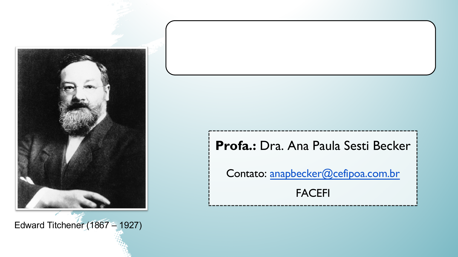 O Estruturalismo Profa.: Dra. Ana Paula Sesti Becker Contato: anapbecker@cefipoa.com.br FACEFI Edward Titchener (1867 – 1927) mailto:anapbecker@cefipoa.com.br Edward Titchener (1867 – 1927) o Psicólogo estruturalista britânico; fundador da Escola Estruturalista; discípulo de Wundt. o Ganhou prêmios acadêmicos como aluno brilhante; o Após ter estudado com o mestre Wundt na Alemanha voltou para o Reino Unido para divulgar a nova psicologia, mas seus estudos não foram aceitos. Então partiu para os EUA, onde foi bastante reconhecido, tendo formado seu próprio laboratório de pesquisa na Cornell University. o Traduziu o livro Princípios da psicologia Fisiológica de Wundt para o alemão e inglês. o Publicou vários livros, dentre vários, um também em quatro volumes: Psicologia Experimental — que é um manual de laboratório conhecido como um dos manuais que incentivaram o trabalho de laboratórios da psicologia nos EUA e influenciaram os psicólogos experimentais. o Faleceu aos 60 anos devido a um tumor cerebral Titchener e seus estudos: Laboratório da Cornell University o Estudos de tubo de borracha + água quente e gelada: os alunos eram os próprios sujeitos de pesquisa; o Necessidades fisiológicas: quando urinassem ou evacuassem; o Relações sexuais (medidor respostas fisiológicas) (Cornell University/EUA – em 1900) (Anos 2000) Foco de estudo: Introspecção o A experiência consciente para Titchener é o único enfoque adequado para a pesquisa psicológica o Método de introspecção: a análise difere um pouco da de Wundt. Foco para Wundt: ênfase quantitativa e para a compreensão do todo. Já para Titchner o foco estaria na experiência subjetiva da pessoa, além de examinar rigorosamente as partes. o Exemplos da introspecção para Titchner: “como o estímulo afeta a pessoa; quais pensamentos vêm à mente; quais ideias ou pensamento, etc.” o Definiu os três estados elementares da consciência: sensação (reação fisiológica); imagem (dimensão cognitiva) e os estados afetivos (sentimentos). Introspecção o Conceito desenvolvido Erro de Estímulo Por exemplo, o observador que vê uma maçã e a descreve apenas como a fruta maçã invés de descrever elementos, como a cor, o brilho e a forma que está observando comete o erro de estímulo. O objeto de observação não deve ser descrito na linguagem cotidiana, mas em termos do conteúdo consciente elementar da experiência. Críticas ao Estruturalismo o Críticas à Escola Estruturalista: o método mais subjetivo de análise “não era confiável e cientificamente comprovado”. o Método de Wundt foi mais aceito pela quantificação dos fenômenos observados; o Escola de Titchner acabou falecendo com a morte dele mesmo. o O filósofo Augusto Comte criticou radicalmente o método de instrospecção pela falta de “neutralidade” entre o fenômeno e o próprio observador se “misturarem”. o Escola da Gestalt se opõe radicalmente à Escola Estruturalista, pois não seria possível essa divisão concreta entre sensação, sentimento e imagem. Contribuições do Estruturalismo o Método da auto-observação: a consciência é mais bem observada pela pessoa que a vivencia; o Os relatórios clínicos de pacientes; respostas dos testes de personalidade e análise do comportamento são de natureza introspectiva; o Relatos verbais baseados na experiência pessoal são formas legítimas de coleta de dados (entrevista); o Incitou a oposição de vários movimentos da Psicologia, o que fomentou a evolução da ciência psicológica. Muito Obrigada! Profa.: Dra. Ana Paula Sesti Becker Contato: anapbecker@cefipoa.com.br FACEFI mailto:anapbecker@cefipoa.com.br