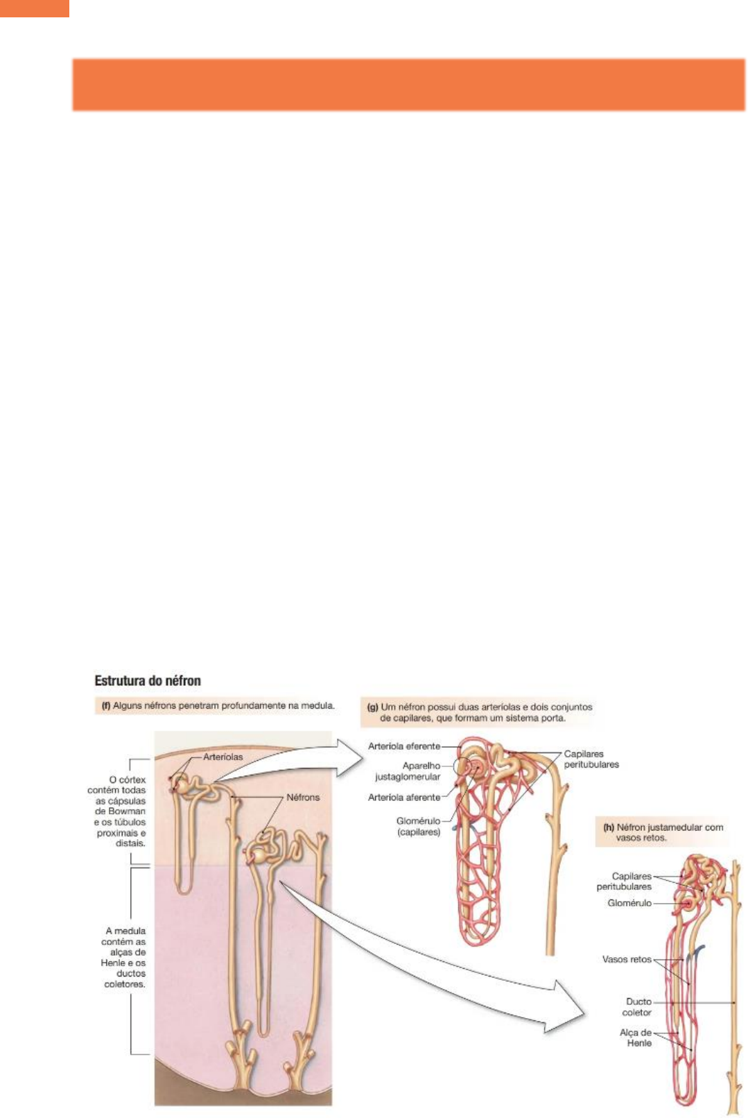1 UNIDEP- Camila Paese 2º Período 23/05/2024 1. Compreender a formação da urina; Os rins têm diversas funções. Como órgãos excretores, asseguram a eliminação adequada de substâncias nocivas ou em excesso na urina. Como órgãos reguladores, mantêm o volume e a composição constantes dos líquidos corporais ao alterar a excreção de solutos e água. Por fim, como órgãos endócrinos, sintetizam e secretam hormônios: renina, eritropoetina, 1,25-di- hidroxicolecalciferol e prostaglandinas. A função mais importante dos rins é a regulação homeostática do conteúdo de água e íons no sangue, também chamada de balanço do sal e da água, ou equilíbrio hidroeletrolítico. Os rins mantêm concentrações normais de íons e água no sangue através do balanço da ingestão dessas substâncias com a sua excreção na urina, obedecendo ao princípio do balanço de massas. Os rins filtram, reabsorvem e secretam: Três processos básicos ocorrem nos néfrons: filtração, reabsorção e secreção. Filtração é o movimento de líquido do sangue para o lúmen do néfron. A filtração ocorre apenas no corpúsculo renal, onde as paredes dos capilares glomerulares e da cápsula de Bowman são modificadas para permitir o fluxo do líquido. Uma vez que o fluido filtrado, chamado de filtrado, chega ao lúmen do néfron, ele se torna parte do meio externo ao corpo, da mesma forma que as substâncias no lúmen intestinal fazem parte do meio externo. Devido a essa razão, tudo que é filtrado nos néfrons é destinado à excreção na urina, a não ser que seja reabsorvido para o corpo. APG 26 – Fisiologia do Sistema Urinário 2 UNIDEP- Camila Paese 2º Período 23/05/2024 Após o filtrado deixar a cápsula de Bowman, ele é modificado pelos processos de reabsorção e secreção. A reabsorção é um processo de transporte de substâncias presentes no filtrado, do lúmen tubular de volta para o sangue através dos capilares peritubulares. A secreção remove seletivamente moléculas do sangue e as adiciona ao filtrado no lúmen tubular. Embora a secreção e a filtração glomerular movam substâncias do sangue para dentro do túbulo, a secreção é um processo mais seletivo que, em geral, usa proteínas de membrana para transportar as moléculas através do epitélio tubular. O néfron modifica o volume e a osmolaridade do líquido Os 180 litros de fluido que são filtrados para a cápsula de Bowman a cada dia são quase idênticos ao plasma em sua composição e quase isosmóticos. À medida que este filtrado flui pelo túbulo proximal, cerca de 70% do seu volume é reabsorvido, restando 54 L no lúmen tubular. A reabsorção ocorre quando as células do túbulo proximal transportam solutos para fora do lúmen, determinando a reabsorção de água por osmose. O filtrado que deixa o túbulo proximal tem a mesma osmolaridade do que o filtrado que entrou. Por essa razão, dizemos que a função primária do túbulo proximal é a reabsorção isosmótica de solutos e água. O filtrado que deixa o túbulo proximal passa para a alça de Henle, o local principal para a produção de urina diluída. À medida que o filtrado passa pela alça de Henle, proporcionalmente é reabsorvido mais soluto do que água, e o filtrado torna-se hiposmótico com relação ao plasma. A maior parte do volume originalmente filtrado na cápsula de Bowman já foi reabsorvida para os capilares. A partir da alça de Henle, o filtrado passa para o túbulo distal e para o ducto coletor. Nesses dois segmentos, ocorre uma regulação fina do balanço de sal e de água sob o controle de vários hormônios. A reabsorção e a secreção determinam a composição final do filtrado. O volume e a osmolaridade finais da urina dependem das necessidades do corpo de conservar ou excretar água e soluto. No néfron, os solutos secretados se movem do plasma para o lúmen tubular. Excreção refere-se à remoção de uma substância do corpo. 3 UNIDEP- Camila Paese 2º Período 23/05/2024 A quantidade de qualquer substância excretada na urina reflete o resultado do seu manejo durante a sua passagem através do néfron. A excreção urinária de uma substância depende da sua filtração, reabsorção e secreção. Filtração A filtração do plasma para dentro dos túbulos renais é o primeiro passo na formação da urina. Esse processo relativamente inespecífico gera um filtrado, cuja composição é igual à do plasma menos a maioria das proteínas plasmáticas. Sob condições normais, as células sanguíneas permanecem no capilar, de modo que o filtrado é composto apenas de água e de solutos dissolvidos. Contudo, a filtração de todo o plasma deixaria para trás uma massa de células sanguíneas e proteínas que não podem fluir para fora do glomérulo. Em vez disso, apenas cerca de um quinto do plasma que flui ao longo dos rins é filtrado para dentro dos néfrons. Os quatro-quintos restantes do plasma, juntamente com a maior parte das proteínas plasmáticas e das células sanguíneas, passa para os capilares peritubulares. A porcentagem do volume total do plasma que é filtrada para dentro do túbulo é denominada fração de filtração. O corpúsculo renal contém três barreiras de filtração A filtração ocorre no corpúsculo renal, que consiste na rede de capilares glomerulares envolta pela cápsula de Bowman. As substâncias que deixam o plasma precisam passar através de três barreiras de filtração antes de entrarem no lúmen tubular: o endotélio do capilar glomerular, uma lâmina basal (membrana basal) e o epitélio da cápsula de Bowman. Os detalhes de como funcionam essas barreiras de filtração estão ainda em estudo. A primeira barreira é o endotélio capilar. Os capilares glomerulares são capilares fenestrados com grandes poros, que permitem que a maioria dos componentes plasmáticos sejam filtrados através do endotélio. Os poros são pequenos o bastante, contudo, para impedir que as c