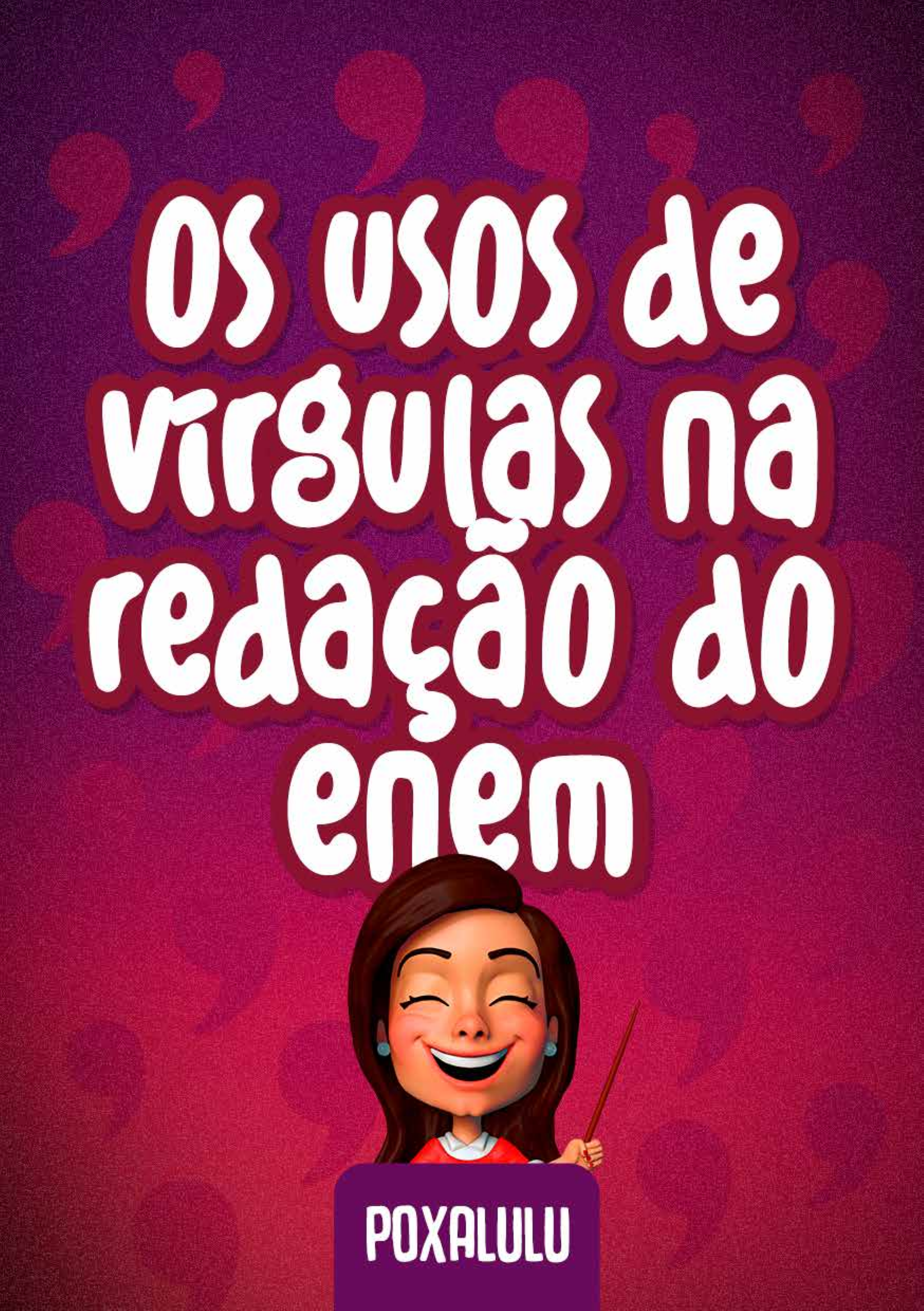 OS USOS DE VÍRGULAS NA REDAÇÃO DO ENEM Copyright 2021 Poxa Lulu Categoria: Educação Primeira Edição - 2021 Todos os direitos reservados. É proibida a reprodução total ou parcial sem a permissão escrita dos editores. Fala, poxinhas! Tudo bem com vocês? Reta final chegando, todos poxalunos concentrados para não deixar passar nadinha de importante, não é mesmo? Neste e-book, vamos falar sobre vírgulas, AS TÃO AMENDRONTADORAS! Como esse é um tópico de MUITA dúvida e, ao mesmo tempo, MUITA relevância para a redação Enem, não poderia deixar de fazer esse material especial para turbinar seus estudos. Poxaluno vai PREPARADO e, por isso, é essencial que você se atente a todas as dicas listadas neste material, elas foram selecionadas especificamente para a redação Enem. Vamos lá? 4 WWW.POXALULU.COM.BR 5 WWW.POXALULU.COM.BR O QUE É A VÍRGULA? Antes de começarmos a falar das dicas, é importante pontuar algumas coisas sobre esse assunto. Vírgula NÃO É ELEMENTO DE FALA, é elemento da ESCRITA. Por que começo por isso? Bem, porque, infelizmente, muita gente ainda acha que a vírgula representa uma “pausa na leitura”, logo, um elemento que marca a oralidade. Esse pensamento além de equivocado é perigoso, pois coloca a vírgula como um elemento intuitivo, ou seja, à escolha individual e subjetiva de cada autor. Não caia nessa armadilha! A vírgula obedece a regras GRAMATICAIS, regras que inclusive serão avaliadas na competência 1. Por esses e outros motivos, este e-book é essencial para todo poxaluno. Conheça as regras de uso da vírgula para alcançar sua boa pontuação. 6 WWW.POXALULU.COM.BR A VÍRGULA, ORAÇÃO E FRASE Ao contrário do que comumente se costuma imaginar, aprender vírgula não é tão “simples”, não porque o conteúdo seja difícil necessariamente, mas pela necessidade de se ter conhecimentos prévios sobre sintaxe. Para ajudar você com esse probleminha, vamos relembrar alguns tópicos básicos e prévios ao estudo da vírgula. Primeiramente, voltemos ao conceito de sintaxe, que é o estudo da estruturação da frase. Na língua portuguesa, a sintaxe possui regras específicas que regem as funções dos elementos e as variantes que esses elementos podem ter, a depender da função desempenhada. Pensando na oração, que é a estrutura de núcleo verbal, a sintaxe do português aponta como ordem direta a seguinte: sujeito + verbo + complemento. A ordem direta não é a única 7 WWW.POXALULU.COM.BR correta, mas é como a primordial, a mais tradicional e, também, a que menos utiliza vírgulas. Outras possibilidades são a ordem indireta ou o deslocamento de um dos elementos. Isso ocorre quando a oração se organiza com posições variantes, trazendo o predicado para o início da frase, por exemplo, ou intercalando informações “no meio” da ordem direta. NÃO HÁ O USO DE VÍRGULAS ISOLADAS NA ORDEM DIRETA Agora que você sabe o que é a ordem direta (sujeito + verbo + complemento), é importante saber que, nas frases e orações que obedecem essa estrutura, NÃO HAVERÁ VÍRGULAS ISSOLADAS, OU SEJA, UMA ÚNICA VÍRGULA. Digo isso, pois, apesar do que alguns podem 8 WWW.POXALULU.COM.BR pensar, muita gente ainda separa sujeito ou complemento do seu verbo em frases organizadas na ordem direta. Isso é um grande equívoco. Lembra que eu falei sobre a ordem direta diminuir o uso de vírgula? Acima está um exemplo. Se você construir orações nessa ordem e somente com esses elementos, não utilizará vírgula em lugar nenhum. Essa circunstância só muda quando acrescentamos outros elementos a essa ordem, como vocativos, explicações intercaladas e outros, mas, nesses casos, haverá o uso de duas vírgulas, e nunca uma isolada. ONDE NÃO USAR Para ilustrar o que foi dito no tópico acima, trouxe alguns exemplos que demonstram como NÃO USAR a vírgula. Como sabemos, não podemos separar sujeito e verbo, ou verbo e complemento. Agora, observemos os exemplos abaixo: 9 WWW.POXALULU.COM.BR Eu, farei uma ótima redação. (errado) Estou, procurando, um emprego melhor. (errado) Os professores prejudicados pela mudança nas leis trabalhistas, se reuniram para decidir atitudes. (errado) Nos três exemplos a vírgula é colocada entre sujeito e verbo. Nenhum desses usos está correto. É importante observar que o terceiro exemplo é o mais comum dos erros desse caso. Mesmo quando o sujeito possui um tamanho maior que o comum, como no exemplo três, “Os professores prejudicados pela mudança nas leis trabalhistas”, ele não pode ser separado do seu verbo. 10 WWW.POXALULU.COM.BR ONDE USAR Agora que você já tem uma boa bagagem sobre o assunto, é hora de partirmos para as dicas mais valiosas de onde utilizar a vírgula na sua redação Enem. - Para marcar relação de oração adversativa “Ele soube do ocorrido, mas preferiu não contar.” “A escola sabia do problema, e não suspendeu as aulas.” “A escola sabia do problema, mas não suspendeu as aulas.” Quando construímos uma frase que possui duas orações com ideias opostas, utilizamos a vírgula antes do conectivo adversativo. Perceba que, no segundo exemplo, o conectivo utilizado é 11 WWW.POXALULU.COM.BR o “e”, mas ele está exercendo função adversativa, por isso separado com vírgula. - Para introduzir uma explicação no meio da frase Bruna, jornalista e autora da matéria, forneceu informações inéditas sobre o caso. Bruna, jornalista que escreveu a matéria, forneceu informações inéditas sobre o caso. Esse segundo caso de uso da vírgula ocorre principalmente quando utilizamos aposto ou oração subordinada, para explicar ou exemplificar algum elemento da frase. Nos exemplos selecionados, as duas estruturas explicativas apontam para o mesmo conteúdo, a posição de autoridade do sujeito “Bruna”, entretanto, no primeiro exemplo utiliza-se o aposto e, no segundo, a oração subordinada. Atenção para o uso no início e final do termo explicativo. 12 