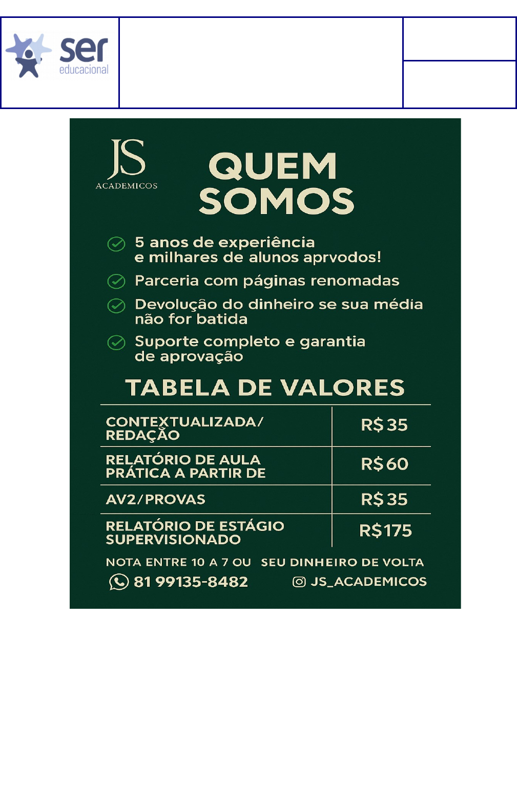 RELATÓRIO DE AULAS PRÁTICAS - EAD AULA ____ DATA: ______/______/______ VERSÃO:01 Atenção: Os trabalhos postados aqui já foram avaliados com notas entre 10 e 9 e têm autorização dos clientes. Evite copiar, pois eles já estão no banco de dados da universidade e podem gerar plágio. Fazemos projetos de extensão e outros tipos de trabalhos acadêmicos. Entre em contato pelo WhatsApp: (81) 99135-8482 ou nos siga no Instagram: @js_academicos RELATÓRIO DE AULAS PRÁTICAS: Massoterapia e Drenagem Linfática DADOS DO(A) ALUNO(A): NOME: MATRÍCULA: CURSO: POLO: PROFESSOR(A) ORIENTADOR(A): TEMA DE AULA: MASSOTERAPIA RELATÓRIO: 1. Escolha uma ou duas técnicas de massagem, e desenvolva um protocolo para um paciente fictício. Lembre-se de explicar qual a disfunção a ser tratada, motivo de escolha e associação das técnicas e ativos usados, além da periodicidade das sessões. Paciente Fictício: · Nome: Ana Souza · Idade: 35 anos · Condição: Dor muscular e tensional na região cervical e lombar devido a estresse e postura inadequada no trabalho. · Objetivo do tratamento: Redução da tensão muscular, alívio da dor e melhora da circulação local. Técnicas Selecionadas: 1. Massagem Relaxante 2. Massagem Terapêutica com liberação miofascial Justificativa da Escolha das Técnicas: · A massagem relaxante promove um efeito sedativo no sistema nervoso, auxiliando no alívio do estresse e da tensão muscular. · A massagem terapêutica com liberação miofascial atua na liberação de pontos de tensão muscular e melhora a mobilidade da fáscia, ajudando a restaurar a função normal dos músculos. Protocolo de Tratamento: 1. Duração: 45 a 60 minutos por sessão. 2. Periodicidade: 2 sessões por semana durante 4 semanas, reavaliando a necessidade de continuidade após esse período. 3. Passo a passo da sessão: · Anamnese e Avaliação Inicial: Identificação dos pontos de dor e limitações de movimento. · Preparação: Aplicação de óleo essencial de lavanda misturado a um creme neutro para potencializar o efeito relaxante. · Execução: · Massagem relaxante inicial com deslizamentos suaves para promover relaxamento. · Manobras terapêuticas com pressão nos pontos de tensão (liberação miofascial) na região cervical e lombar. · Finalização com alongamentos suaves. · Orientações Pós-Sessão: Hidratação adequada e alongamentos diários para manutenção dos benefícios. Ativos Utilizados: · Óleo essencial de lavanda: Propriedades relaxantes e calmantes. · Creme neutro para massagem: Facilita o deslizamento das mãos sem obstruir os poros. TEMA DE AULA: DRENAGEM 2. Faça resumo sobre o procedimento da drenagem nas seguintes regiões corporais levando em consideração os diferentes métodos e prática clínica. A) Mama · Objetivo: Reduzir edemas pós-cirúrgicos (como pós-mastectomia ou mamoplastia), melhorar a circulação e aliviar desconfortos. · Técnica: Movimentos suaves e circulares em direção às axilas, promovendo o escoamento do líquido linfático para os linfonodos axilares. · Métodos comuns: Vodder e Leduc, com movimentos leves e repetitivos para evitar desconforto. B) Abdômen · Objetivo: Auxiliar na redução da retenção de líquidos, melhora da digestão e funcionamento intestinal, além de auxiliar no pós-operatório. · Técnica: Manobras suaves e rítmicas, direcionando o fluxo linfático para os linfonodos inguinais. Os movimentos seguem a direção do trânsito intestinal para estimular a motilidade e o peristaltismo. · Métodos comuns: Vodder e Godoy, utilizados principalmente para desintoxicação e pós-operatório. C) Cabeça · Objetivo: Redução de inchaços faciais, sinusite, olheiras e dores de cabeça tensionais. · Técnica: Movimentos circulares e suaves, direcionando o fluxo linfático para os linfonodos cervicais. A pressão deve ser leve para evitar desconforto na região sensível do rosto. · Métodos comuns: Vodder e Leduc, conhecidos por serem eficazes em tratamentos estéticos e terapêuticos. D) Membros Inferiores · Objetivo: Redução de edemas, melhora da circulação venosa e linfática, tratamento de varizes e alívio da sensação de peso nas pernas. · Técnica: Manobras ascendentes (do tornozelo para a virilha), ativando os linfonodos inguinais. Os movimentos devem ser suaves e contínuos, respeitando o fluxo linfático natural. · Métodos comuns: Vodder e Godoy, sendo este último mais indicado para linfedemas e problemas circulatórios crônicos. E) Membros Superiores · Objetivo: Drenar líquidos acumulados, reduzir edemas pós-cirúrgicos e melhorar a mobilidade em casos de linfedema pós-mastectomia. · Técnica: Movimentos ascendentes das mãos em direção às axilas, ativando os linfonodos axilares e supraclaviculares. A pressão deve ser leve e ritmada para evitar desconforto. · Métodos comuns: Vodder e Leduc, frequentemente utilizados na recuperação pós-cirúrgica e em tratamentos estéticos. 3. Explique como deve ser realizada a drenagem pós-operatória na região das mamas e abdominoplastia, levando em consideração os diferentes métodos e prática clínica. A drenagem linfática pós-operatória é um procedimento essencial para reduzir edemas, melhorar a circulação linfática e prevenir complicações como fibroses e seromas após cirurgias plásticas. A técnica deve ser adaptada à sensibilidade do paciente e ao estágio de cicatrização, respeitando os princípios do fluxo linfático. 1. Drenagem Pós-Operatória na Região das Mamas Objetivo: · Reduzir o inchaço e hematomas após mamoplastia, mastopexia, colocação de prótese de silicone ou mastectomia. · Prevenir aderências e fibroses. · Aliviar desconfortos e dor pós-operatória. Técnica: · O procedimento deve iniciar com a ativação dos linfonodos cervicais e axilares. · Utilizar movimentos suaves, circulares e rítmicos na região torácica, direcionando o líquido linfático para os linfonodos 