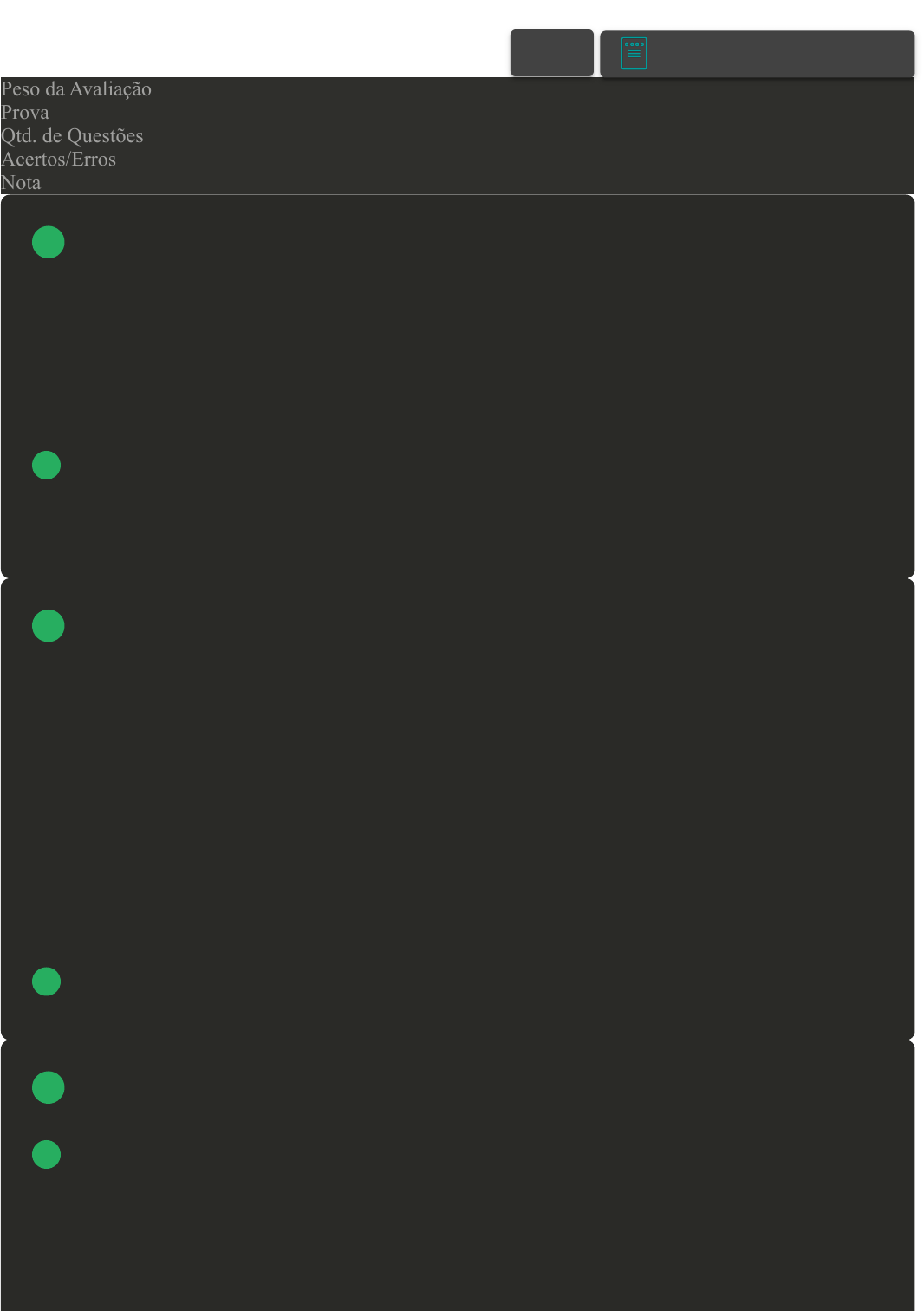 Prova Impressa GABARITO | Avaliação I - Individual (Cod.:1020441) Peso da Avaliação 2,00 Prova 97575496 Qtd. de Questões 10 Acertos/Erros 10/0 Nota 10,00 Em sua parte superior, o crânio possui três suturas (emendas) que servem como ponto de união entre os ossos. Assinale a alternativa CORRETA a respeito da sutura lambdoide: A Une os ossos parietais. B Une o osso frontal aos parietais. C Une os parietais ao occipital. D Frontal, occipital, esfenoide e etmoide. O sistema muscular é formado pelo conjunto de músculos do nosso corpo. Existem cerca de 600 músculos no corpo humano; juntos, eles representam de 40 a 50% do peso total de uma pessoa. Os músculos são capazes de se contrair e de se relaxar, gerando movimentos que nos permitem andar, correr, saltar, nadar, escrever, impulsionar o alimento ao longo do tubo digestório, promover a circulação do sangue no organismo, urinar, defecar, piscar os olhos, rir, respirar etc. De acordo com a classificação dos músculos, assinale a alternativa CORRETA: A Os músculos não estriados são responsáveis pelos movimentos do corpo. B Os músculos estriados esqueléticos são responsáveis pelos movimentos involuntários nas várias partes do corpo. C O músculo estriado cardíaco tem contração rápida e voluntária. D O músculo estriado cardíaco é responsável pela contração do coração. A mão divide-se em três regiões ósseas. Assinale a alternativa CORRETA que apresenta essas regiões: A Carpo, metacarpo e falanges. B Hamato, pisiforme e capitato. C Escafoide, semilunar e piramidal. VOLTAR A+ Alterar modo de visualização 1 2 3 22/04/25, 12:55 Avaliação I - Individual about:blank 1/4 D Trapézio, trapezoide e capitato. [Laboratório Virtual – Sistema locomotor (Ossos, ligamentos e músculos)] Os ossos longos são muito resistentes e recebem essa denominação por conta de seu tamanho. Além da função de sustentação, esses ossos absorvem impactos provenientes dos movimentos que executamos ao longo do dia. Para fins didáticos, os ossos longos são classificados em três partes. Sobre o exposto, associe os itens, utilizando o código a seguir: I- Epífise. II- Diáfise. III- Metáfise. ( ) É a parte central do osso, que apresenta maior resistência. ( ) São as extremidades do osso, onde as articulações se inserem. ( ) Corresponde à transição entre a diáfise e a epífise, responsável pelo crescimento dos ossos. Assinale a alternativa que apresenta a sequência CORRETA: A II - III - I. B III - I - II. C I - II - III. D II - I - III. As costelas são ossos alongados, em forma de semiarcos, que se ligam anteriormente ao osso esterno e, posteriormente, às vértebras torácicas. No corpo humano normal, são doze pares de costelas. A respeito dos sete primeiro pares, assinale a alternativa CORRETA: A São chamados de costelas articuladas, pois, além de estarem articulados às vértebras torácicas, estão também articulados individualmente com o osso esterno pela cartilagem costal. B São chamados de costelas verdadeiras, pois, além de estarem articulados às vértebras torácicas, estão também articulados individualmente com o osso esterno pela cartilagem costal. C São chamados de costelas falsas flutuantes, que estão somente articulados às vértebras da região torácica, sem contato com o osso esterno. D Além de estarem articulados às vértebras torácicas, estão também articulados com o osso esterno através da fusão da cartilagem costal. O esqueleto humano pode ser dividido em duas partes: o esqueleto axial e o apendicular. De acordo com as estruturas ósseas, associe os itens, utilizando o código a seguir: I- Esqueleto Axial. II- Esqueleto Apendicular. ( ) Ossos da cabeça. ( ) Ossos da cintura escapular. ( ) Ossos da cintura pélvica. ( ) Ossos do tronco. ( ) Ossos do pescoço.Assinale a alternativa que apresenta a sequência CORRETA: 4 5 6 22/04/25, 12:55 Avaliação I - Individual about:blank 2/4 A I - II - II - I - I. B I - I - II - II - II. C I - II - II - I - II. D II - II - I - II - I. As articulações são as regiões onde temos o encontro entre dois ossos. A mobilidade das articulações depende do encaixe entre esses ossos, da forma como eles estão ligados uns aos outros através dos ligamentos e tendões, da região do corpo onde se encontram e das funções que eles desempenham. Dessa forma, podemos dividir as articulações em dois tipos: não sinoviais e sinoviais. Com relação às articulações sinoviais, elas apresentam uma estrutura chamada de cápsula articular. A que corresponde essa estrutura? A É o líquido viscoso e nutritivo que preenche a cavidade articular. B É o revestimento da face interna da membrana sinovial. C É uma cápsula que envolve a articulação e é composta por tecido conjuntivo vascular. D É o espaço que existe na parte interna da cápsula articular. O Sistema Muscular tem três tipos de músculo: liso, cardíaco e esquelético. Esse último, exclusivamente de contração voluntária ou por reflexos adquiridos. Qual o nome das células musculares longas, finas e polinucleadas e o nome da membrana que reveste essas células? A Fibras musculares, endomísio. B Sarcômeros, endomísio. C Sarcômeros, perimísio. D Fibras musculares, perimísio. Percebemos que cada orgão em nosso corpo exerce uma função específica. Assim sendo, qual a principal função do cérebro? A Interpretar as mensagens enviadas pelos órgãos. B Responsável pela circulação sanguínea C Detectar descargas elétricas. 7 8 9 22/04/25, 12:55 Avaliação I - Individual about:blank 3/4 D Transportar oxigênio. [Laboratório Virtual – Sistema locomotor (Ossos, ligamentos e músculos)] O músculo bíceps braquial está localizado no braço, e sua principal função é promover a flexão do antebraço. A inervação desse músculo é realizada por qual nervo? A Nervo axilar. B Nervo femoral. C Nervo musculocutâneo. D Nervo tibial. 10 Imprimir 22/04/25, 12:55 Avaliação I -