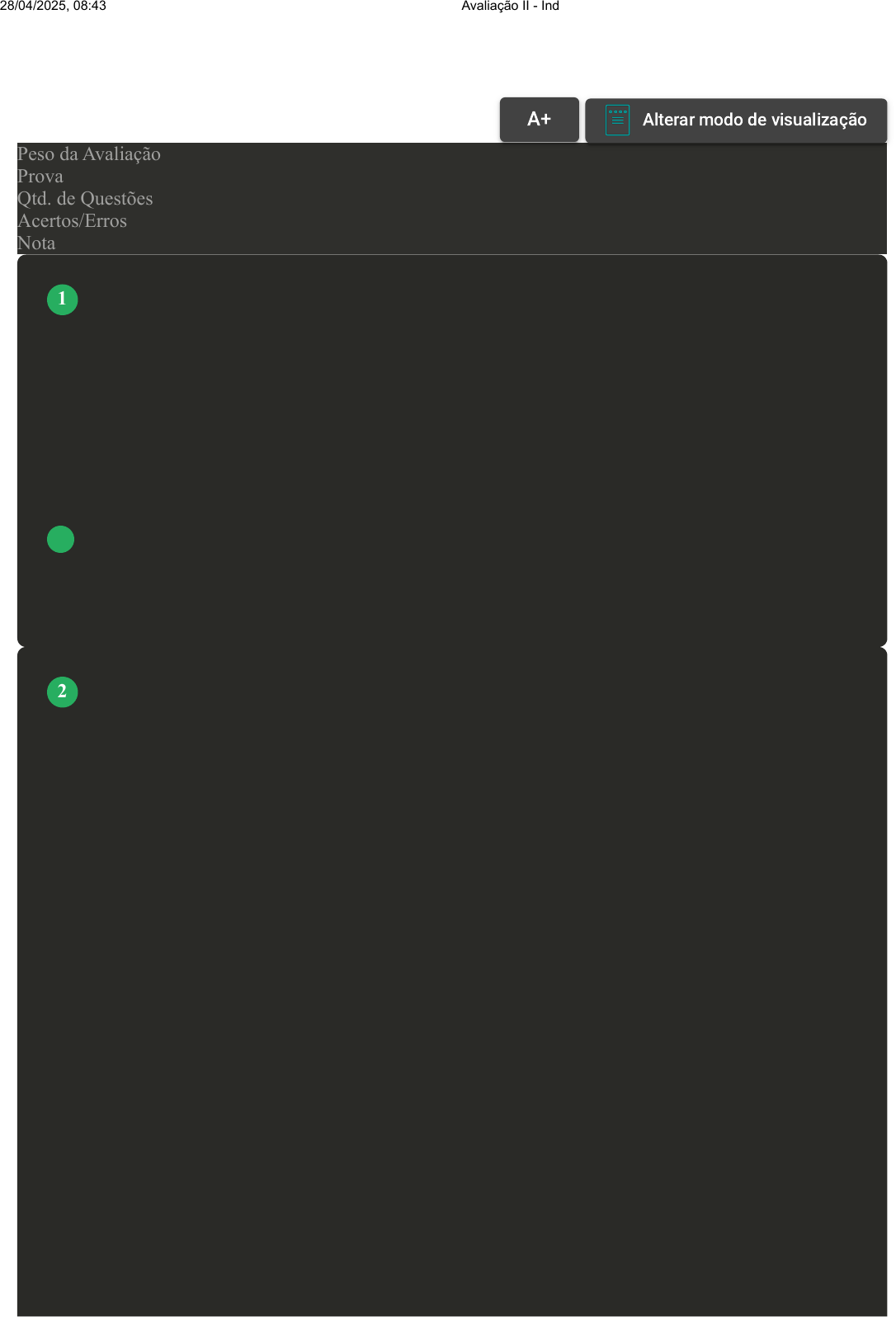 Prova Impressa GABARITO | Avaliação II - Individual (Cod.:1020230) Peso da Avaliação 2,00 Prova 95645141 Qtd. de Questões 10 Acertos/Erros 6/4 Nota 6,00 [Laboratório Virtual – Ensaio de Chamas] Cada cátion presente em cada solução disponível no laboratório virtual do ensaio de chamas apresenta uma coloração diferente. Ao testar a solução de cloreto de lítio (LiCl), a coloração característica do cátion Li+ é apresentada. Assinale a alternativa CORRETA que apresenta a coloração observada para este cátion: A Azul. B Violeta. C Vermelho. D Verde. Pesquisadores disseram que descobriram em Israel, palco de inúmeros fenômenos incríveis da natureza, o que eles acreditam ser a maior e mais longa caverna de sal do mundo. Entretanto, a equipe conta que tudo do lado de dentro da caverna é variável, já que o sal tem alta solubilidade em água, assim, dependendo da quantidade de chuvas e da atividade do Mar Morto, o tamanho interior da caverna pode mudar. A solubilidade é uma propriedade inerente a cada substância e varia conforme alguns fatores, como tipo de solvente e temperatura. Sobre o coeficiente de solubilidade e soluções, associe os itens, utilizando o código a seguir: I- Solução insaturada. II- Solução saturada. III- Solução supersaturada. IV- Solução saturada com corpo de fundo. ( ) Apresenta quantidade de soluto maior que o coeficiente de solubilidade, com solubilização forçada por aquecimento. ( ) Apresenta quantidade de soluto igual ao coeficiente de solubilidade em 100 g de água. ( ) Apresenta quantidade de soluto maior que o coeficiente de solubilidade em 100 g de água, com excesso de sólido no fundo do recipiente. ( ) Apresenta quantidade de soluto menor que o coeficiente de solubilidade em 100 g de água. Assinale a alternativa que apresenta a sequência CORRETA: FONTE: https://www.gentside.com.br/sal/maior-caverna-de-sal-do-mundo-e-descoberta-em- israel_art12266.html. Acesso em: 22 out. 2019. A II - I - III - IV. B II - I - IV - III. VOLTAR A+ Alterar modo de visualização 1 2 28/04/2025, 08:43 Avaliação II - Individual about:blank 1/6 C I - IV - II - III. D III - II - IV - I. Em livros de química analítica é possível encontrar os valores tabelados da constante do produto de solubilidade (Kps), para diversos compostos. A obtenção destes valores é realizada pelo cálculo teórico seguido de comprovação experimental, realizada em laboratório. Assim de posse de valores dessa constante de solubilidade, Kps, podemos prever a solubilidade de compostos, apenas comparando os valores da constate. Com relação à comparação de compostos a partir do Kps de substâncias, avalie as seguintes asserções e a relação proposta entre elas: I. Para afirmarmos que um composto é mais solúvel que outro, devemos comparar suas constantes de solubilidade, assim uma substância será mais solúvel que outra quando o seu valor de Kps for maior. Essa comparação se dá entre quaisquer substâncias. PORQUE II. Somente as substâncias que apresentam a mesma razão de íons, ou seja, que possuem a mesma quantidade de cátions e ânions, podem ser comparadas em relação a sua solubilidade. Como exemplo podemos comparar PbI2 com PbBr2. Sobre essas duas afirmativas, é CORRETO afirmar que: A A primeira é uma afirmativa verdadeira; e a segunda, falsa. B As duas são verdadeiras, mas não estabelecem relação entre si. C As duas são verdadeiras, e a segunda é uma justificativa correta da primeira. D A primeira é uma afirmativa falsa; e a segunda, verdadeira. "[...] A NBR 16503 de 01/2018 - Materiais têxteis - Determinação da presença de corantes dispersos alergênicos e cancerígenos especifica um método para determinação da presença de corantes dispersos alergênicos e cancerígenos em têxteis.[...] Como reagentes, metanol, de grau de cromatografia de alta eficiência (HPLC) ou equivalente, acetonitrila, de grau de cromatografia de alta eficiência (HPLC) ou equivalente, acetato de amônio, de grau de reagente analítico ou equivalente, água deionizada e solução tampão de acetato de amônio 0,01 M (pH 3,6) [...]." FONTE: Os corantes alergênicos e cancerígenos em materiais têxteis. 2019. Disponível em Acesso em 30 jan. 2020. As soluções tampão apresentam utilização experimental e fisiológica. Com base nos conhecimentos sobre solução tampão, analise as sentenças abaixo: I. O pH de uma solução tampão preparada a partir de benzoato de sódio (0,20 mol L-1) e ácido benzoico (0,50 mol L-1), cujo Ka é 6,5 x 10^-5, é igual a 3,50. II. O equilíbrio de dissociação do ácido benzoico pode ser representado de acordo com a equação apresentada na opção II da figura a seguir. III. A expressão da constante de equilíbrio envolvida na solução tampão formada a partir de ácido 3 Revisar Conteúdo do Livro 4 28/04/2025, 08:43 Avaliação II - Individual about:blank 2/6 benzoico é representada na opção III da figura a seguir. Agora, assinale a alternativa CORRETA: A As sentenças I e III estão corretas. B Somente a questão III está correta. C Somente a sentença II está correta. D As sentenças II e III estão corretas. Para o produtor que busca um resultado rápido para equilibrar os nutrientes do solo, a solução pode estar no sulfato de cálcio granulado. Comparado ao calcário, que é um corretivo de acidez, a principal diferença está na solubilidade. Os calcários têm uma solubilidade muito baixa, levando até quatro anos para reagir e cerca de um ano para descer de 0 cm a 3 cm. Já o sulfato de cálcio, especialmente o granulado, tem reação muito rápida, sendo possível observar os benefícios já na mesma safra. Sobre solubilidade e considerando o gráfico de solubilidade em anexo, analise as sentenças a seguir: I- A solubilidade de todas as substâncias representadas no gráfico aumenta com o aumento da temperatura. II- A solubilidade do nitrato de potássio diminui com o aumento da temperatura