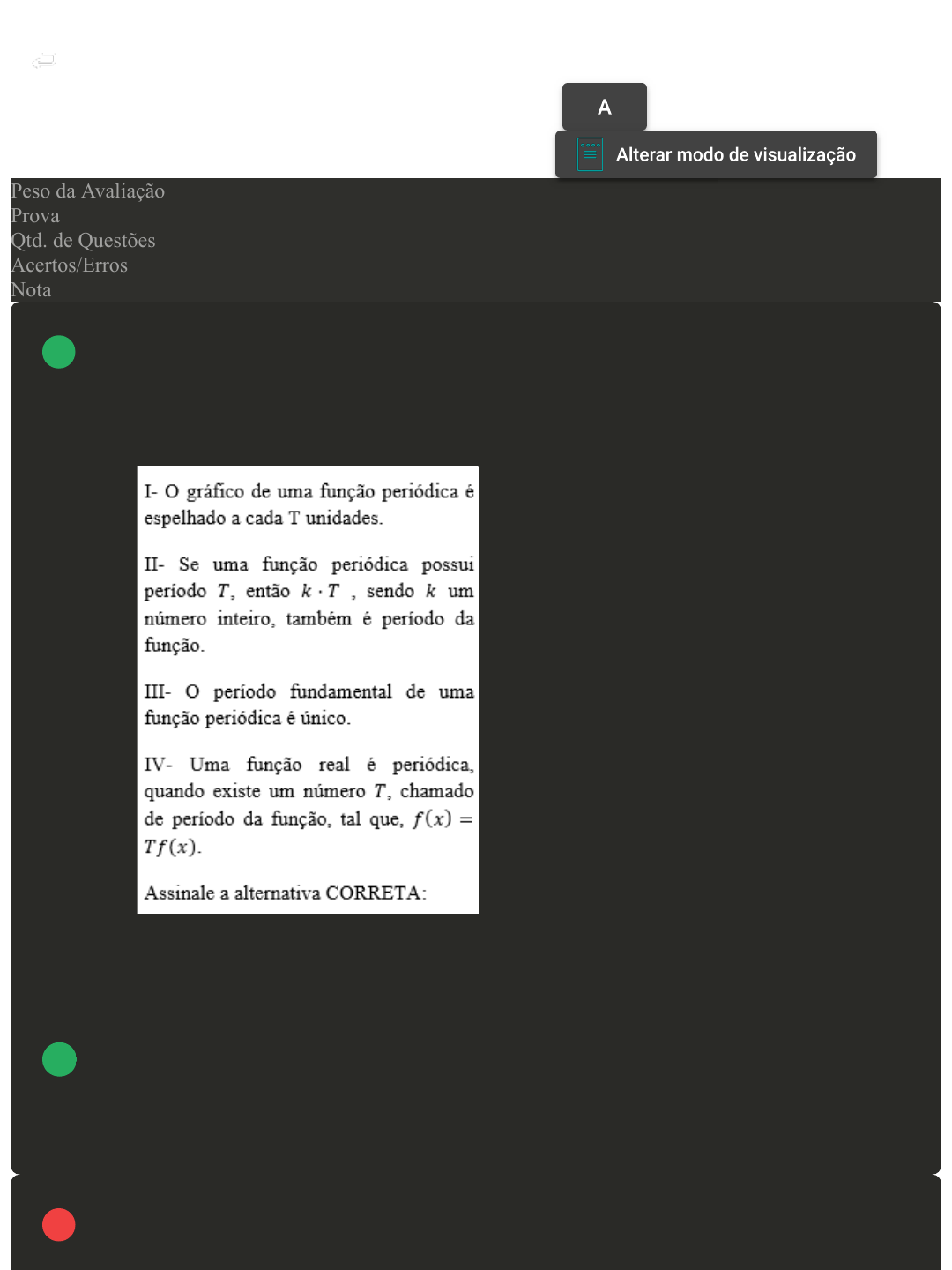 Prova Impressa GABARITO | Avaliação Final (Objetiva) - Individual (Cod.:1019463) Peso da Avaliação 4,00 Prova 95787013 Qtd. de Questões 10 Acertos/Erros 8/2 Nota 8,00 As funções periódicas são fundamentais para o estudo das séries de Fourier, pois possuem algumas propriedades importantes. As funções seno e cosseno são exemplos importantes de funções periódicas e estão presentes no estudo de séries de Fourier. Sobre as funções periódicas, analise as sentenças a seguir: A As sentenças I e III estão corretas. B As sentenças I e IV estão corretas. C As sentenças II e III estão corretas. D As sentenças II e IV estão corretas. As notações para sequência e termo de uma sequência são parecidas, 1 2 Avaliação Final (Objetiva) - Individual https://ava2.uniasselvi.com.br/subject/grades-and-tests/answer-book/e... 1 of 8 24/04/2025, 19:24 porém seus significados são distintos. Sequências são definidas intuitivamente como uma lista de números, já o termo de uma sequência é apenas um número desta lista. O n-ésimo termo de uma sequência, também chamado de termo geral, representa um termo qualquer da sequência. Sobre as notações para sequência e termo geral de uma sequência, associe os itens, utilizando o código a seguir: A II - II - I - I. B II - I - I - I. C I - I - II - II. D I - II - II - II. A Transformada de Laplace possui diversas aplicações. A principal aplicação é na resolução de Equações Diferenciais, nesses casos, precisamos calcular a transformada de funções e derivadas. Sobre a transformada de funções e derivadas, analise as sentenças e assinale a alternativa CORRETA: 3 Avaliação Final (Objetiva) - Individual https://ava2.uniasselvi.com.br/subject/grades-and-tests/answer-book/e... 2 of 8 24/04/2025, 19:24 A Somente a sentença II está correta. B Somente a sentença IV está correta. C Somente a sentença III está correta. D Somente a sentença I está correta. Geralmente, encontrar a solução de uma Equação Diferencial não homogênea por meio da Transformada de Laplace é vantajoso, pois não é necessário encontrar uma solução para a equação homogênea associada e também uma solução particular. O método encontra a solução geral para a equação diferencial de forma direta. Sobre a solução, por meio da Transformada de Laplace, do Problema de Valor Inicial (PVI) y'+3y=13.sen(2t), sujeito à condição inicial y(0)=6, classifique V para 4 Avaliação Final (Objetiva) - Individual https://ava2.uniasselvi.com.br/subject/grades-and-tests/answer-book/e... 3 of 8 24/04/2025, 19:24 sentenças verdadeiras e F para as falsas: A V - V - F - F. B F - F - V - V. C V - F - V - F. D F - V - F - V. Uma das aplicações da série de Fourier é na resolução de Equações Diferenciais, sendo esta, uma metodologia alternativa para a resolução de equações. Sobre a aplicação da metodologia de série de Fourier na solução de Equações Diferenciais, analise as sentenças a seguir: I- O intervalo de solução não é uma preocupação quando resolvemos uma Equação Diferencial por meio das séries de Fourier. II- As soluções obtidas por séries de Fourier são válidas apenas para o intervalo de definição das séries de Fourier, foras deste intervalo a função será estendida periodicamente. III- As soluções obtidas por série de Fourier são válidas para o intervalo de menos até mais infinito, pois a séries de Fourier são funções periódicas e portanto possuem valor como solução de uma Equação Diferencial. 5 Avaliação Final (Objetiva) - Individual https://ava2.uniasselvi.com.br/subject/grades-and-tests/answer-book/e... 4 of 8 24/04/2025, 19:24 Assinale a alternativa CORRETA: A Somente a sentença II está correta. B As sentenças I e III estão corretas. C Somente a sentença III está correta. D As sentenças I e II estão corretas. As Equações Diferenciais lineares homogêneas de segunda ordem com coeficientes constantes, são aquelas que podem ser escritas na forma: A As sentenças II e III estão corretas. B As sentenças I e IV estão corretas. C As sentenças I e III estão corretas. D As sentenças II e IV estão corretas. A Transformada de Laplace pode ser aplicada em um circuito elétrico simples chamado de circuito RCL. Neste estudo, estamos interessados na 6 7 Avaliação Final (Objetiva) - Individual https://ava2.uniasselvi.com.br/subject/grades-and-tests/answer-book/e... 5 of 8 24/04/2025, 19:24 corrente do sistema com o passar do tempo. Analise as sentenças sobre a equação solução da corrente i(t) em um circuito RCL e assinale a alternativa CORRETA: A Somente a sentença II está correta. B Somente a sentença I está correta. C Somente a sentença IV está correta. D Somente a sentença III está correta. Existem diversos métodos para encontrar a solução de Equações Diferenciais, cada método é útil para certo tipo de equação, geralmente, decidimos qual método utilizar por meio da classificação das equações. Sobre a classificação de Equações Diferenciais, classifique V para as sentenças verdadeiras e F para as falsas: ( ) Podem ser classificadas como Lineares (não possuem derivadas), Ordinárias (possuem derivadas ordinárias) ou Parciais (possuem derivadas parciais). ( ) Podem ser classificadas de acordo com a derivada de maior ordem da equação. ( ) Podem ser classificadas como lineares sempre que y e suas derivadas são de primeiro grau, ou seja, y e suas derivadas estão sendo elevados à primeira potência. ( ) Podem ser denominadas como lineares quando satisfazem duas condições: os coeficientes de y e suas derivadas dependem no máximo de uma variável; a função y e suas derivadas são de primeiro grau, ou seja, y e suas derivadas estão sendo elevados à primeira potência. Assinale a alternativa que apresenta a sequência CORRETA: 8 Avaliação Final (Objetiva) - Individual https://ava2.uniasselvi.com.br/subject/grades-and-tests/answer-book/e