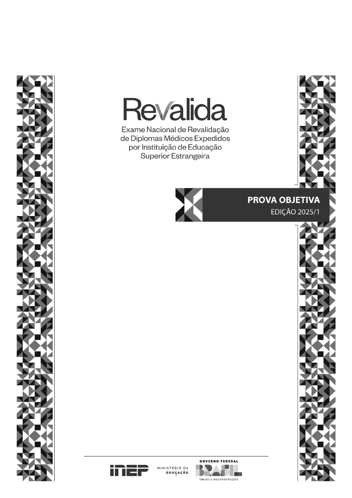 LEIA COM ATENÇÃO AS INSTRUÇÕES ABAIXO. 1 Verifique se, além deste caderno, você recebeu seu Cartão-Resposta, destinado à transcrição das respostas das questões de múltipla escolha (objetivas) e do Questionário de Percepção sobre a Prova. O Cartão-Resposta será o único documento válido para correção. 2 Confira se este caderno contém 100 questões de múltipla escolha (objetivas) e o Questionário de Percepção sobre a Prova. 3 Verifique se a prova está completa e se os seus dados pessoais estão corretos no Cartão-Resposta. Caso contrário, avise imediatamente ao Chefe de Sala. 4 Transcreva a seguinte frase no Cartão-Resposta, no campo destinado a esse fim: “A alegria é a saúde da alma”. 5 Assine o Cartão-Resposta no espaço próprio, com caneta esferográfica de tinta preta, fabricada em material transparente. 6 Você terá 5 horas para responder às questões de múltipla escolha. 7 Não realize qualquer espécie de consulta ou comunicação com demais participantes durante o período de prova. 8 Ao terminar a prova, levante a mão e aguarde o Chefe de Sala em sua carteira para proceder à identificação, recolher o material de prova e coletar a assinatura na Lista de Presença. 9 Atenção! Você só poderá levar este Caderno de Prova quando restarem 30 minutos para o término da Prova Objetiva. -- PRIMEIRA EDIÇÃO QUESTÃO 1 Homem de 62 anos vai a uma unidade de pronto atendimento (UPA) referindo cansaço e tontura ao se levantar há 2 semanas. Nega outras queixas, comorbidades ou cirurgias prévias, assim como o uso de medicamentos. Ao exame físico, apresenta-se corado, hidratado, lúcido e orientado em tempo e espaço; pressão arterial de 120 x 70 mmHg; frequência cardíaca de 45 bpm; saturação de O2 de 96% em ar ambiente; ritmo cardíaco regular, sem turgência jugular; murmúrio vesicular fisiológico, sem ruídos acessórios; e enchimento capilar de 2 segundos. Diante disso, o médico solicita um eletrocardiograma de 12 derivações: A partir desse quadro clínico e da interpretação do eletrocardiograma, a conduta adequada consiste em A conceder alta médica e encaminhar o paciente ao ambulatório especializado de cardiologia. B monitorizar o paciente, solicitar marca-passo transcutâneo e aguardar avaliação do cardiologista. C monitorizar o paciente, administrar atropina 1 mg (IV) e implantar marca-passo transcutâneo. D monitorizar o paciente, administrar atropina 1 mg (IV) e iniciar uso de dopamina 5 mcg/kg/min. QUESTÃO 2 Homem de 42 anos, em uso crônico de anti-inflamatório não esteroide por doença reumática, dá entrada no pronto-socorro com 6 horas de evolução de dor epigástrica de forte intensidade. Sinais vitais: Exame Resultado Frequência cardíaca 110 bpm Pressão arterial 90 x 50 mmHg Frequência respiratória 22 irpm Temperatura axilar 36,5 oC Ao exame físico, abdome tenso, com descompressão brusca dolorosa nos quatro quadrantes. O hemograma apresenta valores dentro da normalidade e a tomografia de abdome evidencia líquido livre intraperitoneal com ar no recesso hepatofrênico. Nesse caso, assinale a alternativa que apresenta a principal hipótese diagnóstica. A Úlcera gástrica perfurada. B Pancreatite aguda. C Colecistite aguda. D Diverticulite aguda. QUESTÃO 3 Menina de 7 anos e 6 meses é encaminhada ao ambulatório de pediatria porque sua família percebeu surgimento de broto mamário há cerca de 3 meses. O exame físico revela que seu estadiamento puberal é M2P1 e sua estatura está próxima ao escore Z +2 para a idade, com peso em escore Z 0. Um exame de radiografia simples de punho, solicitado pelo médico da atenção primária, mostra idade óssea compatível com 9 anos e 6 meses. Considerando essa situação, assinale a alternativa que apresenta a principal hipótese diagnóstica, seguida de sua justificativa. A Puberdade precoce central, pois o crescimento das mamas está associado a avanço da idade óssea. B Telarca isolada precoce, pois a diferença entre a idade óssea e a idade cronológica não é significativa. C Telarca isolada precoce, pois o crescimento das mamas foi um achado isolado na investigação da paciente. D Puberdade precoce central, pois, além da telarca, há também sinais de pubarca, o que sugere ativação do eixo hormonal. QUESTÃO 4 Primigesta de 25 anos procura o pronto atendimento de ginecologia e obstetrícia com história de atraso menstrual e resultado de beta-hCG quantitativo de 10.000 mlU/mL realizado há 2 dias. Não se recorda da data da última menstruação. Queixa-se de sangramento vaginal, em pequena quantidade, que já dura 3 dias. Ao exame especular, nota-se presença de sangramento vivo em pequena quantidade e, ao toque, percebe-se colo uterino fechado. Solicitado beta-hCG no dia da consulta, com resultado de 23.400 mlU/mL. A partir desses dados, assinale a alternativa que apresenta, respectivamente, o diagnóstico desse caso e a conduta adequada. A Gestação ectópica; laparotomia. B Ameaça de aborto; repouso relativo. C Aborto incompleto; curetagem uterina. D Aborto em evolução; acompanhamento clínico. ÁREA LIVRE PRIMEIRA EDIÇÃO QUESTÃO 5 A médica de uma penitenciária avalia homem de 26 anos, com 98 kg, que relata compartilhar a cela com 12 pessoas (a qual comportaria no máximo 5). O paciente queixa-se de prurido cutâneo há 2 dias com piora no período noturno. Ao exame físico, a médica identifica pápulas eritematosas com escoriações em região de prega em braços e em região posterior de joelhos. Com relação a essa situação, assinale a alternativa que apresenta, respectivamente, a orientação médica e a prescrição medicamentosa adequadas. A Restrição de visitas aos detentos e isolamento dos casos nas celas, sem permissão de saída; uso de ivermectina 6 mg, 01 comprimido via oral, repetindo em 15 dias, para todos da cela. B Isolamento dos casos na enfermaria da unidade e lavagem frequente das roupas de cama, de banho e 