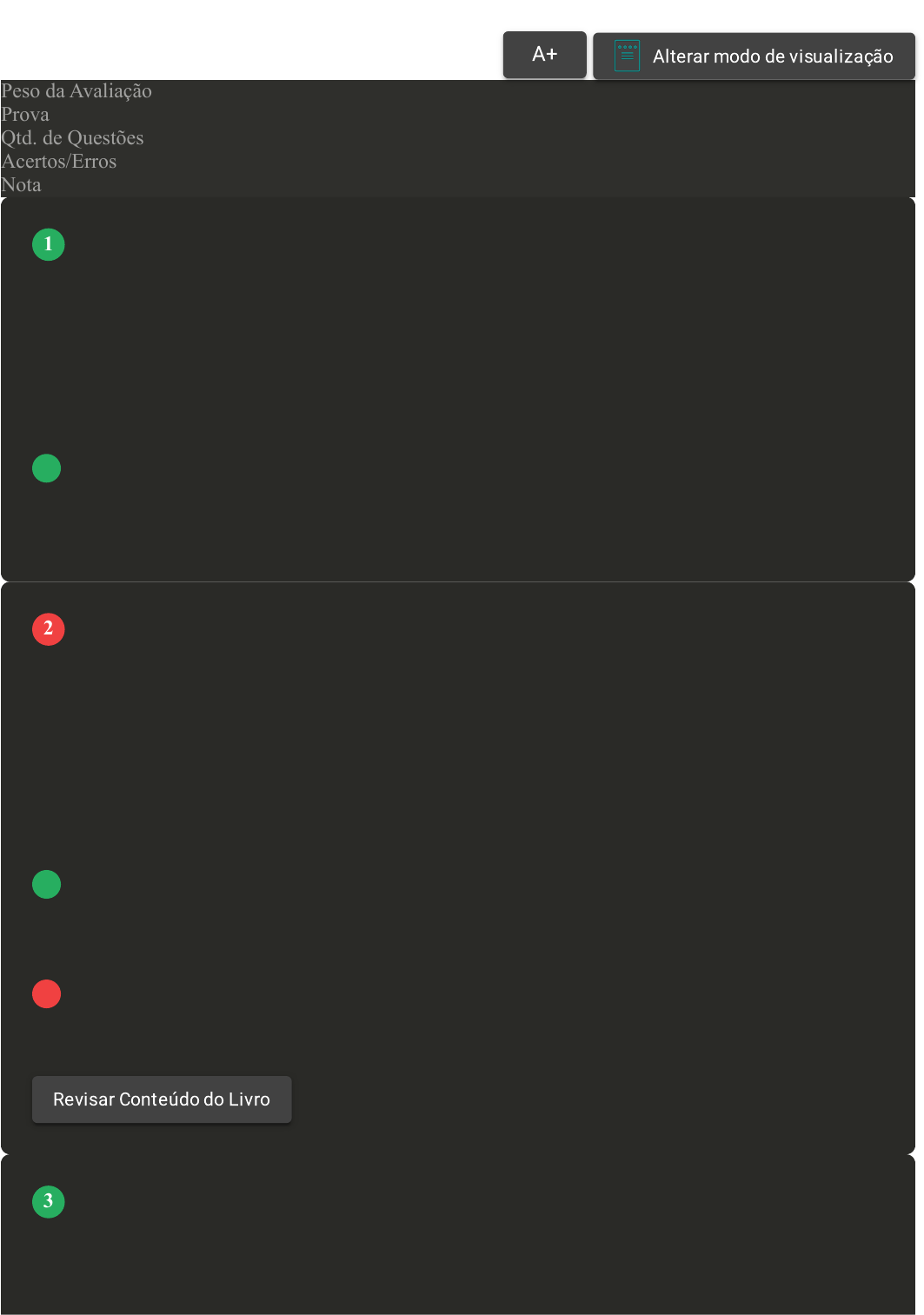 06/05/2025 09:38 Avaliação I - Individual about:blank 1/5 Prova Impressa GABARITO | Avaliação I - Individual (Cod.:1025331) Peso da Avaliação 2,00 Prova 95525098 Qtd. de Questões 10 Acertos/Erros 8/2 Nota 8,00 Movimento artístico surgido no Brasil no início do século XX, influenciado a partir das vanguardas europeias e que buscou a ruptura com antigas tradições. Está relacionado ao processo de urbanização de grandes cidades, bem como ao interesse pelo folclore, instituindo uma nova relação entre a música erudita e a música popular. Sobre este movimento, assinale a alternativa CORRETA: A Romantismo. B Expressionismo. C Modernismo. D Neoclassicismo. A cena musical de Minas Gerais foi uma das mais importantes do Brasil no período colonial. A mineração promoveu o surgimento de muitas cidades se que tornaram grandes centros urbanos, aumentando a demanda de produções artísticas nesta região. Sobre a música em Minas Gerais no período colonial, analise as sentenças a seguir: I- Se limitava aos espaços religiosos. II- A música era considerada um trabalho manual. III- Classe musical amplamente formada por indivíduos mestiços. Assinale a alternativa CORRETA: A As sentenças II e III estão corretas. B As sentenças I e II estão corretas. C As sentenças I e III estão corretas. D Somente a sentença II está correta. A partir da exploração de recursos naturais em Minas Gerais, se formaram diversas cidades que se tornaram grandes centros urbanos. Isto incentivou o surgimento de um mercado artístico, com a música exercendo um importante papel social. Sobre o cenário musical em Minas Gerais, classifique V para as sentenças verdadeiras e F para as falsas: VOLTAR A+ Alterar modo de visualização 1 2 Revisar Conteúdo do Livro 3 06/05/2025 09:38 Avaliação I - Individual about:blank 2/5 ( ) Mercado profissional foi impulsionado pelas celebrações e festas cristãs. ( ) Os negros eram proibidos de participarem da cena musical. ( ) A classe de músicos causava certo incômodo em membros da elite. ( ) Surgiram importantes organeiros, que projetavam, construíam e consertavam órgãos. Assinale a alternativa que apresenta a sequência CORRETA: A V - F - V - F. B F - V - F - V. C V - F - V - V. D V - V - V - F. No Brasil, a música possui grande importância na vida tradicional das sociedades indígenas. Está inserida em diferentes ocasiões e é parte fundamental de sua identidade. Entretanto, a tradição musical dos povos indígenas sofreu violentas mudanças com a chegada dos colonizadores europeus. Sobre a história da música indígena no Brasil, classifique V para as sentenças verdadeiras e F para as falsas: ( ) A música indígena sofreu proibições por parte da Igreja e do governo português durante o período colonial. ( ) Grande parte da música indígena desapareceu durante a colonização do país. ( ) A música indígena não possuía qualquer organização dos sons utilizados. ( ) Os índios só passaram a utilizar instrumentos musicais após a chegada dos portugueses. Assinale a alternativa que apresenta a sequência CORRETA: A V - V - F - F. B V - F - V - F. C F - V - F - V. D F - F - V - V. Na história da música brasileira existe a predominância de determinados gêneros e estilos musicais em diferentes períodos da história. Estas predileções estão relacionadas às questões culturais da sociedade de cada época, o que reflete diretamente na produção musical. Sobre os períodos históricos e a produção musical no Brasil, associe os itens, utilizando o código a seguir: I- Período colonial. II- Período joanino. III- Período imperial. IV- Período republicano. ( ) Predominância do classicismo. ( ) Chegada do romantismo no Brasil. ( ) Adesão ao nacionalismo e surgimento do modernismo. ( ) Predominância da música sacra. 4 5 06/05/2025 09:38 Avaliação I - Individual about:blank 3/5 Assinale a alternativa que apresenta a sequência CORRETA: A III - IV - II - I. B I - II - IV - III. C II - III - IV - I. D III - II - IV - I. A ópera brasileira passou a se destacar no cenário nacional no século XIX, atingindo seu auge depois da retomada da economia brasileira pós independência. Neste período, diversos fatores convergem para ascensão deste gênero musical, se tornando um dos principais atrativos culturais no país. Sobre a ascensão da ópera no Brasil no século XIX, classifique V para as sentenças verdadeiras e F para as falsas: ( ) A música religiosa havia entrado em acentuada decadência. ( ) Se restabeleceu a prática musical voltada para o teatro. ( ) Mobilizava as diversas camadas da sociedade. ( ) Baixo custo de produção. Assinale a alternativa que apresenta a sequência CORRETA: A V - F - V - F. B F - V - V - F. C F - V - F - V. D V - V - F - F. A musicologia é uma ciência que tradicionalmente tem em seu maior interesse a música ocidental. Entretanto, nas últimas décadas, vem desenvolvendo diferentes metodologias de estudo, investigando diversos temas relacionados à história da música. Sobre a atuação da musicologia, analise as sentenças a seguir: I- Estuda principalmente a música em seu contexto histórico e sociocultural. II- Aborda diferentes assuntos do meio musical como teoria musical a estética, a psicoacústica, a organologia, entre outros. III- A musicologia histórica estuda a história da música, empregando teorias e métodos científicos semelhantes aos usados por historiadores. Assinale a alternativa CORRETA: A Somente a sentença II está correta. B Somente a sentença I está correta. Revisar Conteúdo do Livro 6 7 06/05/2025 09:38 Avaliação I - Individual about:blank 4/5 C As sentenças I, II e III estão corretas. D Somente a sentença III está correta. No período imperial, a prática musical doméstica se tornou um lazer muito comum entre a classe média e a elite brasileira. Isso aumentou a demanda por instrumentos musicais e o país começou a importar os primeiros pianos, que se 