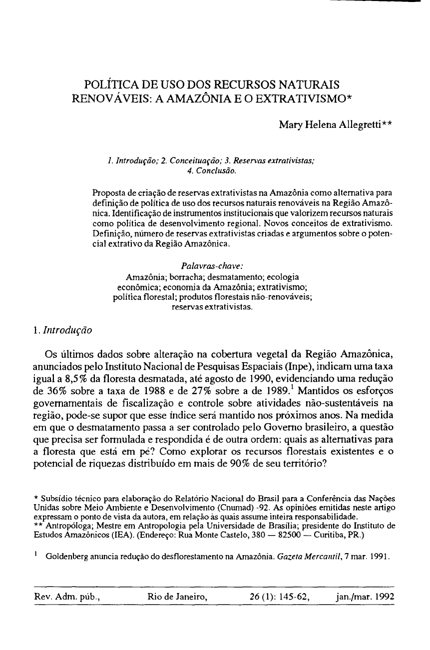 Rev. Adm. púb., Rio de Janeiro, 26 (1): 145-62, jan./mar. 1992