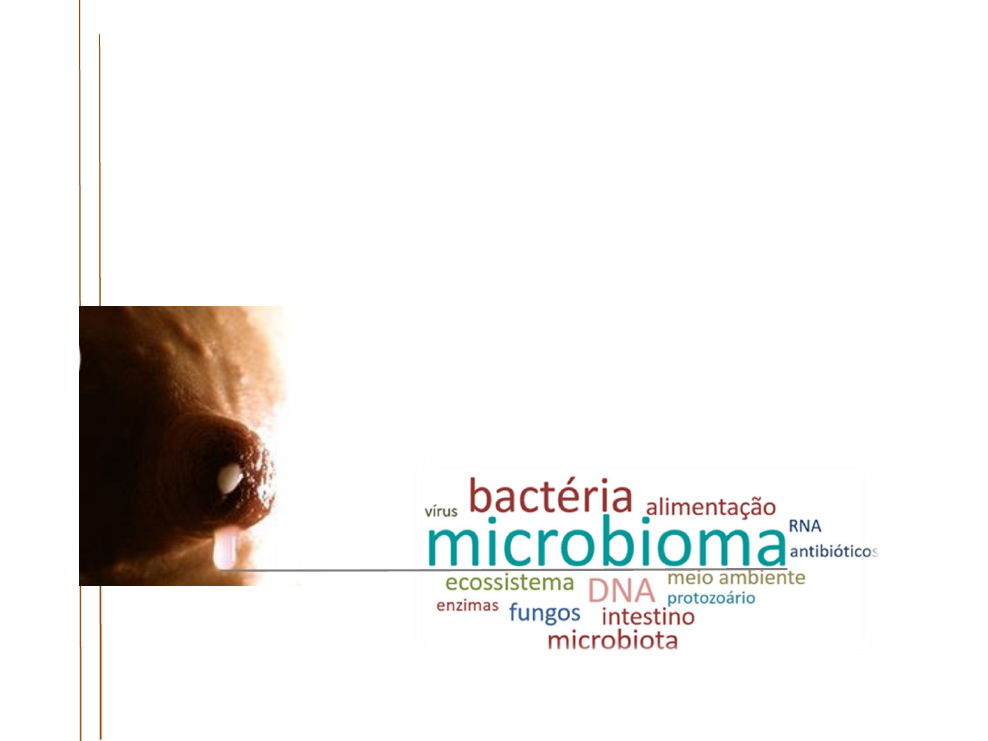 Leite Humano microbioma AÇÃO microbiota seus metabólitos material genético Microbioma - Ação Prebióticos Probióticos Posbióticos Simbióticos Psicobióticos mecanismos epigenéticos Ocorrência de mudanças, reversíveis e herdáveis, no genoma funcional que não alteram a sequência de nucleotídeos do DNA. Mecanismos Epigenéticos Resposta da expressão gênica a um estímulo que aplicado em um período, crítico ou sensível, leva a efeitos duradouros ou persistentes sobre a estrutura ou função do organismo. Mecanismos Epigenéticos Mudança da manifestação genética sem alterar o DNA Através de mecanismos epigenéticos é possível modificar a expressão fenotípica “Liga ou desliga resultados fenotípicos” Mecanismos Epigenéticos Microbioma - Ação Prebióticos Probióticos Posbióticos Simbióticos Psicobióticos Prebióticos Substancias que estimulam seletivamente o crescimento de bacterias probióticas. Em geral são oligossacarideos não digeriveis no intestino delgado e que alcançam o grosso, onde cumprem seu papel Prebióticos Prebióticos • Assim como os demais componentes do leite humano, a composição de HMOs sofre variação ao longo da lactação. • Outros fatores, incluindo a dieta, estado nutricional, estilo de vida, diversidade social e ambiental podem estar associados à síntese e variação da composição dos HMOs • Sem valor nutricional direto para o lactente, porque são resis- tentes à acidez estomacal, à hidrólise enzimática e à absorção intestinal29 • (≥ 95%) dos HMOs ingeridos chega ao intestino grosso e será metabolizado pela microbiota intestinal ou excretada intacta nas fezes do lactente Prebióticos • 1 a 5% dos HMOs ingeridos são absorvidos na sua forma intacta • O efeito prebiótico ocorre na promoção de determinadas espécies dos gêneros Bifidobacterium e Bacteroides • B. bifidum, B. longum, B.breve e Bacteroides fragilis são capazes de utilizar apenas determinados HMOs ou porções específicas de HMOs mais complexos • Atuam como moléculas antiadesivas, inibindo infecções e diarreia • Uma vez ligado ao HMO, o patógeno não consegue se aderir à superfície celular e é eliminado nas fezes sem causar infecção Prebióticos • Mecanismos de inibição de adesão mediados por HMOs têm sido demonstrados em uma grande diversidade de agentes infecciosos bacterianos, como Campylobacter jejuni1, Escherichia coli, Salmonella fyris e Vibrio cholerae, virais, como o vírus da imunodeficiência humana, protozoários, como Entamoeba histolytica e fúngicos, como Candida albicans • Estudos têm demonstrado que HMOs modulam a apoptose, proliferação e diferenciação celular no epitélio intestinal e alteram a expressão gênica nestas células, conduzindo a mudanças no glicocálice • O ácido siálico (Sia) é um componente estrutural e funcional do sistema nervoso. Os HMOs ácidos – que contêm Neu5Ac, um tipo de Sia – podem ser fornecedores de Sia para a biossíntese de gangliosídeos e glicoproteínas importantes para o desenvolvimento cerebral e cognitivo dos lactentes, potencialmente conferindo as vantagens neurológicas e cognitivas do aleitamento materno Probióticos • efeito benéfico ao hospedeiro • resistência ao suco gástrico • resistência a bilis • capacidade de adesão ao epitélio • resistência a lisozima • 106-107UFC/g no consumo • produção de metabolitos na taxa esperada • capacidade adaptativa e funcionalidade Probióticos Probióticos Probióticos Probióticos Posbióticos Probióticos - Posbióticos Probióticos - Posbióticos Posbióticos Psicobióticos a microbiota atua nos níveis dos precursores serotoninérgicos e do transportador 5-HT, que participam da ativação e modulação da serotonina central. Identificou-se que, a espécie Lactobacillus reuteri possui aptidão para alterar a expressão de mRNA dos receptores GABA A e GABA B no SNC. A microbiota intestinal consegue transmitir sinais para o cérebro utilizando o nervo Vago, o qual é crucial para diversas funções vitais, e que esta comunicação pode também dar-se em sentido inverso. GABAPENTINA é indicado para: tratamento da dor neuropática (dor devido à lesão e/ou mau funcionamento dos nervos e/ou do sistema nervoso) em adultos; como monoterapia (uso apenas de gabapentina) e terapia adjunta das crises epilépticas parciaiss Psicobióticos Em 2013, Dinan e os seus colaboradores foram os precursores de um novo conceito - psicobióticos. Bifidobacterium e Lactobacillus. primeiros 1000 dias programação metabólica o período mais sensível a induzir resultados na expressão genética. Leite Humano é capaz de reverter programação metabólica ruim Microbiota & LHO – Considerações Classificação • Patogenicidade • Saprófito ou normal • Patogênica • Origem • Primária • Secundaria microbiota 0 1000 2000 3000 4000 5000 6000 INICIO MEIO FIM UFC/ml Microbiota – Variações ao longo da ordenha Microbiota – Variações ao longo da ordenha 0 500 1000 1500 2000 2500 3000 3500 4000 4500 10 20 30 40 50 UFC/ml Microbiota Qualidade Sanitária do LHO (Sem Observar Norma Técnica) Grupos de Microrganismos Mesófilos Coliformes Termodúricos Bolores e Leveduras Estafilococos Totais Psicrotróficos Termodúricos-Psicrotróficos Contagem (UFC/ml) 38.900.000 > 1.400 3.000 2.395.000 38.000 1.920.000 170 Grupos de Microrganismos Mesófilos Coliformes Termodúricos Bolores e Leveduras Estafilococos Totais Psicrotróficos Termodúricos-Psicrotróficos Contagem (UFC/ml) 103 Ausência em 1ml Ausência em 1ml Ausência em 1ml 103 Ausência em 1ml Ausência em 1ml Microbiota Qualidade Sanitária do LHO (Observando Norma Técnica) Leite Humano Fim