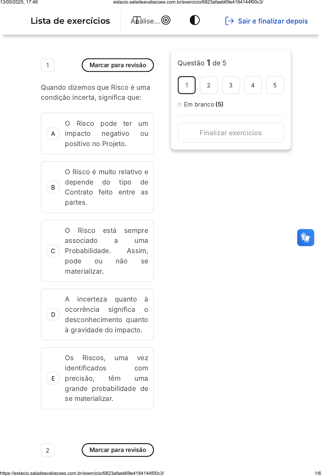 5 Marcar para revisão