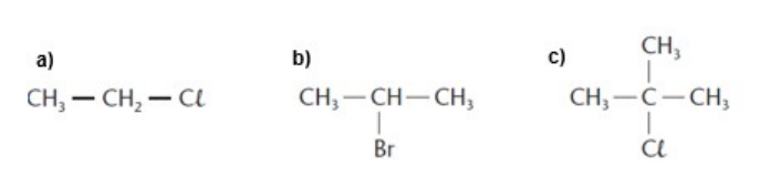Devido às características dos halogênios (eletronegatividade), a ligação com o carbono é polarizada. Com base nessa definição de haletos de alquila e na análise das estruturas a seguir, assinale a alternativa correta. a. Em termos de reatividade, o haleto secundário será o mais reativo. b. Devido a reatividade do bromo, o haleto “b” não é adequado para reações nucleofílicas. c. O cloreto é um grupo abandonador melhor que o brometo. d. O haleto de alquila apresentado em “c” é terciário e, portanto, em uma reação de substituição nucleofílica ocorrerá via um mecanismo SN1. e. O haleto “a” é o menos reativo dos três. As cadeias carbônicas podem ser classificadas de diferentes maneiras, de acordo com a presença de átomos distintos, sua disposição na cadeia, entre outros fatores. De acordo com as classificações das cadeias carbônicas, analise as colunas a seguir. Coluna 1 – Cadeias carbônicas 1. Aberta 5. Saturada 2. Fechada 6. Insaturada 3. Normal 7. Homogênea 4. Ramificada 8. Heterogênea Coluna 2 – Características ( ) Cadeia em que os átomos de carbono ligam-se exclusivamente por meio de ligações simples. ( ) Cadeia que apresenta exclusivamente átomos de carbono. ( ) Cadeia que os átomos de carbono apresentam mais de uma sequência. ( ) Cadeias em que os átomos de carbono formam anéis e ciclos. ( ) Cadeia em que pelo menos dois átomos de carbono estão ligados por dupla ou tripla ligações. ( ) Cadeia que apresenta átomos diferentes de carbono ligados entre átomos de carbono. ( ) Cadeia em que os átomos de carbono não formam anéis ou ciclos. ( ) Cadeia em que todos os átomos de carbono encontram-se em uma única sequência. A partir da correlação entre a coluna 1 e coluna 2, a ordem correta (de cima para baixa) é dada por: a. 1-3-2-4-6-5-8-7 b. 6-3-2-1-7-4-5-8. c. 5-7-4-2-6-8-1-3. d. 2-3-5-7-1-2-6-8. e. 7-4-3-8-1-2-5-6. De acordo com os estudos realizados por Pauling, quando um íon puder ser escrito por duas ou mais estruturas de Lewis, onde elas se diferem apenas pela posição dos elétrons, temos uma estrutura que possui características distintas. Com base nessa informação, seus conhecimentos e na análise da figura abaixo para o íon sulfato, assinale a alternativa correta. a. Cada uma das representações acima são a única e verdadeira forma que esse íon pode ser encontrado. b. Cada uma dessas estruturas representa um íon diferente. c. A ilustração acima apresenta as estruturas de ressonância para o íon sulfato. Neste caso, haverá uma estrutura resultante chamada de híbrido de ressonância. d. Híbridos de ressonância são mais instáveis que estruturas que não apresentam híbridos de ressonância. e. Qualquer estrutura química possui seu híbrido de ressonância. Em todo processo reacional envolvendo haletos de alquila e nucleófilos, haverá uma competição entre a reação de substituição e a reação de eliminação. O que determinará os produtos, além das características do haleto de alquila, será o tipo de solvente usado. Analise a equação química a seguir, que representa uma reação nucleofílica entre um haleto de alquila e uma base de Lewis, e assinale a alternativa correta. a. De acordo com a regra de Zaitsev, o hidrogênio eliminado será aquele ligado ao carbono que possui o maior número de átomos de hidrogênio. b. O pKa de 16 indica que o etanol (EtOH) é um ácido forte, resultando, portanto, em uma base fraca (o íon etóxido, EtO–). c. No caso de haleto primário sob as mesmas condições experimentais, a eliminação obedeceria a um mecanismo E1. d. Por se tratar de uma base forte, o produto de eliminação (alceno) será o majoritário. e. Por se tratar de uma base forte, o mecanismo de eliminação ocorrerá via um mecanismo E1. Embora simples, a nomenclatura dos hidrocarbonetos deve ser realizada levando em consideração algumas regras, de forma a tornar os nomes padronizados em todo o mundo. A entidade responsável por padronizar as regras de nomenclatura de compostos orgânicos (e outros também) é a International Union of Pure and Applied Chemistry (IUPAC). Com base nessas regras de nomenclatura, assinale a alternativa que apresenta o nome correto para a estrutura abaixo. a. 4-isopropril-3,5,6-trimetil-hept-2-eno. b. Isopropril-trimetil-hepteno. c. 4-propril-3,5,6-trimetil-hept-2-eno. d. 4-isobutil-3,5,6-trimetil-hept-2-eno. e. 4-terc-butil-2,3,5-trimetil-hept-5-eno. O colesterol é um lipídio constituído por um álcool policíclico de cadeia longa, usualmente denominado um esteroide, encontrado nas membranas celulares e transportado no plasma sanguíneo de todos os animais. Sabendo que a representação da molécula abaixo foi realizada via fórmula estrutural de linhas, assinale a alternativa correta quanto a classificação dos carbonos. a. Não há carbonos quaternários na estrutura do colesterol. b. O carbono 10 e o carbono 13 são carbonos quaternários. c. Os carbonos 18, 19 e 21 são carbonos secundários. d. Os carbonos 5 e 6 são classificados como saturados. e. Há 5 carbonos metílicos na estrutura. O EDTA (ácido etilenodiaminotetracético) é um agente complexante, por exemplo, utilizado em análises hematológicas, pois preserva a integridade celular. Sabendo que o carbono é tetravalente e que a estrutura abaixo está representada via fórmula estrutural de linhas, conclui-se que: a. Possui apenas carbonos primários. b. Possui apenas carbonos sp³. c. É uma cadeia apolar. d. Possui fórmula molecular C10H16N2O8. e. É uma cadeia homogênea. A classificação de uma reação é realizada por meio da análise de sua cinética. No caso das reações SN1, sua velocidade é dependente apenas da concentração do haleto de alquila. Já para as reações SN2, tanto a concentração do haleto de alquila, quanto do nucleófilo, interferem na velocidade da reação, ou seja, ela é bimolecular. Com base nessas informações e na equação química