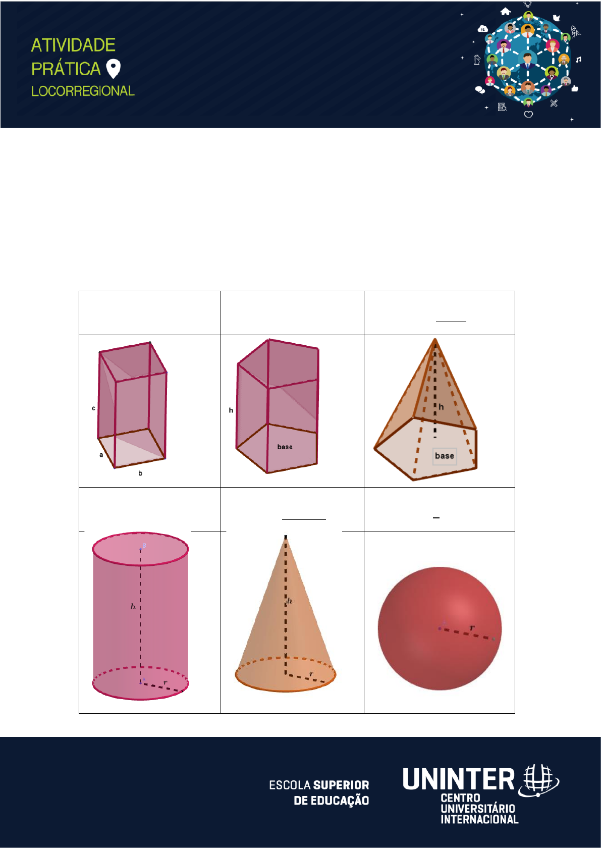 DISCIPLINA: CÁLCULO INTEGRAL TEMA: Volume de sólidos de revolução. OBJETIVO: Verificar a teoria e prática do conteúdo sólidos de revolução. COMPETÊNCIA: Calcular o volume de sólidos de revolução através fórmula contendo integrais. EXPERIMENTE E PRODUZA: Muitos sólidos são possíveis de se calcular com o uso de fórmulas simples tais como o volume de paralelepípedo, prisma, pirâmide, cilindro, cone e esfera. Abaixo temos a figuras e suas fórmulas. Paralelepípedo 𝑉 = 𝑎 ⋅ 𝑏 ⋅ 𝑐 Prisma 𝑉 = 𝐴𝑏 ⋅ ℎ 𝐴𝑏: área da base Pirâmide 𝑉 = 𝐴𝑏 ⋅ ℎ 3 Cilindro 𝑉 = 𝜋 ⋅ 𝑟2 ⋅ ℎ Cone 𝑉 = 𝜋 ⋅ 𝑟2 ⋅ ℎ 3 Esfera 𝑉 = 4 3 𝜋 ⋅ 𝑟3 Porém outras figuras os cálculos dos volumes não são tão imediatos. É preciso de cálculos mais avançados tais como o cálculo integral. “No estudo da geometria espacial, os sólidos geométricos se originam da rotação 360 de uma figura plana em torno de um eixo principal determinado por uma reta. O sólido de revolução é obtido pelo giro de uma região plana limitada e descrita em torno de um eixo central, chamado também de eixo de revolução.” (RODRIGUES, p. 15) Para calcular volume gerado pela revolução da curva em torno do eixo x é necessário aplicar é dado por 𝑉 = 𝜋 ∫ [𝑓(𝑥)]2𝑑𝑥 𝑏 𝑎 . Agora é com você! Para que você aplique a uma situação prática este conteúdo queremos que você calcule o volume de um objeto de sua casa. Minha sugestão é que seja um balde com formato em tronco de cone (não é permitido utilizar o formato de um cilindro). Mas pode ser outro objeto, desde que consiga obter a função 𝑦 = 𝑓(𝑥). Observe os passos a seguir: 1) Meça a altura do balde e o diâmetro de suas duas bases (conforme fotos). 2) Com base nos dados obtidos modele a função 𝑦 = 𝑓(𝑥). Com os dados obtidos o professor conseguiu a figura abaixo. Pode-se observar que a função é linear, o coeficiente linear visível no gráfico e o coeficiente linear também está fácil de calcular (dica: trace uma reta horizontal no eixo y quando inicia a reta inclinada. Com o triângulo retângulo obtido calcule Δ𝑥 Δ𝑦 ). 3) Calcule o volume do sólido de revolução. 4) Os valores obtidos na etapa 3 provavelmente serão em centímetros cúbicos. Transforme para litros. 5) Com um becker ou uma garrafa pet de 1 litro (ou 1,5 litros ou 2,5 litros etc) meça seu objeto com água. 6) Verifique se os valores das etapas 4 e 5 coincidem ou se aproximam. 7) Compare e analise os resultados obtidos com cálculos e com medição. CRITÉRIOS AVALIATIVOS VALOR Utilização do Template 10 Registro das medidas encontradas: 10 Toda a resolução para encontrar a função: 30 Toda a resolução do cálculo do volume através da integral definida: 20 Toda a resolução do cálculo do volume através da fórmula do tronco de cone 20 Justificativa 10 Nota 100 Observação: Não será aceito o trabalho sem as fotos. O QUE DEVO POSTAR? No link TRABALHOS, poste um documento em .doc, contendo as respostas para as questões acima. Utilize o template disponível em MATERIAL COMPLEMENTAR. MATERIAIS DE APOIO: RODRIGUES, A.C.D. Cálculo diferencial e integral a várias variáveis. 1ª edição, Intersaberes, Curitiba, 2016. GUIDORIZZI, H.L. Um curso de Cálculo – vol. 1, 6ª edição, LTC, Rio de Janeiro, 2018