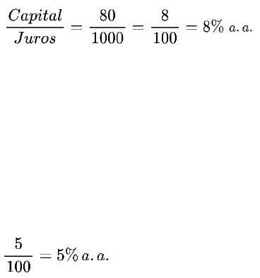 Leia o texto a seguir e responda às questões relacionadas: Taxa de juros É a remuneração pelo uso do capital emprestado ou investido por um determinado período de tempo. Eles representam o valor pago ou recebido pelo empréstimo ou aplicação de um capital. A taxa de juros é um percentual calculado pela divisão dos juros obtidos ou pagos pelo capital emprestado ou investido. O cálculo é feito da seguinte forma: Por outro lado, considere o cenário em que um investimento de R$ 1.000,00 renda à taxa de juros de 5% ao ano. Nesse caso, o investidor receberá R$ 5,00 por cada R$ 100,00 investidos, ou seja: Durante um ano, isso resultará em um acréscimo de R$ 50,00, totalizando ao final do período o montante de R$ 1.050,00. Fonte: https://www.bcb.gov.br/cidadaniafinanceira/entendajuro (Adaptado). Questão 01 de 04 * 10 PONTOS Na educação financeira, entender como funciona a taxa de juros é fundamental para tomar boas decisões. A taxa de juros representa o percentual que será cobrado ou ganho sobre um valor emprestado ou investido. Esse percentual é calculado pela divisão entre o valor dos juros e o capital utilizado, conforme a fórmula: Taxa = Juros ÷ Capital Com base nisso, assinale a alternativa que indica corretamente a taxa de juros anual cobrada na operação a seguir: "Um amigo seu pegou emprestado R$ 1.000,00 por um ano e teve que pagar R$ 80,00 de juros." A) 5% ao ano. B) 7% ao ano. C) 8% ao ano. D) 10% ao ano. Questão 02 de 04 * 10 PONTOS Quando alguém faz um investimento, é importante saber quanto o dinheiro renderá ao final do período. O valor final, chamado de montante, é formado pelo capital inicial somado aos juros obtidos. Quanto maior a taxa de juros e o tempo, maior será o rendimento. Para calcular os juros simples, utiliza-se a fórmula: J = C × i × t. Com base nisso, assinale a alternativa que representa corretamente o valor final que Júlia terá ao final de um ano: "Júlia aplicou R$ 1.000,00 em uma aplicação com taxa de juros simples de 5% ao ano, durante 1 ano." A) R$ 1.005,00. B) R$ 1.050,00. C) R$ 1.100,00. D) R$ 1.500,00. Questão 03 de 04 * 10 PONTOS Para avaliar a vantagem entre um empréstimo ou investimento, é necessário comparar as taxas de juros, calculadas pela divisão entre os juros gerados e o capital aplicado. Assim é possível saber qual opção teve maior rentabilidade proporcional. Com base nisso, considere as situações: 1. Situação 1: Empréstimo de R$ 2.000,00 → R$ 160,00 de juros em 1 ano. 2. Situação 2: Investimento de R$ 2.000,00 → R$ 120,00 de juros em 1 ano. Julgue as afirmações a seguir como "Certo" ou "Errado". A) A taxa da situação 2 é maior, pois o investimento gerou retorno. CertoErrado B) Como o capital é o mesmo, os juros também são iguais. CertoErrado C) A taxa da situação 1 é de 8% ao ano, pois 160 ÷ 2.000 = 0,08. CertoErrado D) A situação 1 teve maior taxa de juros, mesmo que a diferença pareça pequena. CertoErrado Questão 04 de 04 * 10 PONTOS Ao comparar diferentes propostas de investimento com capitais e taxas variadas, é importante avaliar qual gerará maior rendimento proporcional em um determinado tempo. A taxa de juros indica o percentual aplicado sobre o capital e influencia diretamente o retorno financeiro. Considere as opções oferecidas por um parente: 1. Opção A: R$ 10,00 com taxa de 5% ao mês; 2. Opção B: R$ 20,00 com taxa de 2% ao mês; 3. Opção C: R$ 30,00 com taxa de 1% ao mês. Após 2 meses, assinale as alternativas corretas. A) A opção A renderá mais juros absolutos do que a opção B. B) A opção B renderá mais juros absolutos do que a opção C. C) A opção C terá o maior valor total acumulado. D) Todas as opções renderão exatamente o mesmo valor em juros. image1.png image2.png