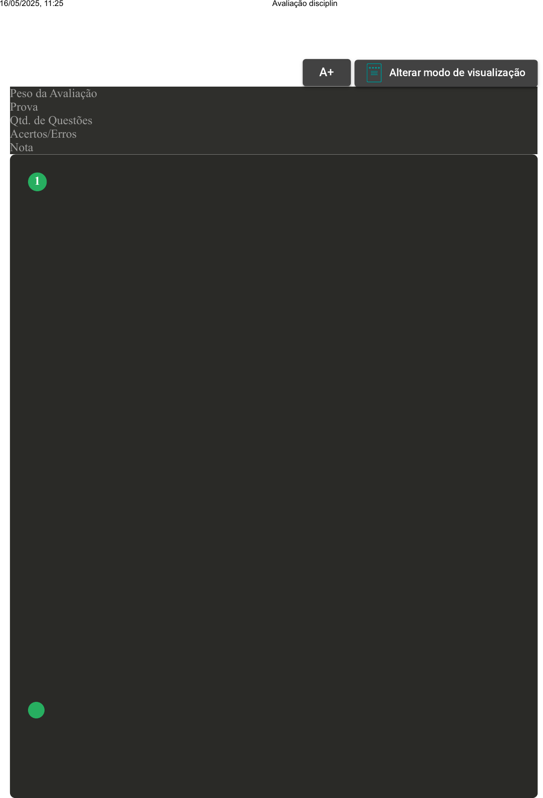 Prova Impressa GABARITO | Avaliação disciplina on-line (Cod.:1018642) Peso da Avaliação 10,00 Prova 94157475 Qtd. de Questões 10 Acertos/Erros 8/2 Nota 8,00 Diante das inúmeras perdas, cuidar do estado emocional das vítimas das enchentes no Rio Grande do Sul é essencial, destacando a necessidade de profissionais que possam atender a essa população. Psicólogos enfatizam que as medidas de apoio à saúde mental devem começar nas primeiras semanas após o desastre. A psicóloga Débora Noal está coordenando uma força-tarefa composta de 300 profissionais do SUS, de vários estados, incluindo o Rio Grande do Sul, para prestar esse atendimento inicial. As principais demandas incluem casos de depressão, transtornos de ansiedade e estresse pós- traumático. Além disso, os impactos não se limitam a traumas individuais, mas abrangem também traumas coletivos, afetando comunidades inteiras. Fonte: adaptado de: SILVA, D.; SILVA, R. K. I.; MOLIN, E. D. INTERVENÇÕES EM RISCOS E DESASTRES: O PAPEL DA PSICOLOGIA NO ACOLHIMENTO DAS DEMANDAS EMOCIONAIS DA POPULAÇÃO QUE SOFRE COM AS ENCHENTES NO RIO GRANDE DO SUL. Revista Ibero-Americana de Humanidades, Ciências e Educação, [s. l.], v. 10, n. 5, p. 5378- 5390, 2024. Disponível em: https://periodicorease.pro.br/rease/article/view/14265. Acesso em: 18 jul. 2024. Com base nas informações apresentadas, avalie as asserções a seguir e a relação proposta entre elas: I. Os profissionais que se voluntariarem para ajudar na força-tarefa estarão exercendo a cidadania. PORQUE II. A ação dos profissionais colabora para o bem-estar coletivo, reforçando os laços da sociedade. A respeito dessas asserções, assinale a opção correta: A As asserções I e II são verdadeiras, mas a II não é uma justificativa correta da I. B A asserção I é uma proposição verdadeira e a II é uma proposição falsa. C A asserção I é uma proposição falsa e a II é uma proposição verdadeira. D As asserções I e II são verdadeiras, e a II é uma justificativa correta da I. E As asserções I e II são falsas. VOLTAR A+ Alterar modo de visualização 1 16/05/2025, 11:25 Avaliação disciplina on-line about:blank 1/8 Artigo 2 1. Todo ser humano tem capacidade para gozar os direitos e as liberdades estabelecidos nesta Declaração, sem distinção de qualquer espécie, seja de raça, cor, sexo, língua, religião, opinião política ou de outra natureza, origem nacional ou social, riqueza, nascimento, ou qualquer outra condição. 2. Não será também feita nenhuma distinção fundada na condição política, jurídica ou internacional do país ou território a que pertença uma pessoa, quer se trate de um território independente, sob tutela, sem governo próprio, quer sujeito a qualquer outra limitação de soberania. Fonte: adaptado de: https://www.unicef.org/brazil/declaracao-universal-dos-direitos-humanos. Acesso em: 17 jul. 2024. Com base nas informações apresentadas, avalie as asserções a seguir e a relação proposta entre elas: I. Os limites estabelecidos pela declaração devem ser aplicados em conformidade com a legislação de cada nação. PORQUE II. Os limites impostos pela declaração buscam o bem-estar do indivíduo e do coletivo. A respeito dessas asserções, assinale a opção correta: A A asserção I é uma proposição falsa e a II é uma proposição verdadeira. B As asserções I e II são falsas. C As asserções I e II são verdadeiras, mas a II não é uma justificativa correta da I. D A asserção I é uma proposição verdadeira e a II é uma proposição falsa. E As asserções I e II são verdadeiras, e a II é uma justificativa correta da I. A tomada de decisão diante de dilemas éticos desafia-nos a avaliar quais critérios valorizar. As variáveis que influenciam essa decisão são tanto individuais (como idade, gênero, desenvolvimento moral, cognitivo e educacional) quanto situacionais (como cultura organizacional, ambiente e contexto de trabalho). Em um dilema ético, é crucial entender as variáveis que os indivíduos 2 Revisar Conteúdo do Livro 3 16/05/2025, 11:25 Avaliação disciplina on-line about:blank 2/8 enfrentam ao tomar decisões. Na busca por soluções, é necessário ponderar as alternativas possíveis, baseando-se em princípios, valores e deveres, com um referencial que inclua justiça, beneficência, não maleficência, e respeito pela autonomia e autodeterminação da pessoa. Fonte: adaptado de: https://comum.rcaap.pt/handle/10400.26/31962. Acesso em: 11 jul. 2024. Considerando o excerto e o processo de decisão seguindo os princípios éticos, assinale a alternativa correta: A O processo de decisão é pautado no rigor esperado para si. B O conhecimento e agrupamento de informações sobre o problema dificulta a tomada de decisão. C A decisão tomada é superposta a qualquer fonte de conhecimento ou normativa. D A decisão deve ser tomada sem a busca de reflexão, para evitar a influência externa. E As decisões são baseadas nos interesses próprios e na negligência de acordos sociais. Os direitos humanos são princípios fundamentais que garantem a dignidade, a liberdade, a igualdade e a justiça para todas as pessoas. Eles são protegidos por tratados internacionais e legislações nacionais, e incluem direitos como o direito à vida, à liberdade de expressão, ao trabalho e à educação, entre outros. A proteção desses direitos é essencial para promover sociedades justas e equitativas. Fonte: adaptado de: https://www.un.org/en/global-issues/human-rights. Acesso em: 15 jul. 2024 Considerando o excerto e os direitos humanos, analise as afirmativas a seguir: I. A proteção dos direitos humanos é responsabilidade conjunta de governos, organizações internacionais e da sociedade civil. II. A equidade é alcançada colocando direitos civis e políticos como prioritários em relação aos direitos sociais, econômicos e culturais. III. A relatividade cultural dos direitos