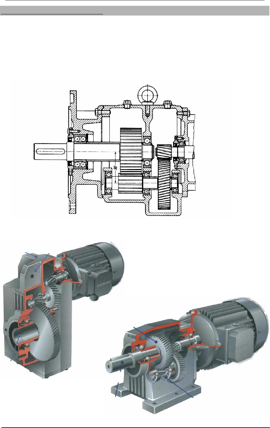 Projetos Mecânicos 3 o Ciclo de Mecânica - 1 - Prof. Eng. Mec. Claudinei Bigaton REDUTOR DE VELOCIDADE Redutor de Velocidade são máquinas empregadas para se obterem grandes redução de trans- missões, sem necessidade de recorrer a engrenagens de grandes diâmetros ou motoras de poucos den- tes. Os redutores podem ser constituídos de engrenagens paralelas, cônicas e com cora e rosca sem-fim. Vejamos o exemplo de um redutor com engrenagens paralelas (dois pares de engrenagens). Veja agora alguns exemplos de redutores de velocidade acoplado com motor. Projetos Mecânicos 3 o Ciclo de Mecânica - 2 - Prof. Eng. Mec. Claudinei Bigaton Os redutores podem ser de elevação de cargas ou movimento de translação Esquema de redutor com três pares de engrenagens para elevação de cargas: M z1 dt Ve F Motor z2 z3 z4z5 z6 n1, Mt1 n2, Mt2 n3, Mt3 n4, Mt4 Freio Acoplamento A finalidade do redutor de velocidade é diminuir a rotação (rpm) e aumentar o torque (momento torçor) na saída do redutor. Nomenclatura: Mtn= momento torçor nos respectivos eixos nn= rpm(rotação por minuto) em cada eixo Zn= no de dentes de cada engrenagem dt= diâmetro do tambor de enrolamento Ve= velocidade de elevação Figura 1 Projetos Mecânicos 3 o Ciclo de Mecânica - 3 - Prof. Eng. Mec. Claudinei Bigaton RENDIMENTO NO REDUTOR O rendimento (η) é dado por par de engrenagem e depois é considerado o rendimento nos mancais e em todo o redutor, tendo o rendimento total. Na prática consideraremos o seguintes valores: Rendimento das engrenagens: ηe = 0,97 Mancais de rolamento: ηm = 0,98 O rendimento total no Redutor é dado pela seguinte formula: 1n e n et += ηηη . onde n = no de pares de engrenagens. Exemplo: Redutor da figura 1 da pagina 1, determinar o rendimento total. RELAÇÃO DE TRANSMISSÃO Tomando como exemplo a figura 1, a relação de transmissão é dada da seguinte forma: 1o Par de Engrenagens: 1 2 2 1 1 z z n n i == A redução Total do sistema é dada da seguinte forma: 2o Par de Engrenagens: 3 4 3 2 2 z z n n i == ou ainda: 3o Par de Engrenagens: 5 6 4 3 3 z z n n i == 1 4 saída entrada 1 n n n n i == Redução com ( n ) pares de engrenagens: iT = i1 . i2 . i3 . ... . in Resolução: iT = i1 . i2 . i3 Projetos Mecânicos 3 o Ciclo de Mecânica - 4 - Prof. Eng. Mec. Claudinei Bigaton DETERMINAÇÃO DO NÚMERO DE PARES DE ENGRENAGENS A relação de transmissão por par de engrenagens deve ser no máximo e não ultrapassar de: i = 6 a 8 usaremos no máximo: io = 6 A determinação do número de pares de engrenagens é dada por: oo ilogarítimo ilogarítimo ilog ilog n == O Valor da redução necessária deve estar entre: 1,03 NecessáriaRedução RealRedução 0,97 50 mm 1 pingos d’agua na vertical 2 corpos > 12 mm 2 pingos d’agua 15o com vertical 4 corpos > 1,0 mm 3 pingos d’agua 60o com vertical 5 proteção a poeira em 4 Respingos em todas as direções qualidade prejudicial 5 jatos d’agua em todas as direções 6 água de vagalhões Classe de Isolação: Classe A E B F H Temperatura Máxima: 105o C 120o C 130o C 155o C 180o C Motores Trifásicos de Alto Rendimento 220 volts, 60Hz I P 54 - NBR 6146 Projetos Mecânicos 3 o Ciclo de Mecânica - 8 - Prof. Eng. Mec. Claudinei Bigaton CARACTERÍSTICAS TÍPICAS Projetos Mecânicos 3 o Ciclo de Mecânica - 9 - Prof. Eng. Mec. Claudinei Bigaton CARACTERÍSTICAS TÍPICAS Projetos Mecânicos 3 o Ciclo de Mecânica - 10 - Prof. Eng. Mec. Claudinei Bigaton Exemplo de Aplicação: Motor Redutor Acoplamento Q = 30 tf Qo = 640 tf n1 = 1800 rpm dt = 400 mm ve = baixa. Para os dados abaixo, determine: a) a redução total do sistema; b) o número de pares de engrenagens c) rendimento total; d) a potência do motor; e) a redução por par de engrenagem; f) o momento torçor em cada eixo. Projetos Mecânicos 3 o Ciclo de Mecânica - 11 - Prof. Eng. Mec. Claudinei Bigaton FREIOS ELETROMAGNÉTICOS FREIOS DE SAPATA Freios de Regulagem Freios de regulagem são freios que mantém uma determinada velocidade intermediária. Freios para este caso, precisam ser calculados cuidadosamente e especialmente, caso por ca- so, pois, levam-se em consideração as seguintes condições: • velocidade regulada • potência instalada • tempo de atuação • condições ambientais FREIO MOTOR REDUTOR m e e . n N .620.711,75Mt η= Momento torçor de entrada [ kgf. cm ] ' e ' e Mt.0,1Mt = transformação para (newtons x metros) [ N.m ] (Ver na tabela de escolha) Determinação da Força do Eldro (Bobina eletromagnética) D P P µ . P µ . P F F W b a c d O freio é colocado sempre no eixo de entrada do redutor, pois o troque é míni- mo.Freios eletromagnéticos Tipo FNN Fabricante: EMHL Eletrome- cânica. D = diâmetro da polia [ cm ] µ = coeficiente de atrito lona do freio e polia • ferro em fibra µ = 0,4 a 0,6 • ferro amianto µ = 0,3 a 0,35 Medidas em função de D: a = 1,43 . D b = 0,58 . D c = 0,19 . D d = 0,88 . D para verificação do Eldro Projetos Mecânicos 3 o Ciclo de Mecânica - 12 - Prof. Eng. Mec. Claudinei Bigaton momento torçor de entrada: Mt’e = µ . P . D D. Mt P ' e µ = [ N ] (newtons) Forças de reação das sapatas Calculo de F: a b .PF = [ N ] Calculo da força do eldro d c .FWNEC = [ N ] Condições: NECREAL WW ≥ Significado dos Algarismos: Exemplo: FNN 2 0 2 3 Aplicação: 1-) Verificar a força do Eldro para o freio tipo FNN 4030. 2-) Determinar o tipo de freio para os dados do motor indicado abaixo: N = 30CV ne = 900 rpm Tipo do ELDRO ED 23/5 = Força = 230 N Diâmetro da polia em [ cm ] Projetos Mecânicos 3 o Ciclo de Mecânica - 13 - Prof. Eng. Mec. Claudinei Bigaton Tabela de Escolha do Freio FNN (esta tabela não traz a dimensões do freio) Projetos Mecânicos 3 o Ciclo de Mecânica - 14 - Prof. Eng. Mec. Claudinei Bigaton TRANSMISSÕES PÔR ENGRENAGENS São mais freqüentemente usados. Distinguem-se por transmissão de força sem deslizamento nos dentes, relação de multiplicação constante e independente do carregamento