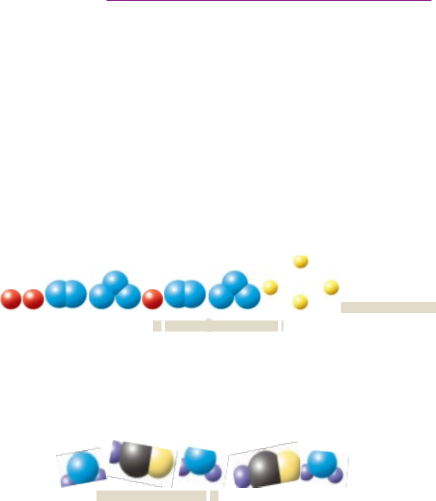 30 PARTE 1 — QUÍMICA GERAL CLASSIFICAÇÃO DA MATÉRIA SUBSTÂNCIAS Como já vimos, um conjunto de átomos com as mesmas propriedades químicas cons titui um elemento químico, e cada substância é caracterizada por uma proporção cons tante desses elementos. A classificação das diferentes substâncias é feita de acordo com sua composição. Substância pura Tipo de matéria formada por unidades químicas iguais, sejam átomos, sejam molécu las, e por esse motivo apresentando propriedades químicas e físicas próprias. As substâncias puras podem ser classificadas como simples ou compostas. Substâncias simples A substância formada por um ou mais átomos de um mesmo elemento químico é classificada como substância pura simples ou, simplesmente, substância simples. gás hélio (He) gás ozônio (O3) fósforo (P4 gás oxigênio (O ) 2) Substâncias compostas Quando as moléculas de determinada substância são formadas por dois ou mais ele mentos químicos, ela é classificada como substância pura composta ou, simplesmente, substância composta. gás cianídrico (HCN) água (H2O) MISTURAS Mistura: é formada por duas ou mais substâncias, cada uma delas sendo denominada componente. Como as misturas apresentam composição variável, têm propriedades — como ponto de fusão, ponto de ebulição, densidade — diferentes daquelas apresentadas pelas subs tâncias quando estudadas separadamente. Unidade 2 — A matéria 31 A maioria dos materiais que nos cercam são misturas. O ar que respiramos, por exemplo, é formado por uma mistura de três tipos principais de gases: • gás nitrogênio (N2) = 78%; • gás oxigênio (O2) = 21%; • gás argônio (Ar) 1%; • gás carbônico (CO2) 0,03%. Observação: Estamos considerando o ar seco, na ausência de poluentes. CEDOC CEDOC Álcool hidratado: formado por álcool etílico (C2H6O) e água (H2O). Tipos de misturas Christof Gunkel Tanto na água encanada como na água mi neral existe um grande número de substâncias dissolvidas. A composição dessa mistura é dada nos rótulos das garrafas de água mineral. Ouro 18 quilates: mistura formada ba sicamente por 75% de ouro (Au) e 25% de cobre (Cu) e prata (Ag). De acordo com o aspecto visual de uma mistura, podemos classificá-la em função do seu número de fases: Fase: cada uma das porções que apresenta aspecto visual homogêneo (uniforme), o qual pode ser contínuo ou não, mesmo quando observado ao microscópio comum. Considere as seguintes misturas: óleo água + açúcar dissolvido água Aspecto visual contínuo: uma única fase. Aspecto visual descontínuo: duas fases. 32 PARTE 1 — QUÍMICA GERAL Dessa maneira, as misturas são classificadas em função de seu número de fases: Mistura homogênea: toda mistura que apresenta uma única fase. As misturas homogêneas são chamadas soluções. Alguns exemplos: água de torneira, vinagre, ar, álcool hidratado, pinga, gasolina, soro caseiro, soro fisiológico e algu mas ligas metálicas. Além dessas, todas as misturas de quaisquer gases são sempre misturas homogêneas. Mistura heterogênea: toda mistura que apresenta pelo menos duas fases. Thales Trigo O granito apresenta três fases: quartzo, feldspato e mica. Alguns exemplos de misturas heterogê neas: água e óleo, areia, granito, madeira, sangue, leite, água com gás. As misturas for madas por n sólidos apresentam n fases, desde que estes sólidos não formem uma liga ou um cristal misto. Independentemente de uma amostra de qualquer material ser uma substância ou uma mistura, ela será denominada um sistema — tudo que é objeto da observação humana — e também poderá ser classificada em função do seu aspecto visual. O aspecto visual contínuo de uma mistura não se restringe apenas à simples percepção a olho nu, mas abrange também a utilização de aparelhos ópticos comuns: os microscópios. O leite é considerado uma mistura hete rogênea. SISTEMAS Aspecto homogêneo a olho nu copo de leite Aspecto heterogêneo ao microscópio líquido branco com gotículas de gordura (amarela) Sistema homogêneo: apresenta aspecto contínuo, ou seja, é constituído por uma única fase. Sistema heterogêneo: apresenta um aspecto descontínuo, ou seja, é constituído por mais de uma fase. Unidade 2 — A matéria 33 Sistemas homogêneos mistura substância pura água Sistema homogêneo (uma fase) Sistemas heterogêneos substância pura mistura gelo: H2O (sólida) água: H2O (líquida) Substância pura: um componente Mistura homogênea: mais de um componente óleo água Sistema heterogêneo (mais de uma fase) Substância pura: um componente em diferentes estados físicos Mistura heterogênea: mais de um componente CONCEITOS FUNDAMENTAIS Elemento químico: é formado por átomos que apresentam propriedades químicas iguais. Exemplos: elementos químicos hidrogênio = símbolo: H oxigênio = símbolo: O Substância: é formada geralmente pela união de dois ou mais átomos. 1. Nível atômico ou "microscópico": • Substâncias simples: são formadas por um único elemento químico. • Substâncias compostas: são formadas por mais de um elemento químico. gás hidrogênio (H gás cianídrico (HCN) 2) gás cloro (Cl2) água (H2O) Mistura: é formada por mais de uma substância, as quais não podem ser representadas por uma única fórmula. Algumas vezes sua composição pode ser indicada pelas fórmu las de suas várias substâncias constituintes. 1. Nível microscópico mistura dos gases hidrogênio (H2) e cloro (Cl2) mistura de água (H2O) e gás ozônio (O3) ➤ 34 ➤ 2. Nível macroscópico: Mistura de gases = mistura homogênea PARTE 1 — QUÍMICA GERAL ar atmosférico (N2 + O2 + Ar) = (nitrogênio + oxigênio + argônio) 3 componentes 1 fase Álcool hidratado = mistura homogênea (H2O + C2H6O) = (água + álcool etílico) 2 componentes 1 fase Mistura de água e granito = mistura heterogênea (H2O + quartzo + feldspato + mica) 4 componentes 4 fases Exercício
