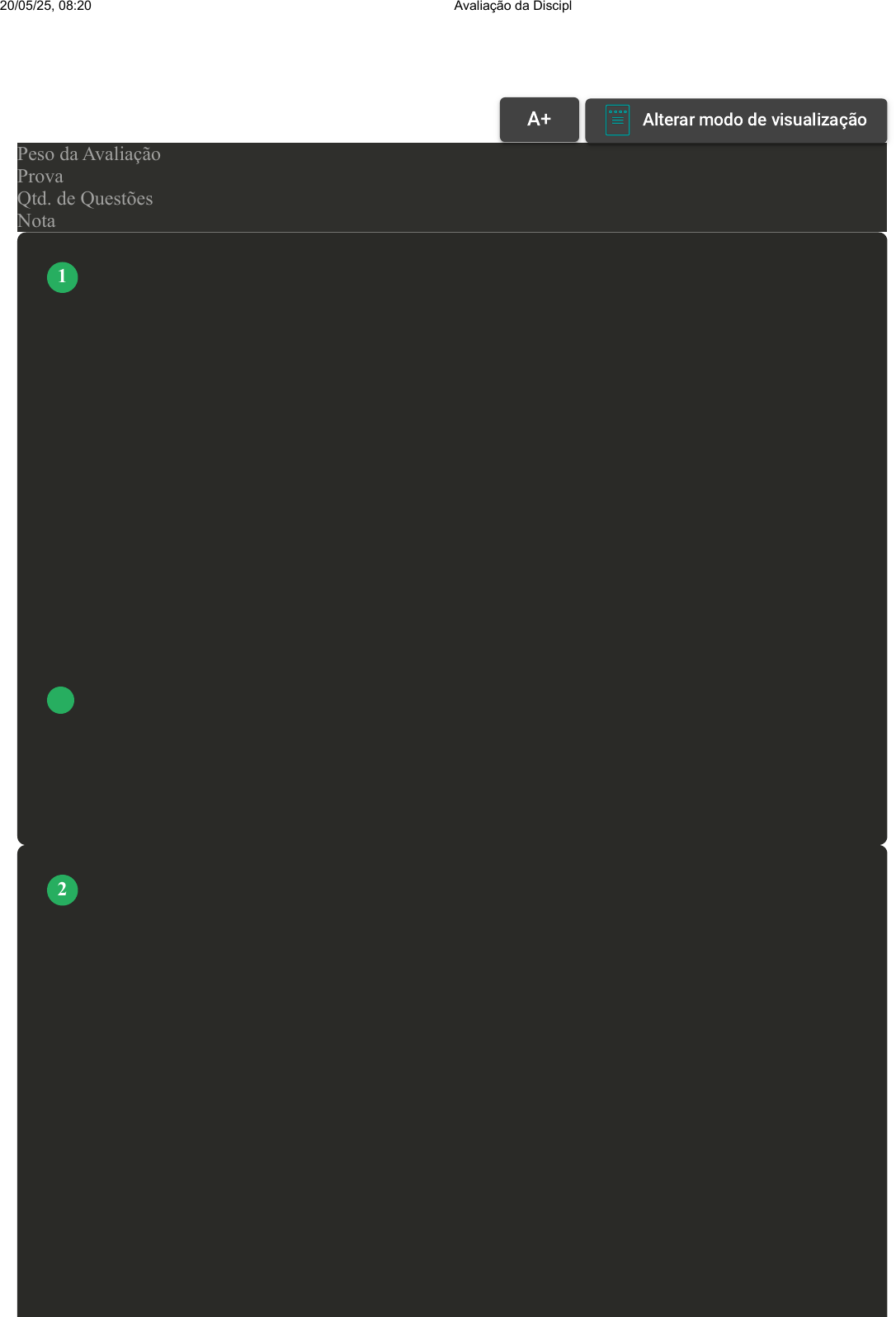Prova Impressa GABARITO | Avaliação da Disciplina (Cod.:1014581) Peso da Avaliação 10,00 Prova 94828308 Qtd. de Questões 20 Nota 10,00 A prática de exercícios aeróbicos é fundamental na promoção da saúde e no desenvolvimento do condicionamento físico, proporcionando diversos benefícios para o corpo e a mente. Áreas como saúde cardiovascular, gestão de peso, aumento da resistência e vantagens mentais são apenas algumas das esferas positivamente influenciadas por esse tipo de atividade física. Reconhecer a importância do treino aeróbico torna-se essencial para aqueles que almejam uma abordagem completa na busca pela melhoria da qualidade de vida. Qual é um dos principais benefícios do treino aeróbico relacionado à saúde cardiovascular? A Aumento da pressão arterial durante o exercício. B Ganho de massa corporal. C Redução do risco de doenças cardiovasculares. D Fortalecimento muscular. As vitaminas hidrossolúveis são nutrientes essenciais solúveis em água, desempenhando papéis vitais no metabolismo celular. Devido à sua natureza solúvel, essas vitaminas não são armazenadas em grandes quantidades no corpo, destacando a importância de sua ingestão regular por meio da dieta. São exemplos de vitaminas hidrossolúveis: I – K. II – B12. III – E. IV – Biotina. Assinale a alternativa correta. VOLTAR A+ Alterar modo de visualização 1 2 20/05/25, 08:20 Avaliação da Disciplina about:blank 1/13 A Somente as opções I e III estão corretas. B Somente as opções II e IV estão corretas. C Somente as opções II e III estão corretas. D Somente as opções e IV estão corretas. Um dos sistema mais utilizados no contexto do exercício físico com certeza é o sistema cardiovascular. Seja em exercício aeróbico, de força ou resistência, o coração tem que estar bem condicionado para conseguir fornecer, por meio dos vasos sanguíneos, os nutrientes e o oxigênio necessários para o trabalho muscular. Sobre o sistema cardiovascular e treinamento físico, avalie as seguintes afirmativas como verdadeiras (V) ou falsas (F). ( ) Correr na rua otimiza a aptidão aeróbica. ( ) O coração bombeia aproximadamente 50 ml de sangue em cada contração. ( ) O chamado “coração direito” recebe sangue dos pulmões e impulsiona para o corpo. ( ) A intensidade, frequência e periodização de treinos permite ao coração melhorar sua capacidade de bombeamento e aumentar sua resistência Assinale e alternativa que apresenta a sequência correta. A V - V - F - V. 3 20/05/25, 08:20 Avaliação da Disciplina about:blank 2/13 B V - F - V - V. C V - F - F - V. D F - V - V - F. Os macronutrientes são nutrientes essenciais necessários em grandes quantidades para o funcionamento saudável do corpo, fornecendo energia e sustentando funções vitais. Em contraste, são necessários em pequenas quantidades e desempenham papéis específicos na regulação de processos fisiológicos e no suporte à saúde. Sobre os macronutrientes e micronutrientes, avalie as seguintes afirmativas como verdadeiras (V) ou falsas (F). ( ) Proteína é um macronutriente. ( ) Vitamina K é um macronutriente. ( ) Carboidrato simples é um micronutriente. ( ) Zinco é um micronutriente. Assinale a alternativa que apresenta a sequência correta. A V - V - F - V. B V - F - F - V. C F - V - V - F. D F - V - F - V. 4 20/05/25, 08:20 Avaliação da Disciplina about:blank 3/13 Os ácidos graxos saturados estão presentes em diversos alimentos. Esses ácidos graxos, quando consumidos em excesso, podem contribuir para problemas de saúde, como o aumento do colesterol LDL, conhecido também como colesterol ruim, pois aumenta o risco de doenças cardiovasculares. Em quais alimentos são encontrados os ácidos graxos saturados? A Semente de girassol. B Carne bovina. C Abacate D Amendoim. As proteínas são importantes na estrutura e função celular. Além de sua função estrutural, as proteínas são fundamentais para processos biológicos como transporte, comunicação e catalisação de reações no organismo. Muito utilizada também em estratégias nutricionais. Sobre as proteínas, avalie as seguintes afirmativas como verdadeiras (V) ou falsas (F). ( ) São usadas na construção muscular. ( ) São muito consumidas como pós-treino para recuperação muscular. ( ) É ideal consumir muita proteína antes de uma maratona. ( ) Uma proteína é formada por várias moléculas de glicose. Assinale a alternativa que apresenta a sequência correta. A V - F - V - V. 5 6 20/05/25, 08:20 Avaliação da Disciplina about:blank 4/13 B V - V - F - V. C V - V - F - F. D V - V - V - F. A elaboração do plano de negócios visa criar uma oportunidade para o empreendedor analisar todas as facetas da nova empresa e refletir sobre elas. Sobre os elementos que compõe o plano de negócios, assinale V para verdadeiro e F para falso nas afirmações que seguem: ( ) A análise de mercado apresenta aspectos importantes sobre a clientela, a concorrência e os fornecedores. ( ) O planejamento financeiro visa diferenciar investimentos de despesas administrativas. ( ) O plano de marketing visa definir o preço do serviço prestado ou da produção de determinado produto. Assinale a alternativa que apresenta a sequência correta de respostas: A F – V – V. B F – V – F. C V – V – V. D V – F – V. A fisiologia é uma ciência importantíssima. Para os profissionais da saúde, dominá-la, bem como seus conceitos e suas aplicações é de grande relevância. No âmbito do exercício físico, é imprescindível o conhecimento na área. Uma vez que o profissional tem o domínio da fisiologia esportiva, o treinos desenvolvidos serão cada vez melhores, mais específicos e trarão resultados muito mais eficientes e selecionados para cada necessidade individual. Sobre os benefícios e resultados do exercício físico em diversas condições clínicas, avalie as seguintes afirmativas como verdadeiras (V) ou falsas (F). 7