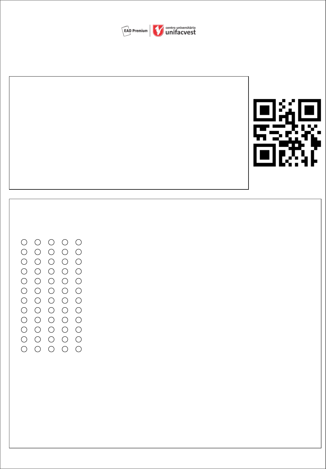 Preencha o gabarito assinalando por completo o campo de resposta. Atente para a coluna de numeração e das