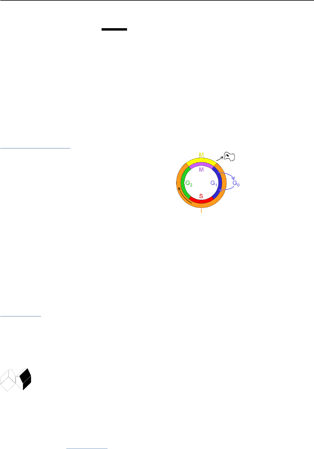 REVISTA DE CIÊNCIA ELEMENTAR 1Revista de Ciência Elementar | doi: 10.24927/rce2014.249 | dezembro de 2014 Ciclo Celular Catarina Moreira Faculdade de Ciências Universidade de Lisboa O Ciclo celular é definido como a sequência de acontecimentos que levam ao o cres- cimento e a divisão da célula, de forma contínua e repetitiva. Considera-se, assim, que o ciclo celular compreende a mitose e o tempo que decorre entre duas mitoses, a interfase (FIGURA 1). FIGURA 1. Esquema do ciclo celular I - interfase; M - mitose. (A duração da fase mitótica em relação às outras fases encontra-se exagerada.) A interfase é um período relativamente longo quando comparado com a mitose, podendo demorar horas, anos ou até perpetuar-se até à morte da célula, sem que nova divisão ocor- ra (ex. maioria das células nervosas e musculares). Durante este período ocorre a síntese de diversos constituintes que conduzem ao crescimento e à maturação celulares, para que a célula esteja preparada se ocorrer uma nova divisão. À interfase correspondem três períodos: G1, S e G2 (alguns organismos unicelulares, como a levedura não possuem G2). • Período G1: a designação desta etapa deriva de ‘gap’ do inglês intervalo, e decorre imediatamente após a mitose. É um período de intensa atividade bioquímica, no qual a célula cresce em volume e o número de organelos aumenta. Ocorre a síntese de RNA no sentido de a célula sintetizar (fabricar) proteínas, lípidos e glícidos. • Período S: de síntese do inglês ‘synthesis’ é caracterizado pela replicação do DNA. Às novas moléculas de DNA associam-se proteínas básicas chamadas histonas, formando-se cromossomas, constituídos por dois cromatídeos ligados pelo centró- mero. • Período G2: síntese de mais proteínas e produção de estruturas membranares que serão utilizadas nas células-filhas resultantes da mitose. A fase mitótica embora varie em aspetos mínimos de uns organismos para os outros, é basicamente semelhante na maior parte das células eucarióticas. Esta fase em que uma célula se divide em duas células-filhas, podem ser considerada 2 processos consecutivos: CITAÇÃO Moreira, C.(2014) Ciclo Celular, Rev. Ciência Elem., V2(04):249 doi.org/10.24927/rce2014.249 EDITOR José Ferreira Gomes, Universidade do Porto RECEBIDO EM 20 de outubro de 2009 ACEITE EM 16 de março de 2010 PUBLICADO EM 31 de dezembro de 2014 COPYRIGHT © Casa das Ciências 2014. Este artigo é de acesso livre, distribuído sob licença Creative Commons com a designação CC-BY-NC-SA 4.0, que permite a utilização e a partilha para fins não comerciais, desde que citado o autor e a fonte original do artigo. rce.casadasciencias.org http://doi.org/10.24927/rce2014.249 http://doi.org/10.24927/rce2014.249 https://creativecommons.org/licenses/by-nc-sa/4.0/ REVISTA DE CIÊNCIA ELEMENTAR 2Revista de Ciência Elementar | doi: 10.24927/rce2014.249 | dezembro de 2014 a Mitose propriamente dita ou a Cariocinese (divisão do núcleo) e a Citocinese (divisão do citoplasma). A mitose pode ser dividida em quatro fases embora seja um processo contínuo: pro- fase, metafase, anafase e telofase (gerando a célebre mnemónica “PRÓximo da META a ANA TELefonou”) (FIGURA 2). Neste processo, associado à divisão de células somáticas, o material genético sintetizado no período S da interfase é dividido igualmente por dois núcleos resultantes. A mitose é regulada por diferentes classes de proteínas, iniciando-se quando uma delas, as ciclinas, atingem determinadas concentração no citoplasma e ativa o fator promotor da mitose (MPF) proteico citoplasmático, que inicia a condensação dos cromossomas. Nas células animais e vegetais a diferença no processo de mitose é a ausência de centró- meros nas células vegetais e, por consequência, a formação do fusos multipolares. Fases da Mitose • Profase: É a etapa mais longa da mitose. Nesta fase a cromatina condensa-se gra- dualmente em cromossomas bem definidos, sendo por vezes visível que são com- postos por dois cromatídeos enrolados um no outro (o DNA já tinha sido duplicado durante a fase S da interfase). Os centrossomas (dois pares de centríolos) afastam- -se para pólos opostos, formando entre eles o fuso acromático (em plantas os fusos são multipolares por ausência de centrómeros). As fibras do fuso acromático são feixes de microtúbulos ligados a complexos proteicos especializados – cinetócoros – desenvolvidos nos centrómeros durante a profase. O nucléolo desintegra-se de- terminando o final da etapa e o invólucro nuclear desagrega-se. • Metafase: os cromossomas atingem a sua máxima condensação. Os cromossomas no centro do fuso, alinham-se no plano equatorial da célula, formando a chamada placa equatorial. Os dois cromatídeos de cada cromossoma estão em posição opos- ta, permitindo que se separem na fase seguinte. • Anafase: divisão pelo centrómero e separação simultânea de todos os cromatídeos (cada cromatídeo passa agora a ser designado por cromossoma). Os cromossomas iniciam a ascensão polar ao longo dos feixes de microtúbulos. No final da Anafase dois conjuntos idênticos de cromossomas encontram-se em cada pólo da célula. • Telofase: inicia-se a organização dos núcleos das células-filhas. Forma-se o invólu- cro nuclear em torno dos cromossomas, a partir do retículo endoplasmático rugoso. As fibras do fuso acromático desorganizam-se, os cromossomas começam a des- condensar, tornando-se novamente indistintos. O nucléolo é reconstituído e cada célula-filha entra na interfase. Terminada a divisão nuclear (cariocinese) geralmente inicia-se a divisão citoplasmática (citocinese), completando-se desta forma a divisão celular que originará duas células-filhas. Nas células animais (sem parede celular) o início da citocinese é marcado pelo surgimento de uma constrição da membrana citoplasmástica na zona equatorial da cé