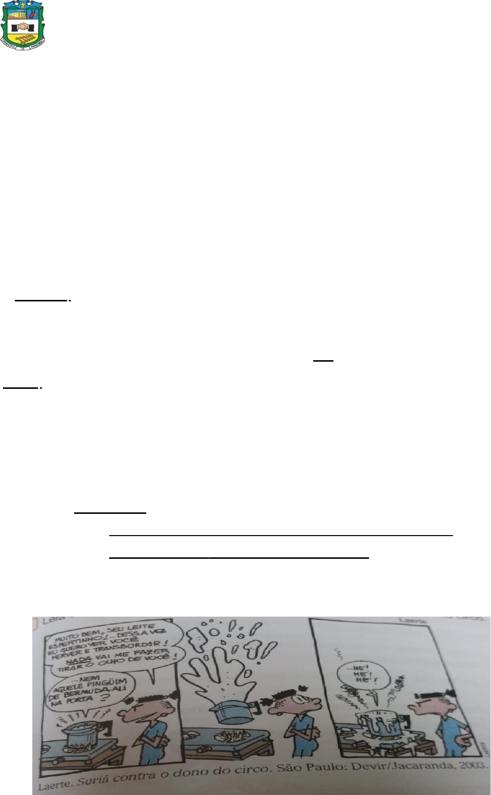 ( \\ )Estado do Rio de Janeiro. Prefeitura Municipal de Paracambi. Secretaria Municipal de Educação e Esporte. E. M. MARGARIDA ALVES PROFESSORAS: CHRISTIANE E IVONETE 4º ANO DE ESCOLARIDADE TURMAS: 140 / 141 DISCIPLINA: PORTUGUÊS ATIVIDADE NÚMERO 16 OBJETIVOS: · IDENTIFICAR EM TEXTOS O VOCATIVO; · REVISAR CONTEÚDOS DAS AULAS ANTERIORES. CONCEITOS: · TIRINHA · VOCATIVO · REVISÃO; PROJETO: “ CULTIVANDO LAÇOS, RECONHECENDO VALORES EM CASA OU NA ESCOLA A PARTIR DA LEITURA”. O ato de ler contribui no processo mental para o desenvolvimento da inteligência. Leia a tira da personagem Suriá, uma garota que trabalha no circo. Texto I: 1 - Com quem Suriá conversa no primeiro quadrinho? 2 – Que expressão ela usa para chamar seu interlocutor (aquele com quem se conversa)? 3 – Por que a garota ficou brava no último quadradinho? 4 – Nesse último quadradinho, como o leite poderia se dirigir a Suriá? Complete a frase: He! He! He! Pequei você . Na frase, o termo ( palavra ou expressão ) usado para se dirigir a quem se fala, como um chamamento, é o vocativo. O vocativo é bastante usado em quadrinhos, em cartas ou e – mails, em diários, em preces e orações ( no discurso religioso ). O vocativo pode aparecer no começo, no meio ou no fim da frase e é separado dos outros termos gramaticais por vírgula. Exemplos: Professora, posso ir ao banheiro? ( começo da frase ) Você sabia, Lina, que jurutaí é uma ave? ( meio da frase ) Feliz aniversário, Luís! ( fim da frase ) 5 - Sublinhe os vocativos. a - Querido diário: Quando eu era pequena, ficava olhando minha irmã, a Júlia, escrevendo num caderninho e sentia ciúme. Ficava imaginando sobre o que ela escrevia. b - Me empresta a bicicleta, mano? Só um pouquinho, vai! c - Bom dia, amiga! Como você está? d - Você, meu filho, precisa dormir mais cedo! Assim, com sono, não vai conseguir acompanhar a aula! e - Ei, pessoal, vamos dar um mergulho? Releia este trecho de “As estrelas nos olhos dos meninos”. [ ... ] As mulheres começaram a gritar, e os meninos, surpreendidos, correram. 6 - Escreva o que você imagina que as mães podem ter gritado para os filhos ao surpreendê – los. Use um vocativo. 7 - Leia um trecho do livro “ Uma fada veio me visitar”. Neste trecho, a fada conversa com a menina na cozinha, tentando convencê – la de que é mesmo uma fada. _ Você não vai conseguir sair. Eu dei um sopro mágico para trancar a porta para a gente poder conversar direito [ ... ]. _ Para! Você tá me assustando! Manhêêê! Thalita Rebouças. Uma fada veio me visitar. Rio de Janeiro: Rocco, 2007. a - Copie do texto o vocativo. b - Por que o vocativo foi escrito dessa forma? 8 - Circule na tirinha de Calvin o vocativo: Agora que aprendemos que o vocativo está presente nas histórias em quadrinhos, vamos nos divertir com as histórias da turma da Mônica. ESTOU COM SAUDADES! Estado do Rio de Janeiro. Prefeitura Municipal de Paracambi. Secretaria Municipal de Educação e Esporte. E. M. MARGARIDA ALVES PROFESSORAS: CHRISTIANE E IVONETE 4º ANO DE ESCOLARIDADE TURMAS: 140 / 141 DISCIPLINA: MATEMÁTICA ATIVIDADE NÚMERO 16 OBJETIVOS: · EXPLORAR SITUAÇÕES QUE ENVOLVAM DIVISÕES; · PERCEBER QUE A DIVISÃO É UMA OPERAÇÃO INVERSA DA MULTIPLICAÇÃO. CONCEITOS: · DIVISÃO PROJETO: “ CULTIVANDO LAÇOS, RECONHECENDO VALORES EM CASA OU NA ESCOLA A PARTIR DA LEITURA”. A leitura é fundamental para entender e solucionar os problemas matemáticos No pátio da escola há 24 crianças. A diretora pediu para que as crianças formassem filas com 4 alunos. Como você vê, os alunos se distribuíram em 6 filas, com 4 alunos em cada uma. Para repetir uma quantidade em partes iguais, fazemos uma divisão. 24 alunos divididos por 4 é igual a 6. 24 : 4 = 6 Dividendo divisor quociente A divisão pode ser representada das seguintes maneiras: O sinal de dividir é ou : ( lê – se: dividido por ) 1 - Reparta igualmente e complete. A - 6 peixinhos em 3 aquários 6 : 3 = peixinhos em cada aquário. b – 8 piões entre 2 meninos 8 : 2 = piões para cada menino. c – 12 laranjas em 3 caixas 12 : 3 = laranjas em cada caixa. Multiplicação e divisão são operações matemáticas inversas. Posso utilizar a tabuada de multiplicação para realizar as divisões. ( 2 x 2 = 4 )4 : 2 = 2 2 - Continue resolvendo as multiplicações e divisões. 2 x 3 = 2 x 4 = 2 x 5 = 2 x 6 = 6 : 2 = 8 : 2 = 10 : 2 = 12 : 2 = 2 x 7 = 2 x 8 = 2 x 9 = 2 x 10 = 14 : 2 = 16 : 2 = 18 : 2 = 20 : 2 = 3 - Faça os exercícios como o exemplo: ( 3 x 3 = ) ( 2 x 5 = ) ( 4 x 3 = ) 4 – Forme grupos para dividir igualmente: a - De 5 em 5. b – De 3 em 3. c - De 4 em 4. 5 - Leia com bastante atenção e solucione os problemas: a) Laura quer dividir igualmente 12 revistas em quadrinhos para 3 amigas. Quantas revistas cada uma vai receber? ( 12 Cálculo 3 )Resposta b) Paulo quer incentivar o hábito da leitura entre seus familiares, dividiu 16 livros entre seus 2 primos. Quantos livros cada um vai receber? ( Cálculo )Resposta PARABÉNS, VOCÊ ESTÁ INCRÍVEL EM SEUS ESUDOS! Estado do Rio de Janeiro. Prefeitura Municipal de Paracambi. Secretaria Municipal de Educação e Esporte. E. M. MARGARIDA ALVES PROFESSORAS: CHRISTIANE E IVONETE 4º ANO DE ESCOLARIDADE TURMAS: 140 / 141 DISCIPLINA: HISTÓRIA ATIVIDADE NÚMERO 16 OBJETIVOS: · COMPREENDER A FUNÇÃO SOCIAL DO MUSEU; · VALORIZAR DIFERENTES CULTURAS E PRESERVAR, DIVULGAR O PATRIMÔNIO; · PERCEBER A IMPORTÂNCIA DA CULTURA SERTANEJA PARA A IDENTIDADE NACIONAL. CONCEITOS: · MUSEU DO CAÍS DO SERTÃO. PROJETO: “ CULTIVANDO LAÇOS, RECONHECENDO VALORES EM CASA OU NA ESCOLA A PARTIR DA LEITURA” A leitura é um dos pilares na formação do conhecimento e do desenvolvimento do estudante. Texto I: Museu do Caís do Sertão Para conhecer hábitos e costumes do passado, podemos visitar um museu. O acervo dos museus, acumulado, doado ou adquirido ao longo do tempo, ajuda – nos a entender o cotidiano, o trabalho