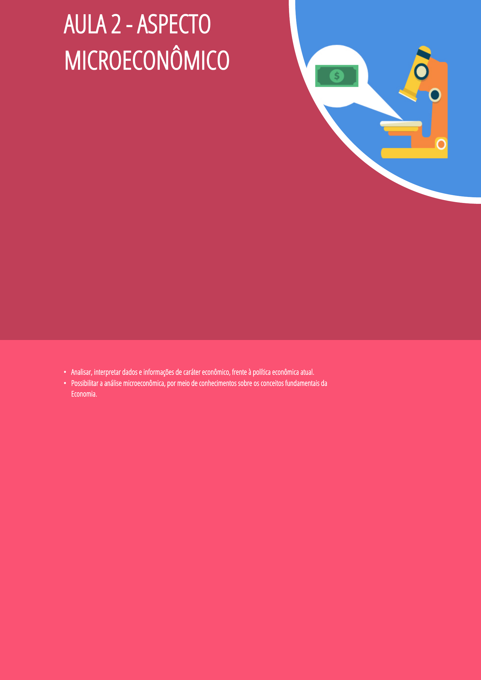 AULA 2 - ASPECTO MICROECONÔMICO • Analisar, interpretar dados e informações de caráter econômico, frente à política econômica atual. • Possibilitar a análise microeconômica, por meio de conhecimentos sobre os conceitos fundamentais da Economia. CONTEXTUALIZANDO Seja Bem-vindo(a)! Prezado(a), Aluno(a): Após você ter vencido as tarefas da Primeira Aula e ter tido a oportunidade de compreender alguns dos principais fundamentos sobre Economia como Ciência Social, é com grande satisfação que apresento a você mais uma Aula da Disciplina Economia. Você certamente já ouviu falar em Microeconomia, não é verdade? Mas o que vem a ser a Microeconomia? Quais são as estruturas de mercado? Estas e outras perguntas, serão respondidas ao final desta Aula. O mercado está cada vez mais competitivo. Diariamente, os agentes econômicos (consumidores, produtores e governo) se interagem por meio do consumo, de bens e de serviços e da produção ao utilizarem-se de fatores de produção, que, apesar de escassos, prestam-se aos usos alternativos. Para compreendermos o aspecto microeconômico, o qual estuda o comportamento individual dos agentes econômicos, estudaremos: • Os Conceitos básicos da microeconomia. • O Mercado e suas estruturas de concorrência. • O mercado e suas Leis de Demanda e de Oferta. • O Equilíbrio de mercado. O desenvolvimento das atividades programadas para esta Aula proporcionará a você, caro(a), Aluno(a), os princípios fundamentais para a compreensão do comportamento individual dos agentes econômicos. Vamos ao trabalho! Mapa mental panorâmico ASPECTO MICROECONÔMICO 1.1 CONCEITOS BÁSICOS DE MICROECONOMIA 1.2 ESTRUTURAS DE MERCADO 1.3 AS LEIS DE MERCADO: DEMANDA E OFERTA 1.4 EQUILÍBRIO DE MERCADO 1.1 CONCEITOS BÁSICOS DE MICROECONOMIA A escassez é uma lei. É o objeto central da Economia que está na discrepância entre as necessidades físicas e não-físicas ou desejos das pessoas e a disponibilidade dos meios para satisfazê-los. Constatamos, então, que a existência terrestre é constituída de incessantes momentos de escolhas. Daí se justifica a necessidade de estudar Economia, em seus dois aspectos fundamentais (Figura 1), para melhor compreender os acontecimentos do sistema econômico no cotidiano. Figura 1 - Aspectos de estudo da Economia Fonte: Elaborado pelo Autor. Os aspectos microeconômicos dizem respeito à análise de caráter individual dos agentes econômicos, isto é, das famílias, das empresas e do governo; e, como eles se interagem no mercado. Os aspectos macroeconômicos estão relacionados aos agregados, ou seja, ao conjunto da Economia, que será objeto de estudo da Aula 6. A Microeconomia, em termos de teoria, segundo Salvatore (1984, p. 2), “estuda o comportamento econômico das unidades decisórias individuais como consumidores, proprietários de recursos e firmas, em um sistema de livre empresa”. Os agentes econômicos se interagem no mercado, via produção, distribuição e consumo (ROSSETTI, 1997). No passado, mercado era visto sob uma conotação físico-geográfica. Era tido como o local onde os mercadores se encontravam para a realização das trocas (escambo) de mercadorias. Daí a origem do termo mercado municipal, supermercado, mercadinho da esquina. Um local preestabelecido onde um comprador se encontra com um vendedor. No entanto, hoje, no mundo contemporâneo, mercado diz respeito a uma abstração, em que prevalecem as leis de demanda e oferta. Isso quer dizer que se não há procura para um determinado produto, não haverá mercado para esse bem. Simplesmente, não há conotação geográfica, mas apenas o confronto das forças de demanda e oferta. O Quadro 1 ilustra alguns tipos de mercados existentes. Quadro 1 - Alguns tipos de Mercado Fonte: Adaptada de (ROSSETTI, 1997). De uma forma simplificada, podemos demonstrar em uma ilustração a inter-relação dos mercados de Bens e Serviços (Figura 2). Figura 2: Mercado de Bens e Serviços simplificado Fonte: Elaborado pelo Autor 1.2 ESTRUTURAS DE MERCADO Se fôssemos classificar os mercados quanto à concorrência, a priori, poderíamos dizer que há apenas dois tipos: aqueles de concorrência perfeita e os de concorrência imperfeita. Porém, vamos classificá-los com base em seis principais características (ROSSETTI, 1997): 1. Número de vendedores 2. Produto 3. Controle sobre preços 4. Concorrência extra preço O enfoque microeconômico é individual. Se não há demanda por máquina de datilografia, quer dizer que não há mercado; assim, não adianta produzi-la. 5. Condições de ingresso 6. Informações Vamos apresentar quatro principais estruturas: concorrência perfeita; monopólio, oligopólio e concorrência monopolística (Quadro 2). Quadro 2 - Estruturas de Mercado Fonte: Adaptado de (ROSSETTI, 1997). A organização de Mercado de Concorrência Perfeita caracteriza-se como aquela em que se encontra perfeitamente atomizada. Atomização de mercado diz respeito à composição de um número muito grande de vendedores e compradores, cuja situação impossibilita o controle dos preços por quem quer que seja. Os produtos são homogêneos, nesse tipo de estrutura, e, há perfeita mobilidade dos recursos com extrema transparência de informações (CUNHA, 2000). Dificilmente, encontraremos exemplos que atendam, ao rigor, às características em sua totalidade, dado ao caráter. Alguns dos mercados de produtos agrícolas podem ser considerados como uma aproximação de exemplos de concorrência perfeita, pois há atomização, grande padronização dos produtos, enorme mobilidade dos agentes econômicos (compradores e vendedores), dos recursos e dos produtos (CARVALHO, 1996; ROSSETTI, 1997). Os exemplos mais próximos são os mercados dos produtos agrícolas. O monopólio puro é como devemos chamar essa estrutura, segundo ao rigor das características, em oposição à concorrência perfeita. Essa organização de mercado diz respeito