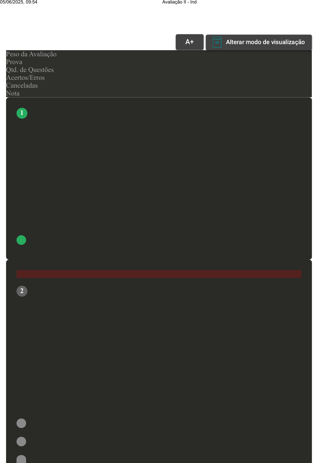 Prova Impressa GABARITO | Avaliação II - Individual (Cod.:1023040) Peso da Avaliação 2,00 Prova 100958145 Qtd. de Questões 10 Acertos/Erros 7/0 Canceladas 3 Nota 10,00 As órteses são dispositivos biomecânicos personalizados, indicados para pacientes com diversas condições que acometem o sistema musculoesquelético. Ao oferecer suporte, controle de movimento e alinhamento, as órteses contribuem para a estabilidade articular, redução da dor e otimização da função, sendo essenciais nos processos de tratamento e reabilitação ortopédica. Assinale a alternativa que indica o principal objetivo das órteses no tratamento de lesões musculares: A Melhorar a circulação sanguínea. B Restaurar a mobilidade total. C Reduzir a inflamação local. D Corrigir deformidades ósseas. E Prevenir novas lesões. Atenção: Esta questão foi cancelada, porém a pontuação foi considerada. A acessibilidade das cadeiras de rodas elétricas em ambientes urbanos é frequentemente limitada por obstáculos como calçadas altas, falta de rampas e espaços estreitos. Isso pode afetar significativamente a mobilidade e a independência dos usuários. Fonte: adaptado de: SURGENT, O. J. et al. Balance and the brain: A review of structural brain correlates of postural balance and balance training in humans. Gait & Posture, Amsterdã, v. 71, p. 245-252, jun. 2019. Disponível em: https://www.sciencedirect.com/science/article/pii/S0966636218317971. Acesso em: 14 jan. 2024. Considerando o texto, analise as afirmativas a seguir: I. A falta de acessibilidade urbana não impacta a independência dos usuários. II. A acessibilidade das cadeiras de rodas elétricas pode ser prejudicada por falta de rampas. III. Os obstáculos urbanos frequentemente limitam a mobilidade dos usuários de cadeiras de rodas elétricas. IV. Espaços estreitos não representam um problema significativo para usuários de cadeiras de rodas elétricas. É correto o que se afirma em: A II e IV, apenas. B I, II, III e IV. C VOLTAR A+ Alterar modo de visualização 1 2 05/06/2025, 09:54 Avaliação II - Individual about:blank 1/6 I, apenas. D I, II e III, apenas. E III e IV, apenas Atenção: Esta questão foi cancelada, porém a pontuação foi considerada. As órteses são dispositivos essenciais usados para fornecer suporte, estabilidade e correção a partes do corpo afetadas por lesões ou deficiências, desempenhando um papel fundamental na melhoria da funcionalidade dos usuários. Estes dispositivos são projetados para aliviar a dor, prevenir deformidades e facilitar a recuperação em uma variedade de condições ortopédicas, neurológicas e musculares. Fonte: adaptado de: SMITH, R. T.; MICHAEL, J.; BOWKER, J. H. Órteses e próteses: fundamentos da reabilitação. 3. ed. Rio de Janeiro: Editora Científica, 2004. Considerando o texto e as informações a respeito das órteses como dispositivos de suporte e correção para partes do corpo, analise as afirmativas a seguir: I. Órteses são utilizadas apenas para fins estéticos. II. Órteses não oferecem suporte ou estabilidade para partes do corpo. III. Órteses podem ser prescritas para corrigir deformidades musculoesqueléticas. IV. Órteses são dispositivos que não contribuem para a funcionalidade dos usuários. É correto o que se afirma em: A I, II, III e IV. B I, apenas. C II e IV, apenas. D I, II e III, apenas. E III e IV, apenas. A cadeira de rodas não é um produto genérico, mas sim um equipamento adaptado às necessidades específicas de cada usuário. A escolha e a personalização envolvem uma série de fatores, como as medidas corporais, o estilo de vida e o ambiente, visando proporcionar conforto, segurança e funcionalidade. Fonte: adaptado de: SMITH, R. O. Tecnologia Assistiva: Princípios e Prática. São Paulo: Editora Roca, 2002. Quais dos seguintes fatores são considerados na escolha e adaptação de cadeiras de rodas? A Tempo de garantia oferecido. B Cor preferida do usuário. Revisar Conteúdo do Livro 3 Revisar Conteúdo do Livro 4 05/06/2025, 09:54 Avaliação II - Individual about:blank 2/6 C Peso e altura do usuário. D Marca da cadeira de rodas. E Popularidade do modelo entre os usuários. As órteses são aliadas importantes na recuperação e qualidade de vida de pessoas com lesões ou condições que afetam o movimento. Ao oferecer suporte e estabilidade, esses dispositivos ajudam a reduzir a dor, prevenir deformidades e permitir que os pacientes retomem suas atividades diárias com mais segurança e independência. Fonte: adaptado de: HSU, J. D.; MICHAEL, J. W.; FISK, J. R. AAOS Atlas of Orthoses and Assistive Devices. 1. ed. St. Louis: Mosby, 2008. Qual a principal função das órteses na terapia ocupacional? A Substituir membros amputados. B Auxiliar na mobilidade de idosos. C Proteger contra infecções. D Corrigir deformidades estruturais. E Aliviar dores crônicas. Atenção: Esta questão foi cancelada, porém a pontuação foi considerada. A tecnologia de órteses e próteses tem evoluído significativamente, permitindo a personalização de dispositivos para atender às necessidades específicas de cada paciente. Com base nas informações apresentadas sobre órteses e próteses, analise as afirmativas a seguir: I. Próteses podem ser externas ou internas, dependendo da aplicação clínica. II. Órteses são dispositivos utilizados principalmente para substituir membros perdidos. III. A escolha entre órteses e próteses depende exclusivamente da preferência estética do paciente. IV. Ambos os tipos de dispositivos visam melhorar a funcionalidade e a qualidade de vida dos pacientes. É correto o que se afirma em: A II e III, apenas. B III e IV, apenas. C II, III e IV, apenas. D I e IV, apenas. E I, II e III, apenas. 5 6 05/06/2025, 09:54 Avaliação II - Individual about:blank 3/6 O Design Universal promove a inclusão, projetando espaços e produtos que atendam às necessidades de todos, eliminando a necessidade de adaptações