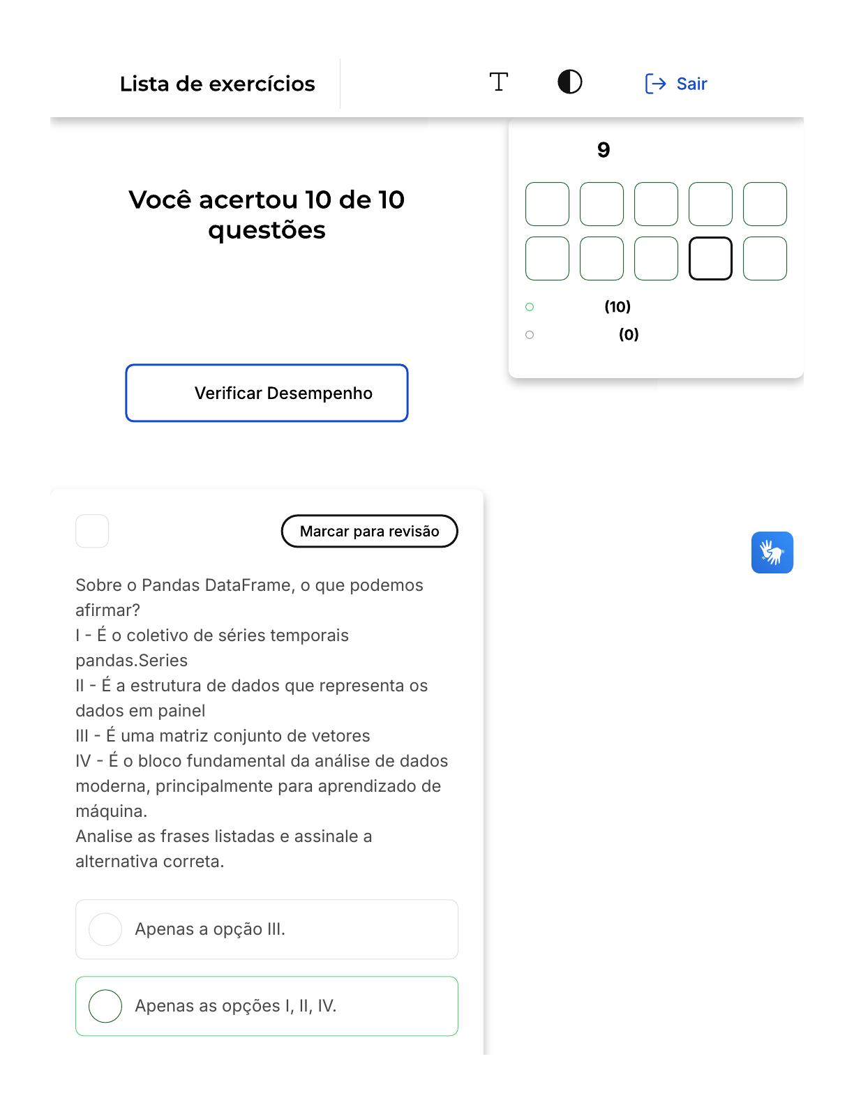 A afirmação I é correta, pois o DataFrame