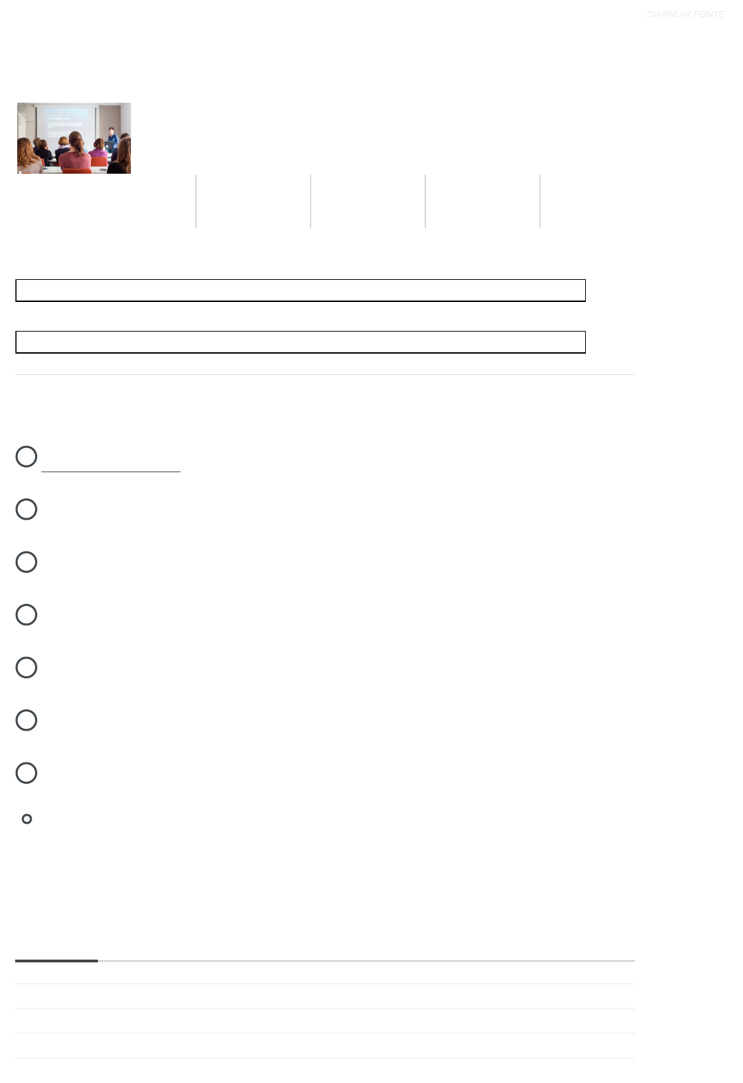 Comunicação Não Violenta, Escuta Ativa e Linguagem Corporal MANUAL MANUAL CRONOGRAMA MANUAL ANTIPLÁGIO PLANO DE ENSINO 17% 75% Andamento Geral Andamento do Tópico MEU DESEMPENHO MENU PÁGINA INICIAL / MEUS CURSOS / COMUNICAÇÃO NÃO VIOLENTA, ESCUTA ATIVA E LINGUAGEM CORPORAL / UNIDADE DE ENSINO 1 / U1 - ATIVIDADE DE APRENDIZAGEM Iniciado em quarta, 4 jun 2025, 13:04 Estado Finalizada Concluída em quarta, 4 jun 2025, 13:08 U1 - Atividade de Aprendizagem Unidade de Ensino 1 Unidade de Ensino 2 Unidade de Ensino 3 Unidade de Ensino 4 Atividade Discursiva Avaliação Avalie sua disciplina Minhas Mensagens Meus Pontos Avaliação de aula Contatos do curso Prova digital [ 1 ] IR PARA O CONTEÚDO [ 2 ] IR PARA O MENU SOBRE A ACESSIBILIDADE ALTO-CONTRASTE AUMENTAR FONTE DIMINUIR FONTE 04/06/2025, 13:15 U1 - Atividade de Aprendizagem https://www.avaeduc.com.br/mod/quiz/review.php?attempt=10580804 1/11 https://www.avaeduc.com.br/mod/url/view.php?id=3323363 https://www.avaeduc.com.br/mod/url/view.php?id=3323364 https://www.avaeduc.com.br/mod/url/view.php?id=3323365 https://www.avaeduc.com.br/mod/url/view.php?id=3323366 https://www.avaeduc.com.br/mod/pde/view.php?id=3323367 https://www.avaeduc.com.br/ https://www.avaeduc.com.br/ https://www.avaeduc.com.br/course/view.php?id=9680 https://www.avaeduc.com.br/mod/quiz/view.php?id=3323370 https://www.avaeduc.com.br/course/view.php?id=9680&topic=163629 https://www.avaeduc.com.br/course/view.php?id=9680&topic=163630 https://www.avaeduc.com.br/course/view.php?id=9680&topic=163631 https://www.avaeduc.com.br/course/view.php?id=9680&topic=163632 https://www.avaeduc.com.br/course/view.php?id=9680&topic=163633 https://www.avaeduc.com.br/course/view.php?id=9680&topic=163634 https://www.avaeduc.com.br/course/view.php?id=9680&topic=163635 https://www.avaeduc.com.br/local/mail/view.php?t=inbox javascript:void(0); javascript:void(0); javascript:void(0); javascript:void(0); https://www.avaeduc.com.br/mod/page/view.php?id=1 https://www.avaeduc.com.br/mod/page/view.php?id=1 a. Os prejuízos ocasionados pela má comunicação reduzem a eficiência e eficácia da comunicação no trabalho e nas relações do dia a dia. b. Os ruídos na comunicação são evitados quando o emissor segue um passo a passo. c. Enviar mensagens escritas aos colaboradores da empresa é uma forma de informá-los sobre os acontecimentos da empresa. d. Os ruídos sonoros podem ser evitados com tampão de ouvido, facilitando a comunicação interpessoal. e. Quando a comunicação oral está com ruído, ainda é possível usar a escrita e a não verbal, para evitar ruídos. Tempo empregado 4 minutos 27 segundos Avaliar 7,00 de um máximo de 10,00(70%) Questão 1 Correto Atingiu 1,00 de 1,00 Os emissores são os principais responsáveis pelos ruídos da comunicação. Para evitá-los, os emissores devem ter cuidado na hora de se comunicar, bem como promover e solicitar o feedback, que consiste em dar um retorno na comunicação. Sobre este contexto, assinale a alternativa CORRETA. Escolha uma: [ 1 ] IR PARA O CONTEÚDO [ 2 ] IR PARA O MENU SOBRE A ACESSIBILIDADE ALTO-CONTRASTE AUMENTAR FONTE DIMINUIR FONTE 04/06/2025, 13:15 U1 - Atividade de Aprendizagem https://www.avaeduc.com.br/mod/quiz/review.php?attempt=10580804 2/11 https://www.avaeduc.com.br/mod/page/view.php?id=1 https://www.avaeduc.com.br/mod/page/view.php?id=1 a. I-1; II-3; III-5; IV-4. b. I-1; II-4; III-5; IV-2. c. I-2; II-3; III-4; IV-1. d. I-3; II-1; III-2; IV-5. e. I-3; II-5; III-1; IV-2. Questão 2 Incorreto Atingiu 0,00 de 1,00 Os ruídos são inevitáveis durante a comunicação. No entanto, é possível detectar seus tipos, para que eles possam ser atenuados no decorrer da comunicação interpessoal. Os quatro tipos de ruídos estão relacionados no quadro a seguir. Analise as informações da tabela e estabeleça a correspondência entre os conteúdos das colunas A e B. Agora, assinale a alternativa que apresenta a associação CORRETA entre as colunas. Escolha uma: [ 1 ] IR PARA O CONTEÚDO [ 2 ] IR PARA O MENU SOBRE A ACESSIBILIDADE ALTO-CONTRASTE AUMENTAR FONTE DIMINUIR FONTE 04/06/2025, 13:15 U1 - Atividade de Aprendizagem https://www.avaeduc.com.br/mod/quiz/review.php?attempt=10580804 3/11 https://www.avaeduc.com.br/mod/page/view.php?id=1 https://www.avaeduc.com.br/mod/page/view.php?id=1 a. a responsabilidade da comunicação é de quem responde primeiro, logo, o receptor é o maior responsável pelo sucesso da comunicação interpessoal. b. a comunicação interpessoal, quando começa com falhas, será mantida do mesmo modo até o final do processo. c. é melhor depender do outro indivíduo no processo da comunicação do que ter que tomar a iniciativa e não conseguir . d. a boa compreensão das diferenças de pensamento entre as pessoas é uma das formas de construção de uma comunicação interpessoal eficaz. e. a discordância representa uma falha na comunicação interpessoal e precisa ser resolvida para o bom relacionamento entre as pessoas envolvidas. Questão 3 Correto Atingiu 1,00 de 1,00 O processo de comunicação interpessoal é dinâmico: depende do grupo social ao qual estamos vinculados e da fase da vida em que estamos. Nossos interesses mudam e a comunicação se movimenta da mesma forma. Assinale a alternativa que completa a frase a seguir de forma CORRETA. Aprimorar as comunicações interpessoais requer um esforço para que cada indivíduo cumpra a sua parte na comunicação, pois: Escolha uma: [ 1 ] IR PARA O CONTEÚDO [ 2 ] IR PARA O MENU SOBRE A ACESSIBILIDADE ALTO-CONTRASTE AUMENTAR FONTE DIMINUIR FONTE 04/06/2025, 13:15 U1 - Atividade de Aprendizagem https://www.avaeduc.com.br/mod/quiz/review.php?attempt=10580804 4/11 https://www.avaeduc.com.br/mod/page/view.php?id=1 https://www.avaeduc.com.br/mod/page/view.php?id=1 a. I-2; II-5; III-4; IV-1; V-3. b. I-3; II-1; III-2; IV-5; V-4. c. I-1; II-3; III-4; IV-5; V-2. d. I-1; II-4; III-5; IV-2; V-3. e. I-3; II-5; III-1; IV-2; V-4. Questão 4 Correto A