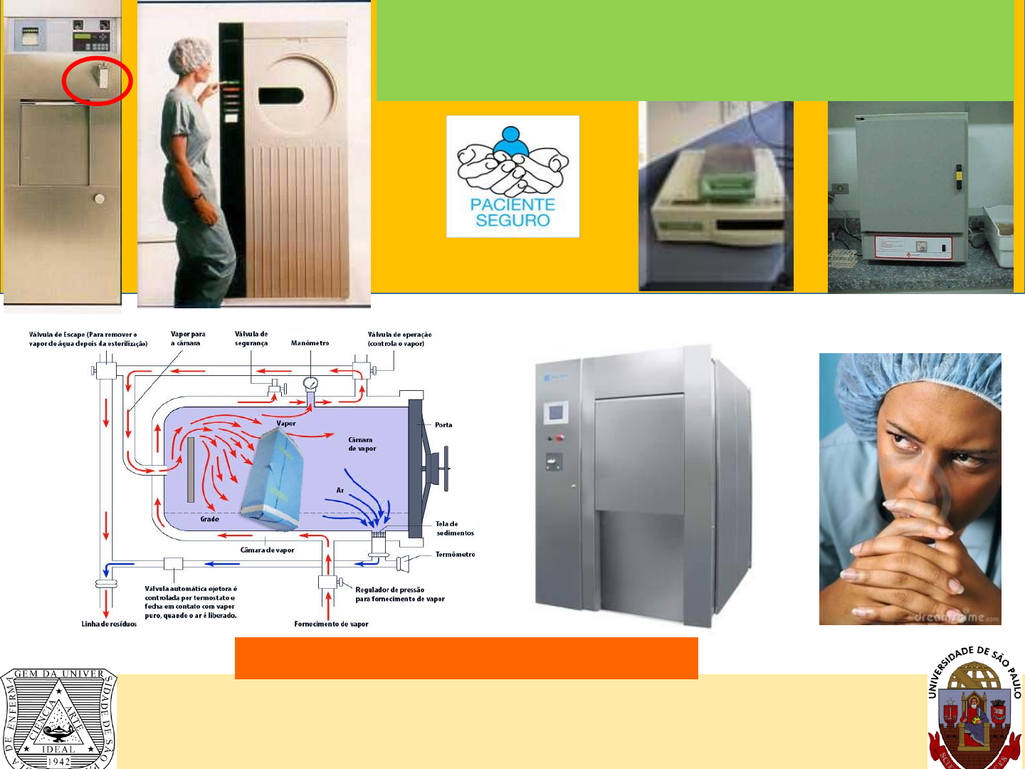 Profª Dra. Kazuko Uchikawa Graziano Coordenadora Pedagógica do Curso MBA/CME - INESP Professora Titular Sênior do Departamento ENC -EEUSP Brasília, 15 de setembro de 2017 ESTERILIZAÇÃO DE MATERIAIS TERMORRESISTENTES http://images.google.com.br/imgres?imgurl=http://www.midcentral.co.nz/hospital/dental/images/Dental-Photo-Statin_small.jpg&imgrefurl=http://www.midcentral.co.nz/hospital/dental/School-Dental-Equip.htm&h=160&w=120&sz=5&hl=pt-BR&start=1&tbnid=wgSinB2qyle0ZM:&tbnh=98&tbnw=74&prev=/images?q=autoclave+statin&svnum=10&hl=pt-BR&lr= 12º CONGRESSO BRASILEIRO DE ENFERMAGEM EM CENTRO CIRÚRGICO, RECUPERAÇÃO ANESTÉSICA E CENTRO DE MATERIAL E ESTERILIZAÇÃO – SOBECC • TERMORRESISTENTES: autoclavação estufa RDC 15 DE 15/3/2012 TERMOSSENSÍVEIS AUTOMATIZADOS: MANUAL: (agentes químicos) Óxido de etileno Glutaraldeído Vapor a baixa Ácido peracético temperatura Ortoftaldeído e formaldeído Gás/Plasma de RDC Nº 8 de 27/2/2009 peróxido de hidrogênio Ozônio (TSO3/BrasilOzônio) ????? Métodos de esterilização Art. 92 Não é permitido o uso de estufas para a esterilização de produtos para saúde. gravitacional ≥ 100l http://images.google.com.br/imgres?imgurl=http://www.northmed.com.br/sercon/autoclav/authosp1.jpg&imgrefurl=http://www.northmed.com.br/sercon/autoclav/autocl02.html&h=278&w=144&sz=10&hl=pt-BR&start=1&tbnid=W4jdjRJ6m3wMIM:&tbnh=109&tbnw=56&prev=/images?q=autoclave+hospitalar&svnum=10&hl=pt-BR&lr= 12º CONGRESSO BRASILEIRO DE ENFERMAGEM EM CENTRO CIRÚRGICO, RECUPERAÇÃO ANESTÉSICA E CENTRO DE MATERIAL E ESTERILIZAÇÃO – SOBECC Uma pergunta: você confiaria num dentista que descontamina o instrumental em estufa? A) SIM! C) DEPENDE! B) NÃO! 170ºC-1 hora 160ºC-2horas PONTO FRIO T ºC 1 2 3 4 5 6 170 C – 1hora 160 C - 2horas 120º c – 6horas RECOMENDAÇÕES : RESTRINGIR PARA PÓS E ÓLEOS. NÃO UTILIZAR O CENTRO GEOMÉTRICO. CARGA UNIFORME E DE PEQUENA QUANTIDADE VALIDAR O PROCESSO COM A CARGA MAIS PESADA. NÃO ABRIR A ESTUFA DURANTE O CICLO. USAR RECIPIENTES DE ALUMÍNIO. CARREGAR A ESTUFA ANTES DE LIGAR O EQUIPAMENTO. ESTUFA Avaliação da eficácia da estufa de Pasteur como equipamento esterilizante em consultório odontológico do Distrito Central de Goiânia-Go. (Tavares, Tipple, 2005) • n = 101 consultórios odontológicos • 46 (45,5%) indicadores biológicos positivos !!!!!!!! • Disposição incorreta dos pacotes; excesso de carga; abertura intermitente da porta da estufa durante o ciclo; sem seguimento do tempo e temperatura preconizados e equipamentos sem manutenção. http://www.google.com.br/url?url=http://www.planetim.com.br/de-um-susto-gigante-em-sua-namorada-hehehe/&rct=j&frm=1&q=&esrc=s&sa=U&ei=5cPfU-HEOqXgsATEnIHoAQ&ved=0CCQQ9QEwBw&usg=AFQjCNHaezEiOL66evwEdJ3BtFGa-Y64eA Primeiramente..... descrevendo a máquina autoclave a vapor sob pressão 1 g de vapor ao se condensar desprende 524 cal que estavam armazenadas no vapor cal “AGRESSIVIDADE” DO VAPOR ÚMIDO VERSUS CALOR SECO PARA PROVOCAR MORTE MICROBIANA 121ºC-15 min 134ºC- 3 min 170ºC-1 hora 160ºC-2horas Diferenças na transferência do calor! Portanto há que se validar a transferência do calor por condução por exemplo em materiais de vídeo montado (Camargo, 2012) 100º C > 200º C DESDOBRAMENTOS: Vapor obtido da água DESMINERALIZADA (destilada ou submetida a osmose reversa) e DESGASEIFICADA para controle de gases não condensáveis. Desgaseificação da água: pré aquecimento a 90 – 95º C para eliminar ar (N2, O2) e outros GNC/ciclo de pré aquecimento para purga e remoção do ar das tubulações de vapor, desmineralização pela troca de íons (CO2), pH > 7 (Cl, H2). Reservatório sem biofilmes e incrustações insolúveis; Idem os ductos (aço inoxidável) Agente esterilizante do processo de esterilização a vapor: VAPOR ÚMIDO SOB PRESSÃO vapor puro de H2O, nem molhado e nem seco “.... O título do vapor medido na entrada do equipamento deve ser de 95% para carga metálica e de 90% para cargas de densidade” (EN 285, 2009). CONTAMINANTES NA ÁGUA DE ALIMENTAÇÃO FORNECIDA A UM GERADOR DE VAPOR DEDICADO O vapor sob pressão terá que envolver cada unidade da carga a ser autoclavada: importância do acondicionamento e carregamento Por que vapor sob pressão? O vapor é “mais quente”: PV=nRT O que acontece com o vapor envolvendo cada unidade da minha carga? Molha e libera calor latente! 121º C 134º C 98 º C 100º C CALOR LATENTE EXCELENTE transferência de calor! cal Ex: 1 g de vapor ao se condensar desprende 524 cal que estavam armazenadas no vapor Pressão [bar] Temperatura º C 1 100 2 121 3 134 O material invariavelmente MOLHA o PPS e é desejável pois há liberação do calor latente que coagula as proteínas microbianas provocando redução logarítmica de até 10-6 . Mas... E depois...? Precisa secar..... Parcialmente já na fase de condicionamento e na fase de secagem propriamente dita: “ferver/vaporizar” a água que molhou as embalagens e os pacotes/caixas. 10-6 106 Esporo bacteriano do Geobacillus stearothermophilus (AAMI,2010) COMO SECA? VÁCUO TIPOS DE AUTOCLAVE: qual é a minha? como Como assim? gravitacional ≥ 100l RDC ANVISA 15/2012 http://images.google.com.br/imgres?imgurl=http://www.northmed.com.br/sercon/autoclav/authosp1.jpg&imgrefurl=http://www.northmed.com.br/sercon/autoclav/autocl02.html&h=278&w=144&sz=10&hl=pt-BR&start=1&tbnid=W4jdjRJ6m3wMIM:&tbnh=109&tbnw=56&prev=/images?q=autoclave+hospitalar&svnum=10&hl=pt-BR&lr= http://images.google.com.br/imgres?imgurl=http://www.northmed.com.br/sercon/autoclav/authosp1.jpg&imgrefurl=http://www.northmed.com.br/sercon/autoclav/autocl02.html&h=278&w=144&sz=10&hl=pt-BR&start=1&tbnid=W4jdjRJ6m3wMIM:&tbnh=109&tbnw=56&prev=/images?q=autoclave+hospitalar&svnum=10&hl=pt-BR&lr= PROBLEMAS DAS AUTOCLAVES GRAVITACIONAIS> 54 litros (EN 285/2009) QUAL O PROBLEMA DOS GASES NÃO CONDENSÁVEIS (GNC)? FONT ES Impede condensação do vapor e liberação do calor latente “esterilização p