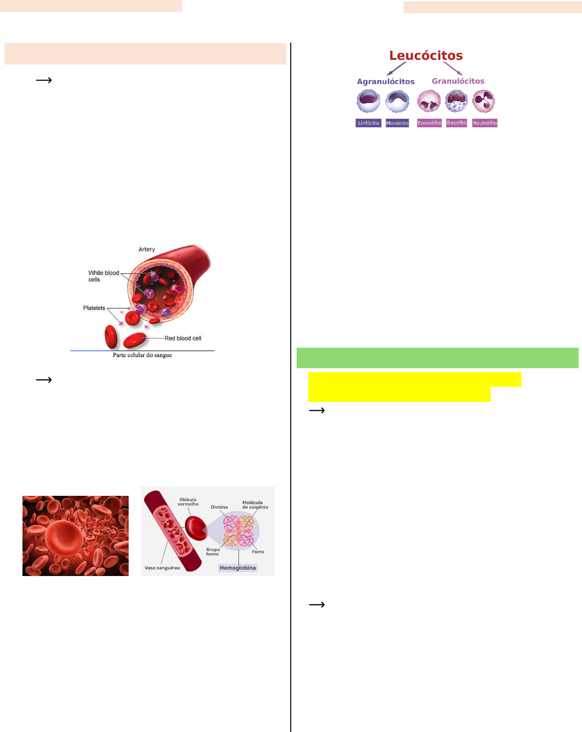 O sangue é composto por duas frações: plasma (55%) e células (45%). Plasma: Parte fluida do sangue, composto por 91,5% de água e 8% de proteínas, sais e outras substâncias orgânicas. Atua como solvente e meio de transporte. Soro: Líquido amarelado restante após a coagulação, sem elementos celulares nem fatores de coagulação, mas contendo sais minerais, vitaminas e hormônios. Elementos celulares: Eritrócitos (glóbulos vermelhos): • Células bicôncavas, sem núcleo, responsáveis pelo transporte de oxigênio e gás carbônico. • Contêm hemoglobina, composta por ferro (heme) e globina, que se liga ao oxigênio. • Duram cerca de 120 dias antes de serem destruídos. • Contagem: 4,1 a 6,1 milhões/mm³ de sangue. Leucócitos (glóbulos brancos): • Defendem o organismo contra infecções e removem resíduos celulares. • Contagem: 4.000 a 10.000/mm³. Tipos: 1. Neutrófilos (50-70%): Fagocitam bactérias e substâncias estranhas. 2. Eosinófilos: Atuam em reações alérgicas e infestações parasitárias. 3. Basófilos: Libera histamina (respostas alérgicas) e heparina (anticoagulante). 4. Monócitos: Se transforma em macrófagos, fagocitando microrganismos e resíduos. 5. Linfócitos (30%): Produz anticorpos e participam da resposta imune. 6. Plaquetas (trombócitos) 7. Pequenos fragmentos celulares responsáveis pela coagulação do sangue. 1. Conhecer a fisiopatologia das anemias carenciais e identificar seus tipos. As anemias carenciais, são um grupo de condições caracterizadas pela deficiência de nutrientes essenciais para uma adequada formação da série vermelha sanguínea. As principais consequências da anemia: • Transporte deficitário de oxigênio devido à diminuição do teor da hemoglobina. • Nos processos crônicos de anemia o organismo se adapta à situação patológica com desgastes fisiológicos. Tipos de anemias: Normocítica: tamanho das hemácias. Consideradas quando possuem um volume celular médio (VCM) dentro da faixa normal, geralmente entre 80 e 100 fL. Normocrômica: coloração das hemácias, que depende da quantidade de hemoglobina presente nelas. Quando as hemácias têm a quantidade normal de hemoglobina. Anemia Carencial Problema 1 – Alterações do Sangue COMPOSIÇÃO DO SANGUE OBJETIVOS Microcítica: hemácias menores do que o normal. O termo refere ao tamanho reduzido das células sanguíneas. VCM na anemia microcítica é inferior a 80 fL, indicando que as células têm um volume menor que o esperado. Hipocrômica: diminuição da quantidade de hemoglobina nas hemácias, o que faz com que elas fiquem mais pálidas (menos coradas) do que o normal. HCM (Hemoglobina Corpuscular Média): é reduzida (geralmente abaixo de 30 pg), indicando que cada hemácia tem menos hemoglobina. ANEMIA FERROPRIVA A anemia ferropriva é a forma mais comum de anemia e ocorre devido à deficiência de ferro, essencial para a produção de hemoglobina. O ferro é um componente essencial da hemoglobina nas hemácias e da mioglobina nos músculos. O ferro da dieta pode ser: • Ferro heme (origem animal) – absorção eficiente (30%), independente de outros alimentos. • Ferro não heme (origem vegetal) – absorção menor (10%), influenciada pelo pH gástrico e inibida por fitatos, fosfatos e cálcio. O corpo adulto contém de 3 a 5 g de ferro, distribuídos principalmente na hemoglobina (2,1 g), mioglobina (300 mg), fígado (1 g) e macrófagos da medula e baço (0,6 g). A ingestão diária de 1 a 2 mg de ferro é suficiente para manter a homeostase, pois o organismo recicla o ferro e elimina apenas pequenas quantidades por descamação de pele, mucosas e sangramento menstrual. No organismo, o ferro pode ser armazenado na ferritina ou circular no plasma ligado à transferrina, que o transporta para os precursores eritroides. Isso mantém a eritropoiese ativa até que ocorra uma deficiência crítica de ferro ligado à transferrina, indicando uma depleção total do mineral. Causas da deficiência de ferro • Sangramentos crônicos: neoplasias, menorragia, hematêmese ou melena. • Ingesta alimentar inadequada • Causas disabsortivas e aumento de demanda ANEMIA MEGALOBLÁSTICA A macrocitose é o aumento do tamanho das hemácias além do normal. A anemia megaloblástica, um tipo de macrocitose, ocorre devido a um bloqueio na síntese de DNA, resultando em divisão celular lenta em relação ao crescimento citoplasmático. Suas causas incluem deficiência de folato ou vitamina B12 e o uso de medicamentos que afetam o metabolismo das purinas, pirimidinas e a absorção desses nutrientes. Fisiopatologia O ácido fólico é encontrado em vegetais verdes, fígado, aveia e frutas, com necessidade diária de 50 a 200 mcg, podendo chegar a 800 mcg em gestantes e lactantes. É absorvido no duodeno e jejuno proximal, circula no sangue como metiltetrahidrofolato e, dentro das células, é convertido em tetrahidrofolato (THF), essencial para o metabolismo celular. A vitamina B12, presente em carnes, ovos e laticínios, tem necessidade diária de até 2,5 mcg em adultos, com estoques hepáticos duradouros. Sua absorção ocorre no íleo distal, após ligação ao Fator Intrínseco (FI). No organismo, atua como coenzima na conversão do metilmalonil-CoA em succinil- CoA e da homocisteína em metionina, funções essenciais para o metabolismo celular. 2. Compreender os métodos e interpretar exames laboratoriais para diagnóstico de anemias carenciais. O diagnóstico de anemias carenciais envolve a compreensão dos métodos laboratoriais e a interpretação dos exames. Os principais exames incluem: • Hemograma completo: contagem de hemácias, hemoglobina, hematócrito, VCM e RDW (amplitude de distribuição eritrocitária). A macrocitose (VCM aumentado) pode indicar anemia megaloblástica, enquanto a microcitose sugere anemia ferropriva. • Dosagem de ferro, ferritina e transferrina: diferencia anemia ferropriva (ferritina baixa, transferrina elevad