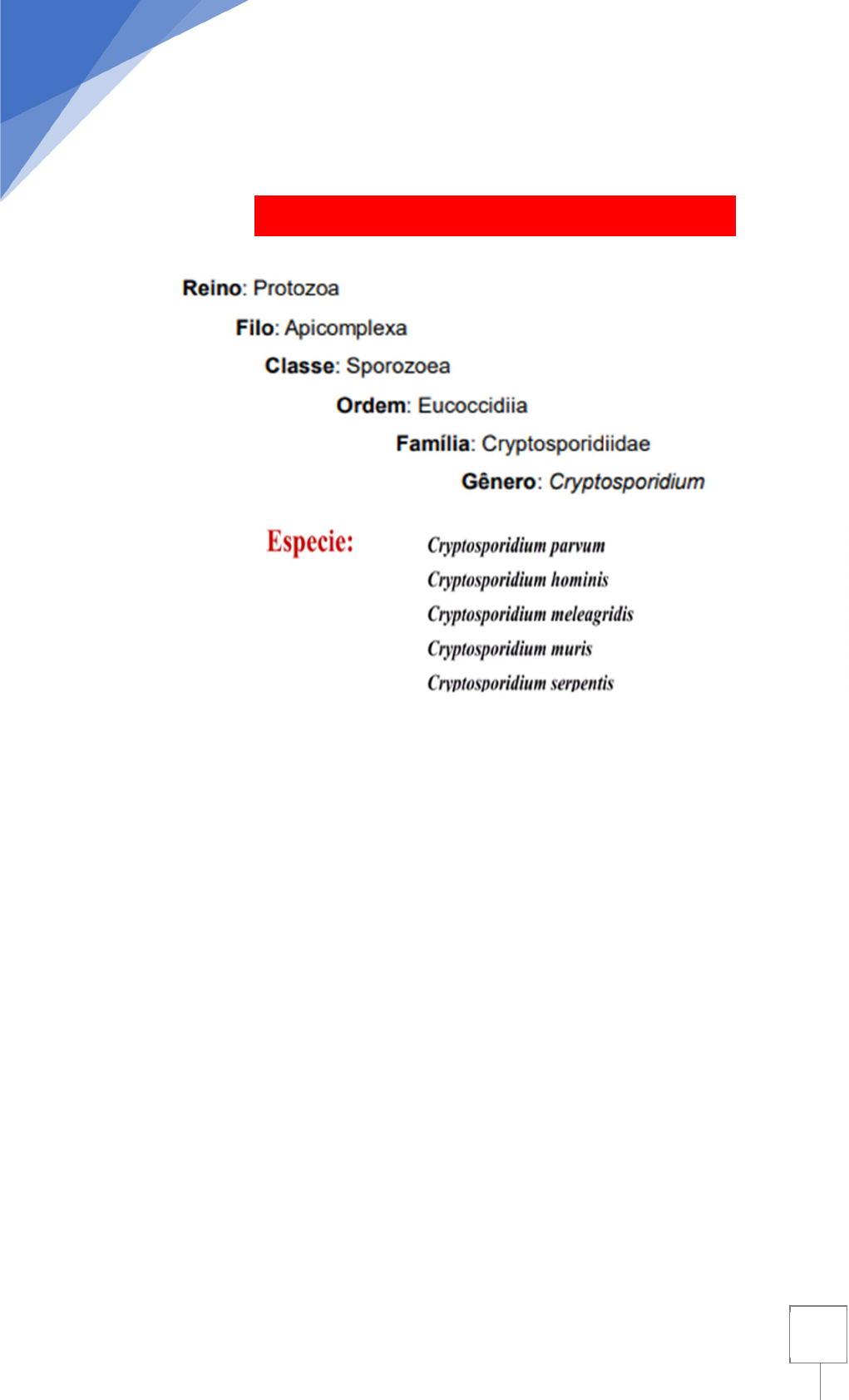 Resumo Parasitologia Angélica Oliveira-Med VI Alfa 1 Cryptosporidium e Criptosporidiose ****Várias espécies são causadoras da mesma doença, criptosporidiose. ****Cryptosporidium parvum, C. hominis ambos têm maior ocorrência e relevância; ****C. meleagridis (aves)- terceira espécie de maior ocorrência;( Outras espécies foram descritas em aves,répteis e peixes). Cryptosporidium - membro atípico dos coccídios (coccídios intestinais compreendem um grupo de protozoários emergentes e oportunistas). Apresentam oocistos sem esporocistos (oocistos são eliminados não esporulados, isto é, não infectantes). Oocistos grossa ou parede fina (autoinfecção); Capacidade de crescimento em meio acelular (crecimento em laboratório). Localização epicelular (parte dentro e parte fora). Também chamado de intracelular extracitoplasmática). Possuem organela alimentar na base do vacúolo parasitóforo, Epimerito. Nos indivíduos imunologicamente normais, causa uma diarreia autolimitada, mas nos imunocomprometidos é responsável por diarreias prolongadas e graves. Clinicamente, a criptosporidíase dos aidéticos caracteriza-se por diarréia aquosa, acompanhada de cólicas, flatulência, dor epigástrica, náuseas e vómitos, anorexia e mal-estar. A dor abdominal e a diarréia Resumo Parasitologia Angélica Oliveira-Med VI Alfa 2 apresentam-se geralmente logo em seguida à ingestão de alimentos. O exame físico pouco acrescenta, além de revelar sinais de desidratação e caquexia. TRANSMISSÃO Oocisto em água com cistos, alimentos contaminados, pessoas a pessoa contaminadas, cistos como aerossóis, auto infecção por cisto de parede fina, animais contamina humanos. 60% dos surtos de doença veiculada pela água protozoários; 150 espécies de mamíferos são hospedeiras de Cryptosporidium; Ingestão ou inalação de oocistos (Dispersão por meio do ar, insetos, vestuário e fezes) Alta densidade populacional (contato direto e indireto); Água de beber ou de recreação contaminada com oocistos; Transmissão pode acontecer durante a atividade sexual. Morfologia/Biologia do parasito ➢ Desenvolvem-se nas microvilosidades de células epiteliais dos tratos gastrointestinal e respiratório; quando os oocistos com 4 esporozoítas e imediatamente infectantes são ingeridos pelo novo hospedeiro. Chegando ao intestino, os esporozoítas, que possuem um complexo apical (roptrias, micronemas, anel polar etc.), são liberados e se fixam às células epiteliais, onde terão lugar a Resumo Parasitologia Angélica Oliveira-Med VI Alfa 3 esquizogonia e a esporogonia). Uma expansão da membrana celular dos microvilos acaba por abraçar e envolver completamente o parasito, de modo que a superfície livre deste fica constituída por um elaborado complexo de cinco membranas produzido por ambos os organismos. ➢ Pode migrar também para o epitélio renal, vesícula biliar, dutos pancreáticos, esôfago e faringe; ➢ Localização intracelular extra citoplasmática (Localização epicelular); ➢ Apresenta formas endógenas (tecidos): esporozoítos, trofozoítos, merozoítos I e II, micro e macrogamontes (micro e macrogametócitos); ➢ O gênero Cryptosporidium constitui-se de parasitas intracelulares obrigatórios. Oocistos ➢ Pequenos, esféricos ou ovoides; ➢Oocistos – Pequenos, leves e imóveis. Resumo Parasitologia Angélica Oliveira-Med VI Alfa 4 ➢ Contém 4 esporozoítos livres no seu interior- eliminados nas fezes; Diferença nos oocistos devido a presença de ph variado: Oocistos das sps intestinais: formato esférico Oocistos das sps gástricas: mais alongados (para sobreviver ao pH). Ciclo biológico O ciclo biológico é monoxênico, ou seja, realizado em um único hospedeiro. A forma infectante do parasita é por meio dos oocistos que são liberados nas fezes. Resumo Parasitologia Angélica Oliveira-Med VI Alfa 5 Os oocistos são ingeridos e tem sua parede rompida no trato gastrointestinal devido a ação de enzimas proteolíticas e sais bileares, deste modo são liberados quatro esporozoítos que invadem as células epiteliais, mais precisamente na região das microvilosidades e passam por uma série de processos de replicação. A multiplicação ocorre tanto de forma assexual como sexual. Ao final da reprodução formam dois tipos de oocistos: os de parede grossa e os de parede fina. Os de parede grossa são eliminados nas fezes, enquanto os de parede fina permanecem no organismo realizando a manutenção da autoinfecção interna. A possibilidade da infecção fecal-oral direta é possível devido que os oocistos já são excretados na forma infectante, não necessitando assim nenhum processo de maduração no meio externo. Patologia e Imunidade Alguns autores sugerem que o aumento local de determinadas substâncias ativas (interferon-y, prostaglandina E, fator de necrose tumoral) participariam do processo. Verificou-se que a infecção causa má absorção de Na+ e H20 glicose-dependente, nos enterócitos danificados pelo parasitismo (diarréia de má-absorção); mas também excreção exagerada de Cl" (pelo epitélio das criptas hipertrofiadas), agravando a diarréia e aumentando os distúrbios hidroeletrolíticos. Gerando sintomas variados que vai além dos intestinais. A resposta dos pacientes imunologicamente normais à infecção por Cryptosporidium é tanto celular como humoral, detectando-se IgM específicas em concentrações elevadas no soro (que se reduzem aos 4 meses) e IgG (com pico aos 6 meses e volta ao normal dentro de um ano). Epidemiologia ➢ Viáveis e infectantes no ambiente por várias semanas; ➢ Os oocistos são resistentes a muitos desinfetantes iodados, clorados, cresílicos e mesmo ao formol a 5%, mas alguns ensaios indicam que a água sanitária do comércio, formol a 10% e o aquecimento a 65°C, durante 30 minutos, são capazes de destruí- los. ➢ Prevalência variável: o Idade; (Muitas crianças afetadas) o Hábitos da população;(consumo de á