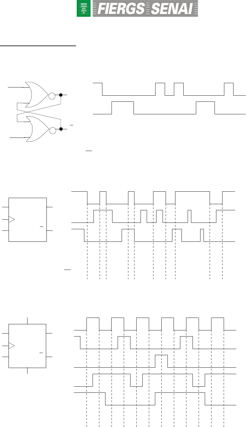 Escola de Educação Profissional SENAI – Plí nio Gilberto Kroeff – CETEMP EXERCÍCIOS: FLIP-FLOPS 1) Para o FF RS abaixo, identifique as entradas R e S e desenhe as formas de onda nas saídas em função dos sinais aplicados. Q Q B A A B Q QA = ____ B = ____ 2) Para o FF da figura abaixo, desenhe as formas de onda nas saídas em função dos sinais aplicados. CK S R Q Q S R Q Q 3) Para o FF da figura abaixo, desenhe a forma de onda na saída em função dos sinais aplicados. CK PR CLR J K Q Q PR CLR J K Q 4) Para o FF da figura abaixo, desenhe a forma de onda na saída em função dos sinais aplicados. CK PR CLR J K Q J K PR CLR Q Q 5) Para o FF da figura abaixo, desenhe a forma de onda na saída em função dos sinais aplicados. CK PR CLR J K Q Q PR CLR J K Q 6) Para o FF da figura abaixo, desenhe a forma de onda na saída em função dos sinais aplicados. CK PR CLR J K Q J K PR CLR Q Q 7) Para o FF da figura abaixo, desenhe a forma de onda na saída em função dos sinais aplicados. CK PR CLR J K Q Q PR CLR J K Q 8) Para o FF da figura abaixo, desenhe a forma de onda na saída em função dos sinais aplicados. CK PR CLR J K Q J K PR CLR Q Q 9) Para o FF da figura abaixo, desenhe a forma de onda na saída em função dos sinais aplicados. CK PR CLR J K Q Q PR CLR J K Q 10) Para o FF da figura abaixo, desenhe a forma de onda na saída em função dos sinais aplicados. CK PR CLR J K Q J K PR CLR Q Q 11) Para o FF da figura abaixo, desenhe a forma de onda na saída em função dos sinais aplicados. CK PR CLR J K Q J K Q Q PR CLR 12) Para o FF da figura abaixo, desenhe a forma de onda na saída em função dos sinais aplicados. CK PR CLR J K Q J K PR CLR Q Q 13) Para o FF da figura abaixo, desenhe a forma de onda na saída em função dos sinais aplicados. CK CLR D Q D Q Q CLR 14) Para o circuito da figura abaixo, desenhe as formas de onda nas saídas Q0 e Q1 em função dos sinais aplicados. D1 Q1 Q1 CLR D0 Q0 Q0 CLR Q0 Q1 CLR CK CK CLR Q0 Q1 15) Para o circuito da figura abaixo, desenhe as formas de onda nas saídas Q1 e Q0 em função dos sinais aplicados. D1 Q1 Q1 PR CLR D0 Q0 Q0 PR CLR D CLR CK PR CK PR CLR D Q1 Q0 Q1 Q0