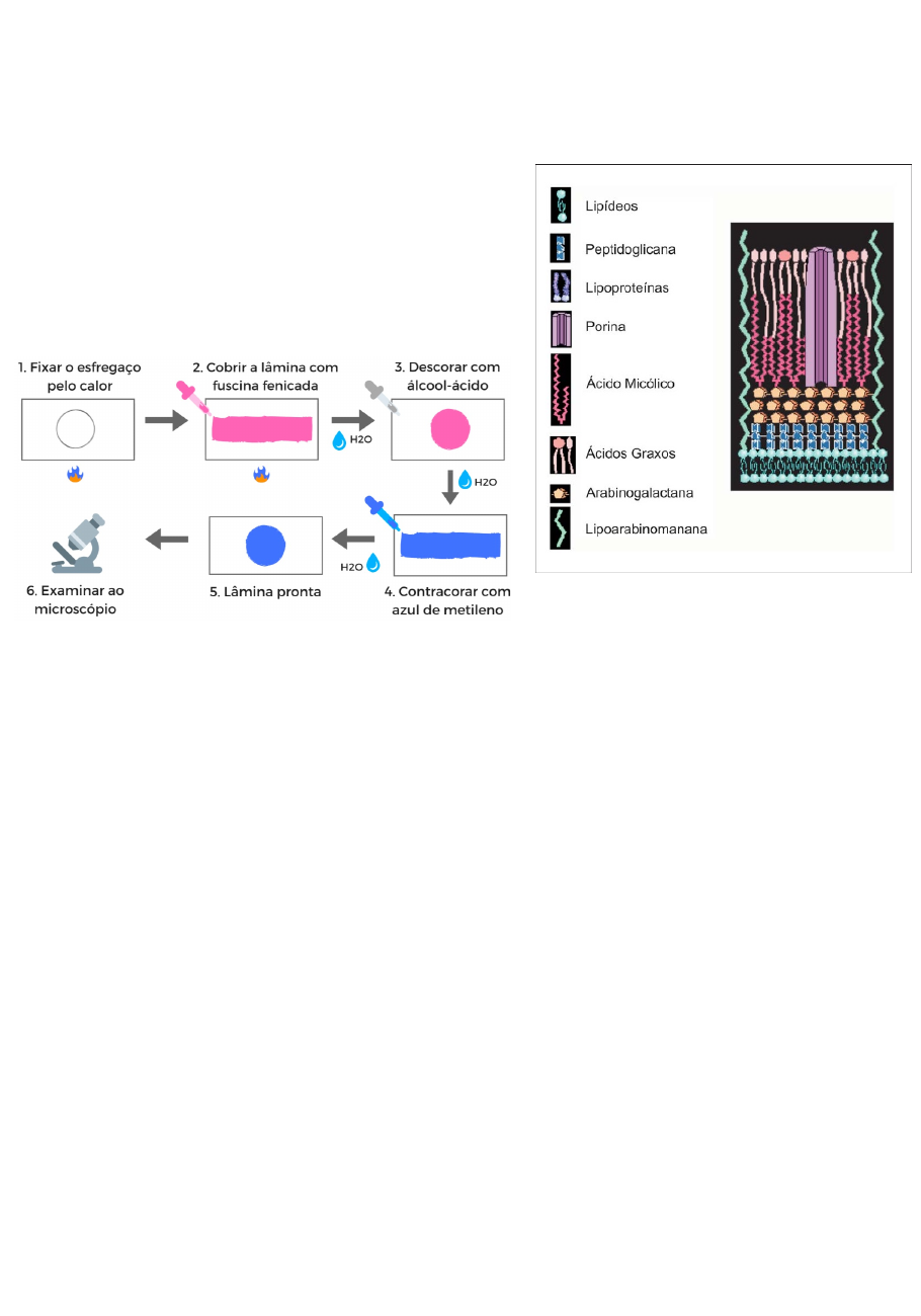MYCOBACTERIUM TUBERCULOSIS ● notificação compulsória ● bacilos retos e finos ● Parede celular “atipica” ● rica em gordura (ácidos micólicos) ● Não se cora por gram ● faz coloração de Ziehl Neelsen ● Álcool ácido resistente - não descoram (BAAR) ● Outras espécies podem ser ácido resistentes, ou seja, também se coram ● parede rica em lipídeos = superfície bacteriana hidrofóbica ○ Resistente a desinfetantes, antimicrobianos e outras colorações ○ Dificuldade de entrada de nutrientes na célula ◆ Meios de cultura mais resistentes e alto tempo de incubação (até 8 semanas) ● BK: bacilos de Koch // BAAR: bacilos ácido álcool resistentes (mesma coisa) ● há outras espécies de micobacterias, por isso, deve ter diagnóstico diferencial ● Nem toda doença causada por mico bactéria é causada pela espécie tuberculosis ○ 30-50% das infecções humanas são causadas por outras M. tuberculosis ● Crescimento muito lento ● Consegue crescer dentro de células - intracelular ● principal agente da tuberculose humana ● Infecções que duram a vida toda ● Transmissão pelas vias aéreas ● Humanos: único reservatório - transmissão apenas pessoa-pessoa ● Paciente bacilífico: que está secretando bactérias, transmitindo a quem entrar em contato com ele. Esse paciente está com tuberculose pulmonar ativa. ● macrófagos fagocitam as gotículas infectadas nos alvéolos pulmonares ○ Se forma um fagossomo ao redor da bactéria ◆ Será fundido a um lissosomo para hidrolisar e destruir a bactéria ◆ O bacilo da tuberculose não permite que haja essa fusão, de forma que a bactéria consegue crescer dentro dessa célula ◆ o macrófago ao se lisar libera a bactéria que continua seu ciclo ● essa Kaiser de macrófagos atrai mais macrófagos e linfócitos, formando granulomas ● altas cargas formam granulomas encapsulados com fibrina, as bactérias resistem a morte. Estado dormente ● O granuloma pode se romper em casos de imunossupressão, indo a área pulmonar e causando uma tuberculose pulmonar ● essas bactérias podem alcançar o sistema linfático/ circulação ○ Migra a outros órgãos e forma uma tuberculose extra pulmonar ○ Se a imunossupressão for alta, pode chegar a tuberculose disseminada ● FATORES DE RISCO: imigrantes recentes, pessoas que vivem em aglomerados (asilos, presídios); pacientes transplantados, oncológicos e com HIV; desabrigados, usuários de drogas; desnutridos ● MANIFESTAÇÕES CLÍNICAS ○ PULMONAR, EXTRAPULMONAR ou AMBAS ◆ extrapulmonar: a partir de um foco inicial, pode se espalhar a outros órgãos ◇ Maior em imunocomprometidos ◇ Pode ter extrapulmonar e não ter pulmonar, nesse caso, esse paciente não é contagioso ◆ disseminada/ mista/ miliar: resposta imunológica muito baixa, ele se dissemina a diversos órgãos ○ PRIMÁRIA OU SECUNDÁRIA ◆ Primária: quando a pessoa tem a infecção e já tem a manifestação clínica logo após (tempo curto) ◇ Crianças nos primeiros dias de vida, até 10% dos infectados ◇ Se já tiverem alguma imunossupressão, há uma tuberculose disseminada ◆ Secundária: manifestação clínica como reativação da infecção que obteve anos antes ◇ Sintomas inespecificos: febre, cansaço, dor no corpo, perda de peso, tosse seca/ improdutiva e sudorese noturna ● DIAGNÓSTICO:anamnese, exames de imagem, microbiológicos e exames imunológicos ○ História clínica: se teve contato, fatores de risco, imunocompetência, HIV… ○ bacteriológico: baciloscopia, cultura e TRM (teste rápido de Biomol) ◆ BACILOSCOPIA: escarro ou outras amostras biológicas, coletado em frasco de tampa rosca. Detecta mais de 90% dos casos de tuberculose pulmonar ao ser feito duas baciloscopias ◇ Uma coleta deve ser feita de manhã, aumentando a probabilidade de diagnóstico pelo acúmulo na área brônquica ◇ Esfrega o escarro na lâmina, fixa no fogo e fax a coloração de Ziehl neesen ◇ Para escarro, deve laudar a quantidade de bacilos na lâmina ■ +10/ campo em 20 campos = positivo +++ ■ 1-10/campo em 50 campos = positivo ++ ■ 10-99/ campo em todos = positivo + ■