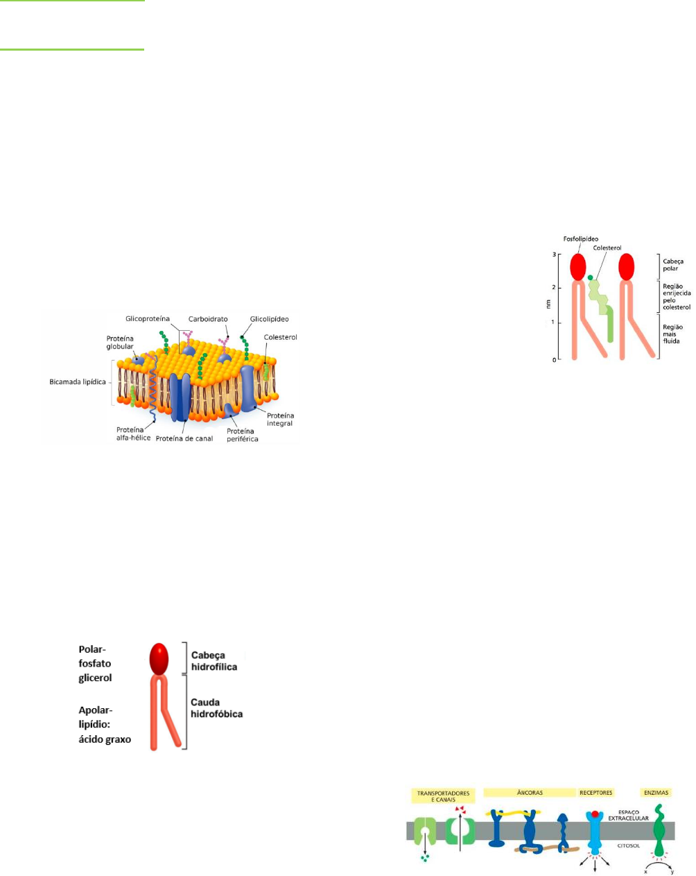 - Hidrofóbicas ficam no interior da bicamada, hidrofílicas